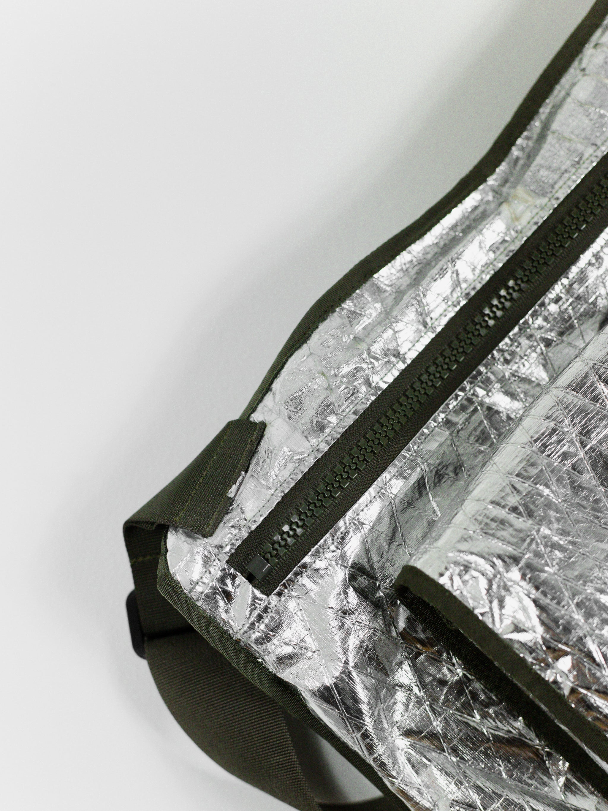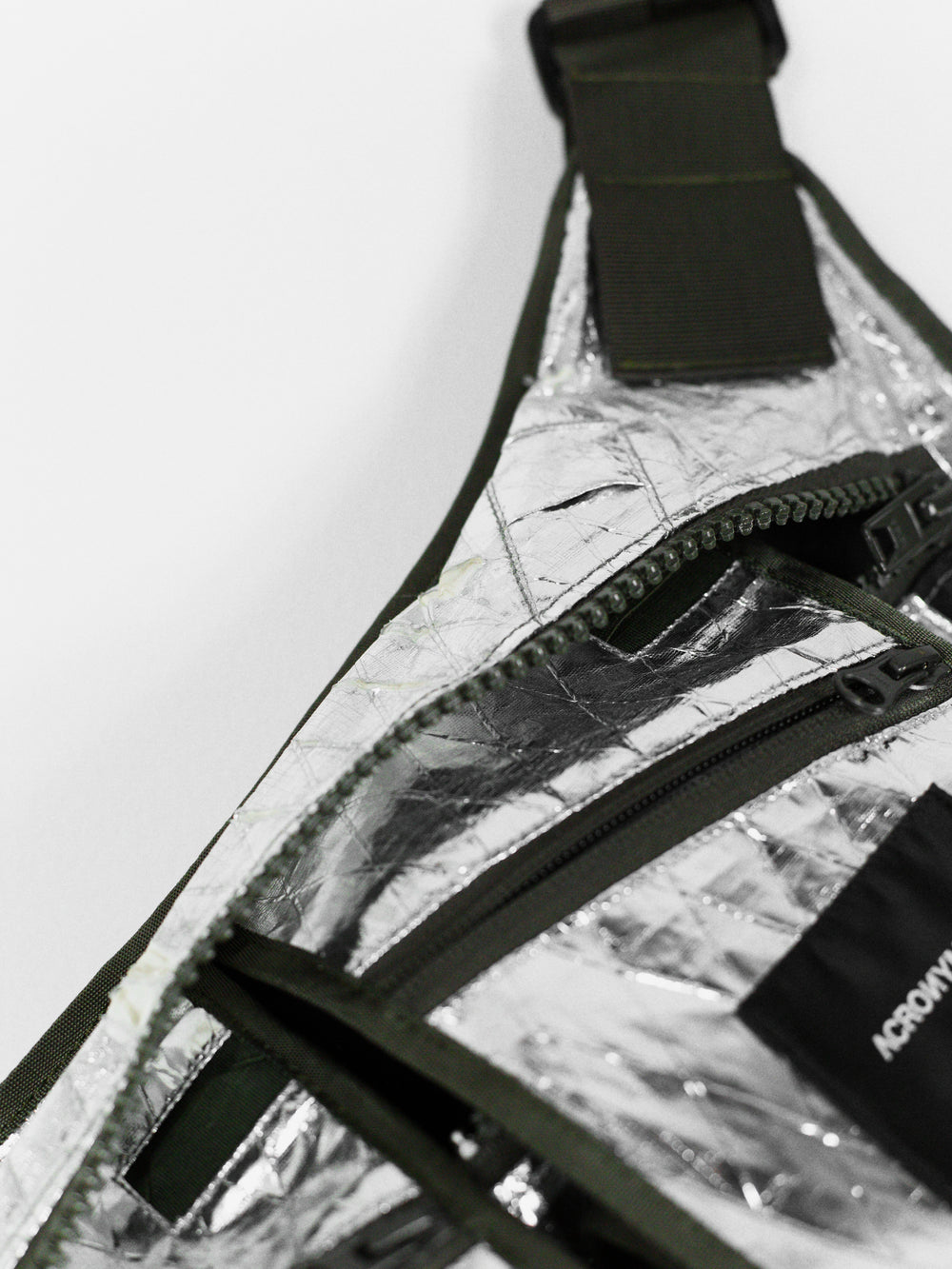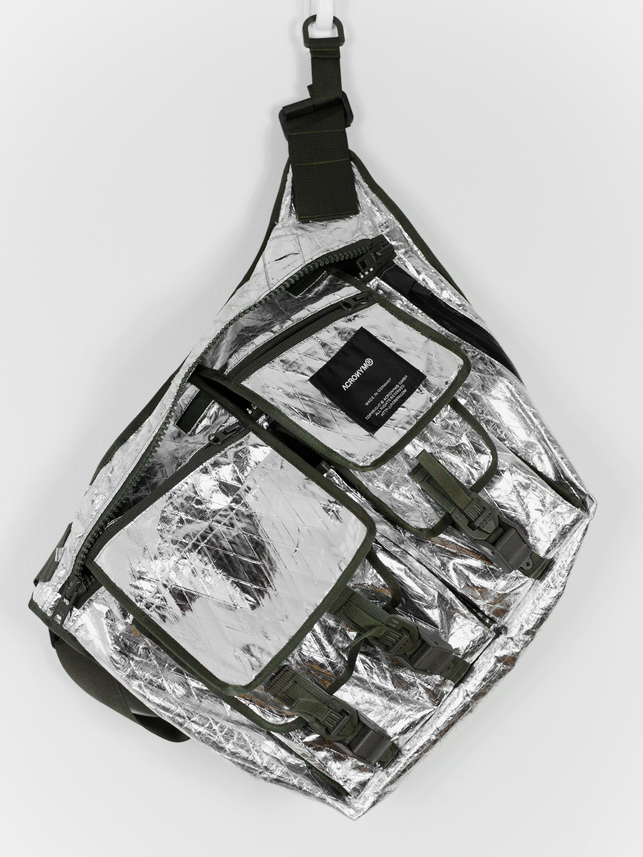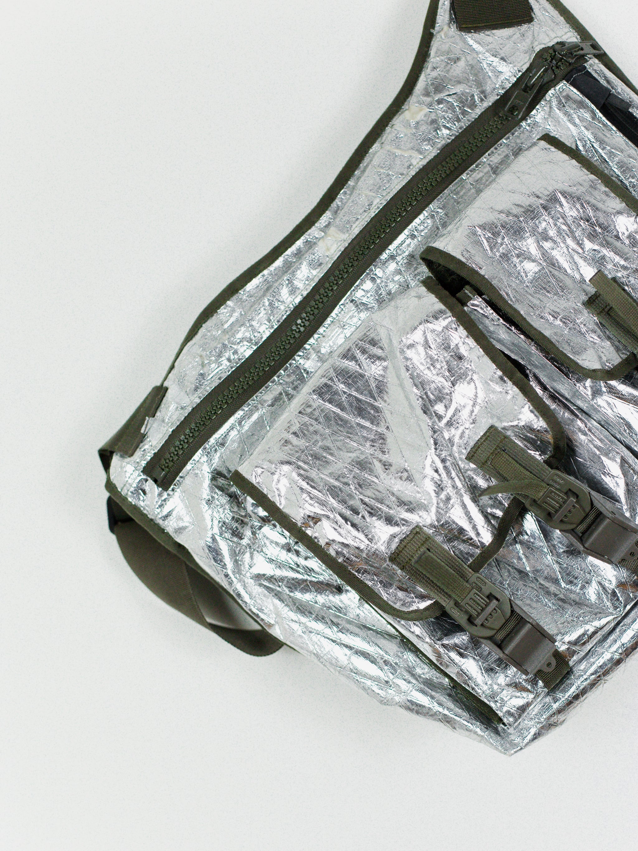 -The original Acronym messenger bag that has seen countless material iterations since it’s debut as part of Kit-1. This one is from the debut release of the foil series, a capsule that dropped in November of 2015. It's fabricated in a silver foil X-PAC designed to flake with wear.
