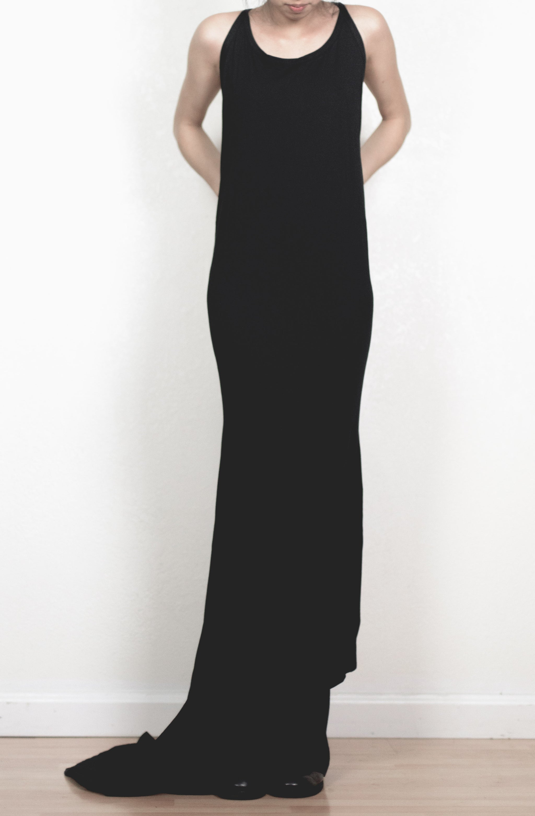 A simple and sleek dress composed of a super soft cotton with Ann Demeulemeester's characteristic T shaped back, adjustable with a long zipper.