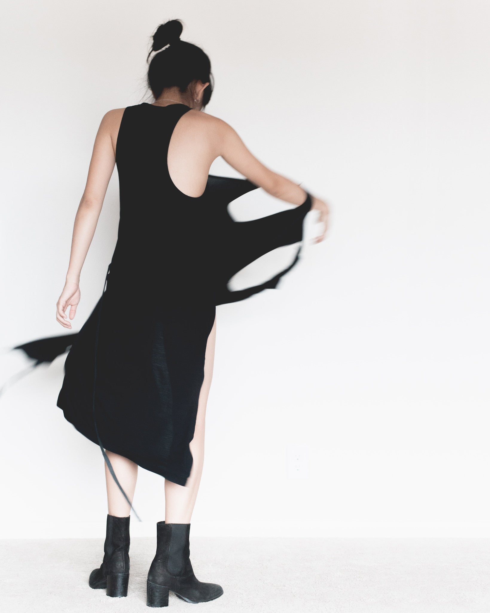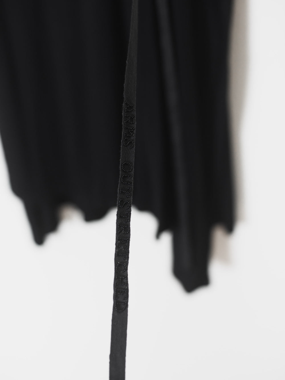 Iconic wrap dress with beautiful layers and a simple construction held together with ties featuring hand beaded quotes from Patti Smith.