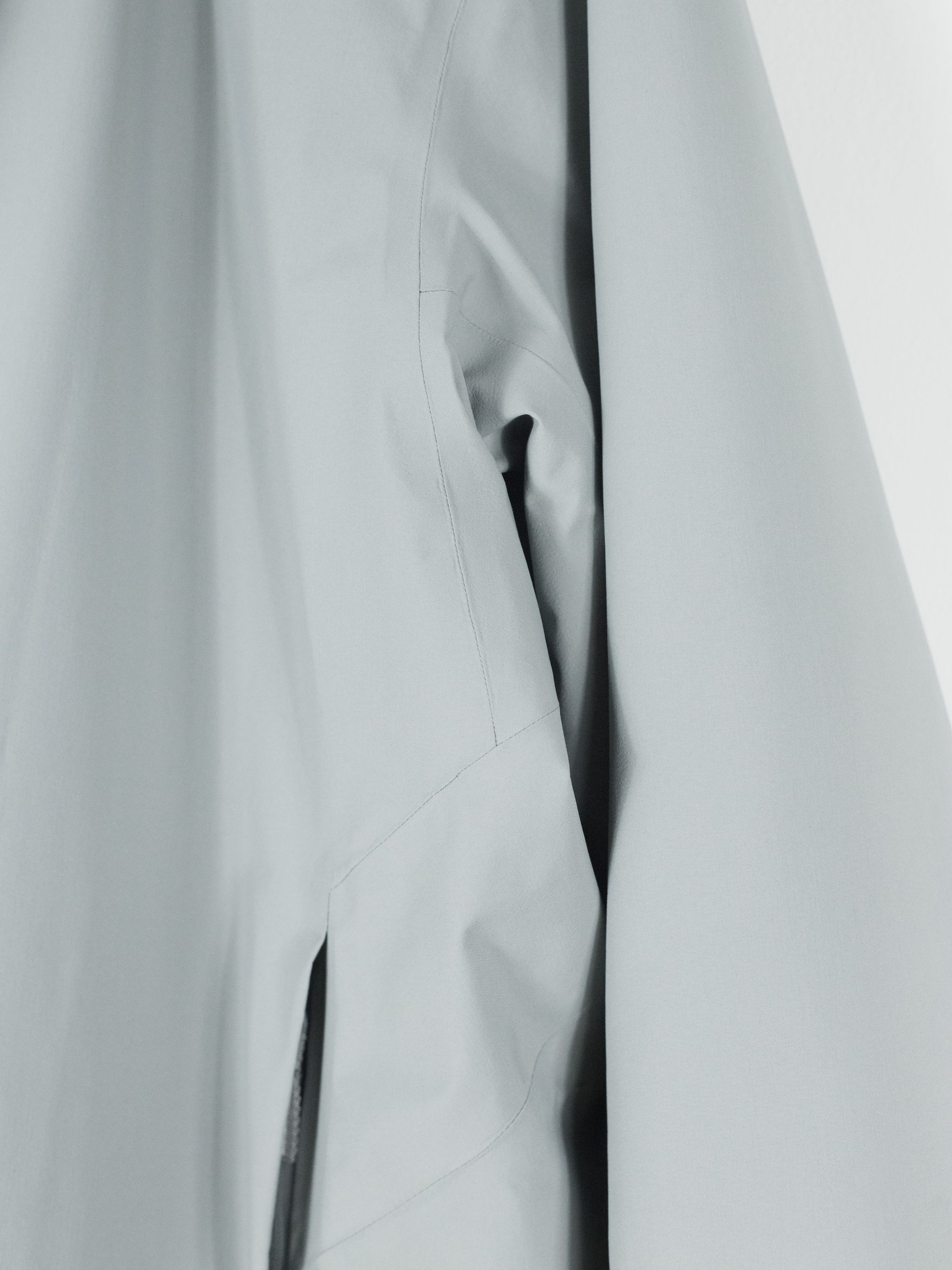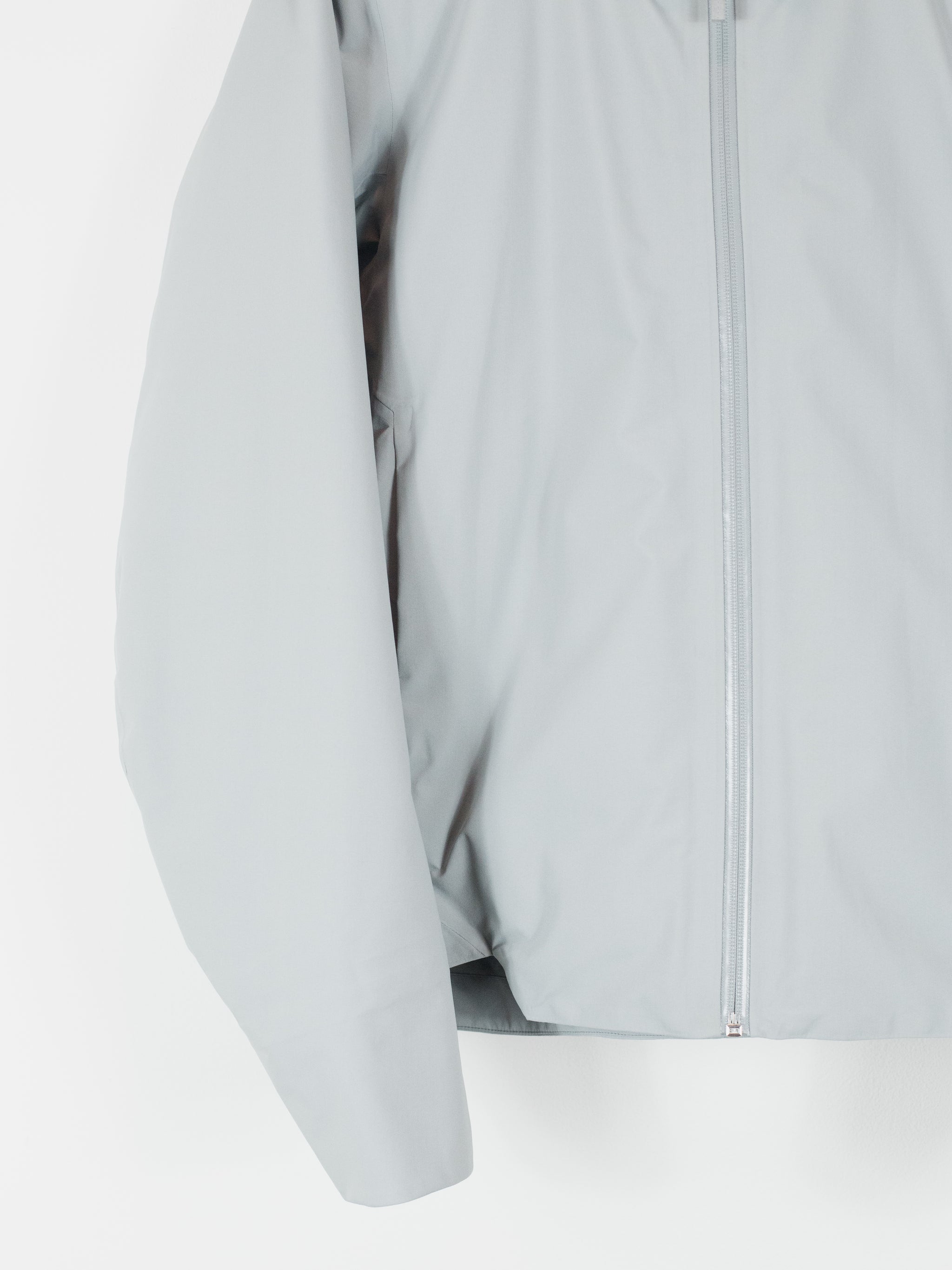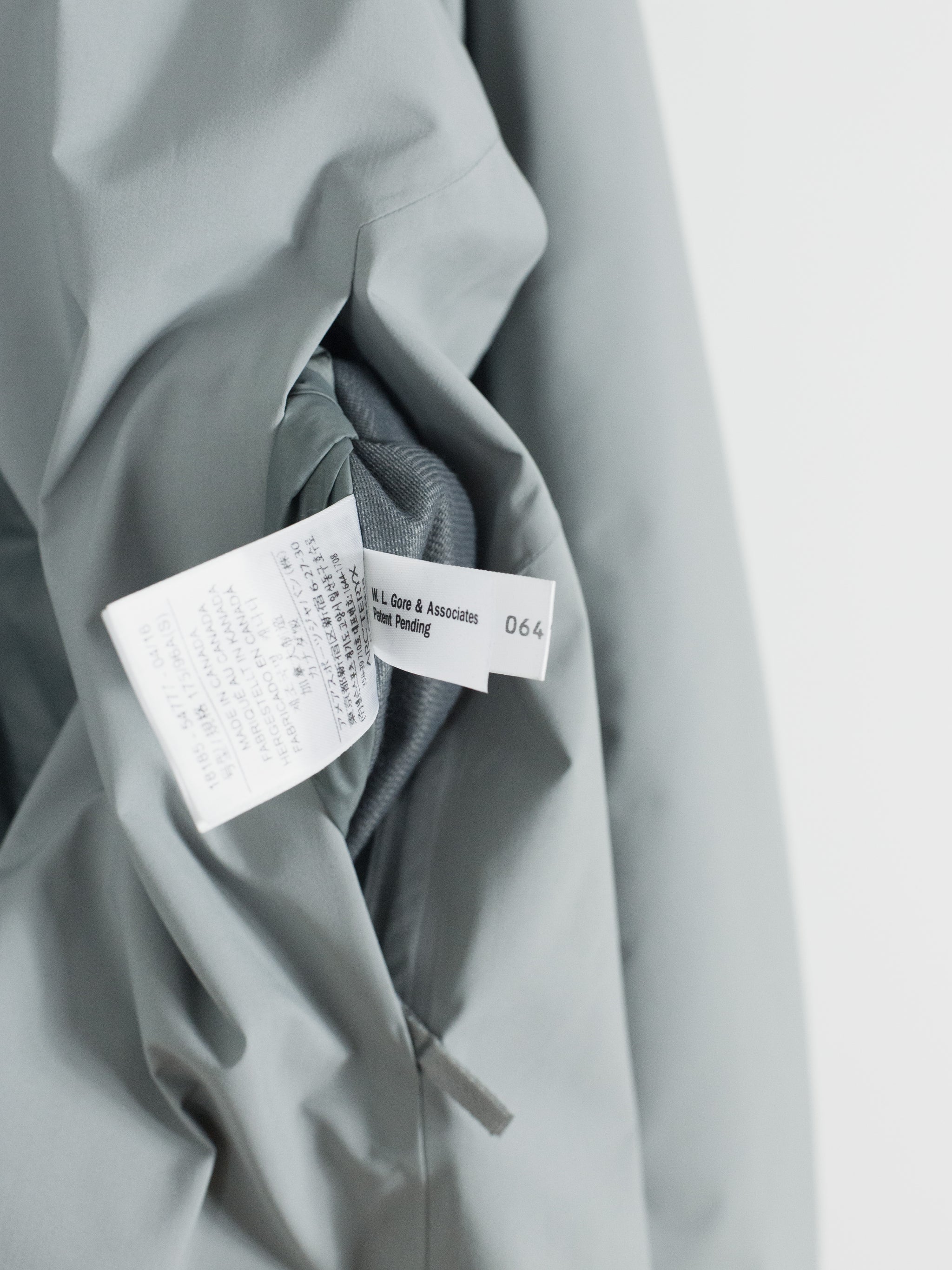 -Laminated zippers at the center front and collar lay flush against the face fabric, enhancing the cleanliness and adding the subtlest textural variation.