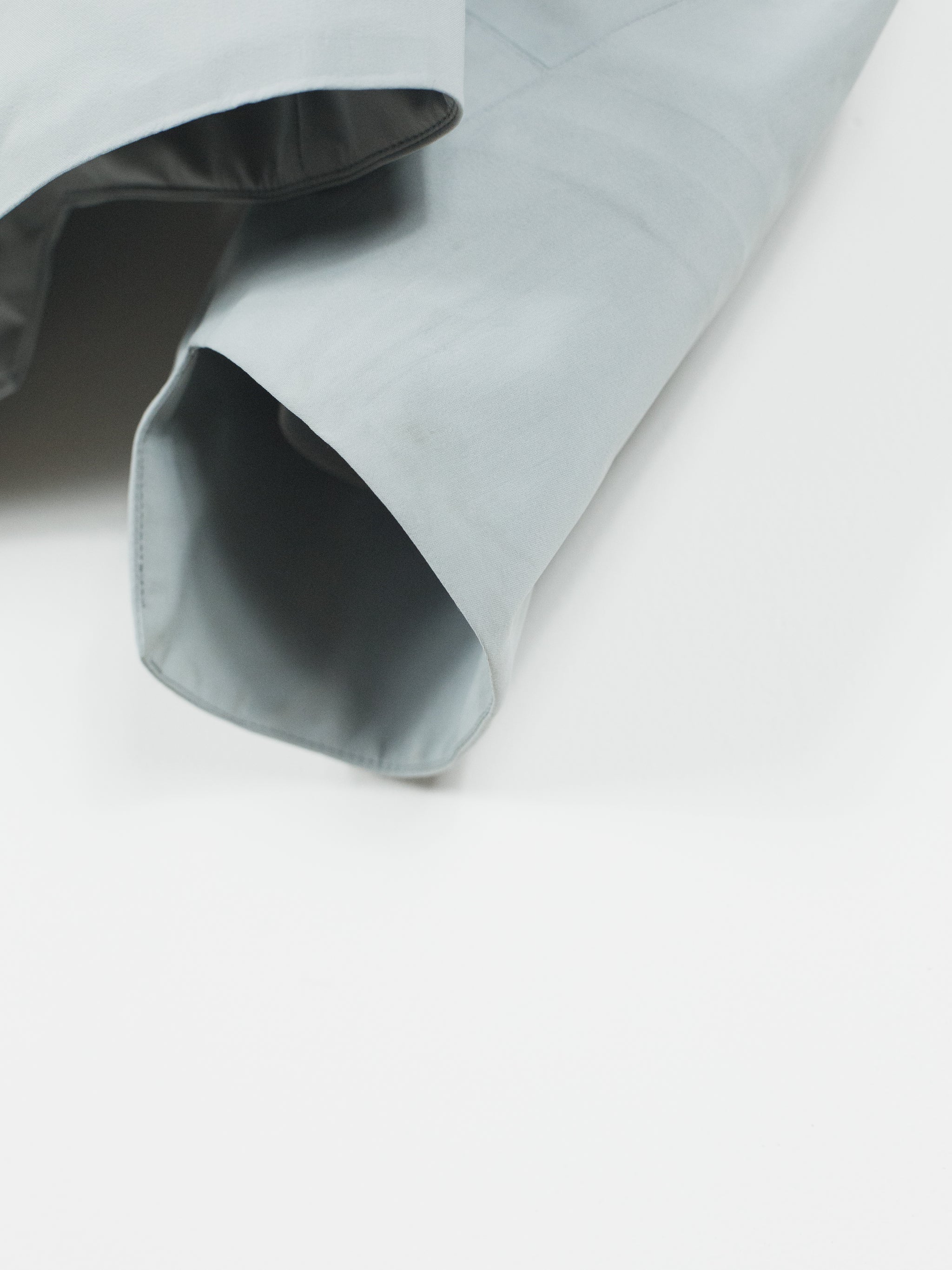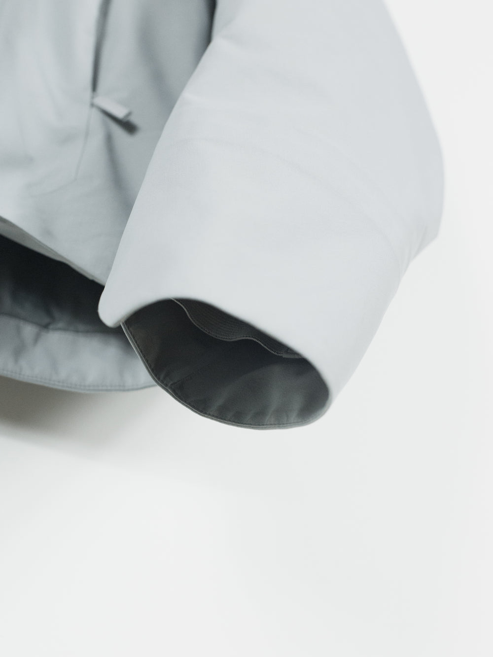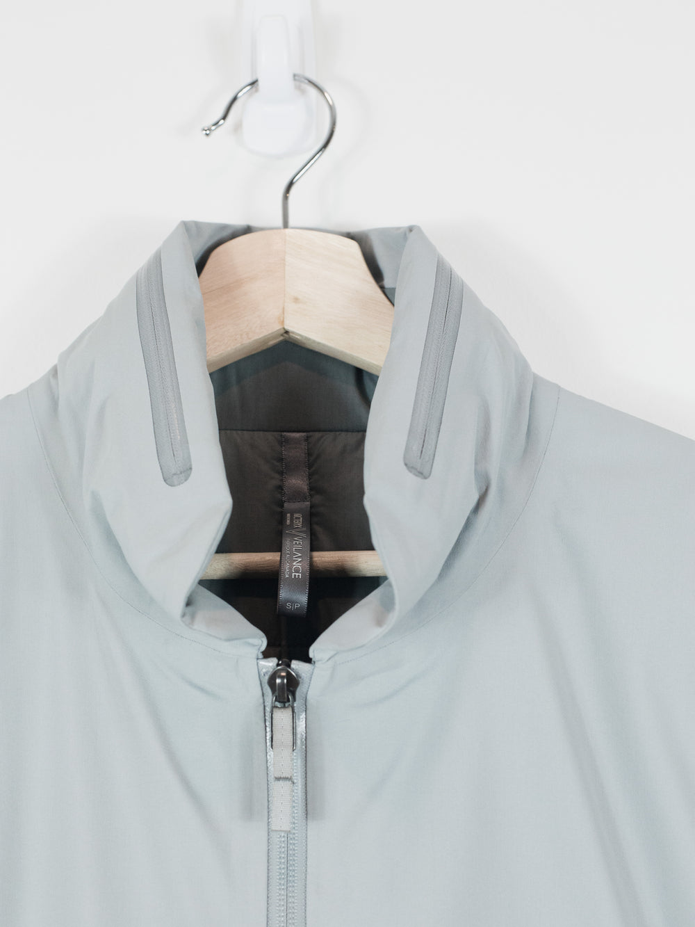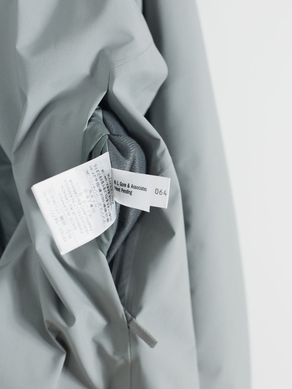 -Laminated zippers at the center front and collar lay flush against the face fabric, enhancing the cleanliness and adding the subtlest textural variation.