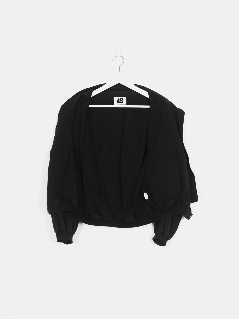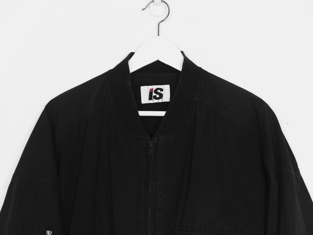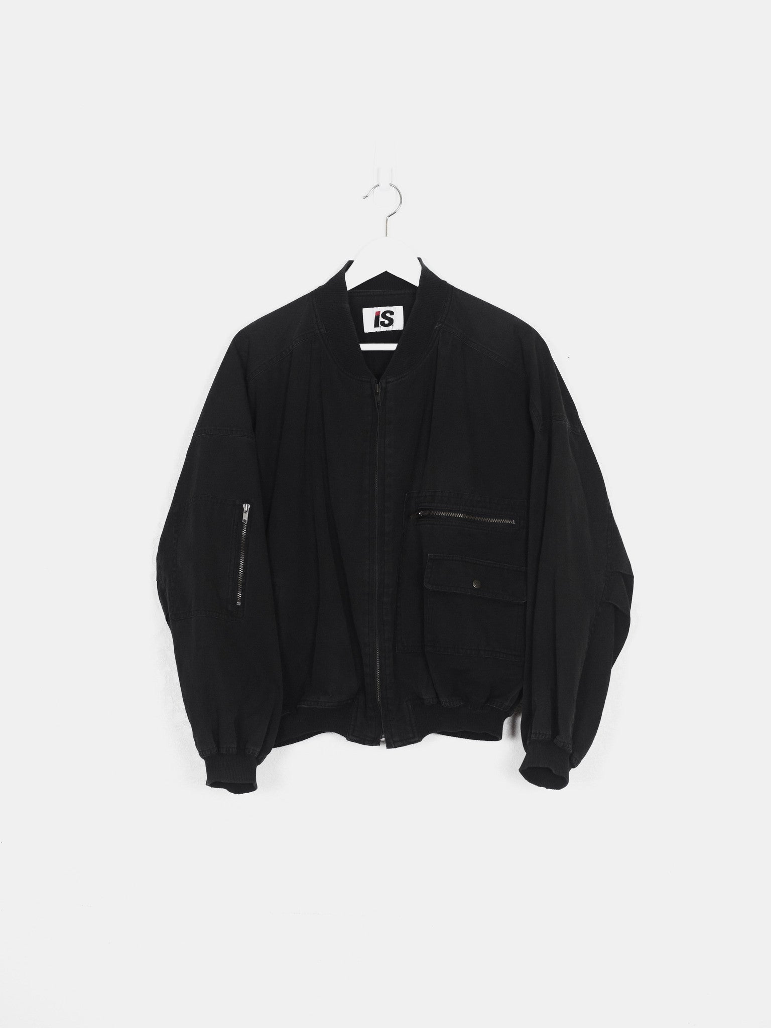The legendary 1980's Issey Sport bomber designed by Tsumori Chisato in black cotton. Amazing silhouette with all the MA-1 details from the wind flap to the sleeve pocket, plus front pockets.