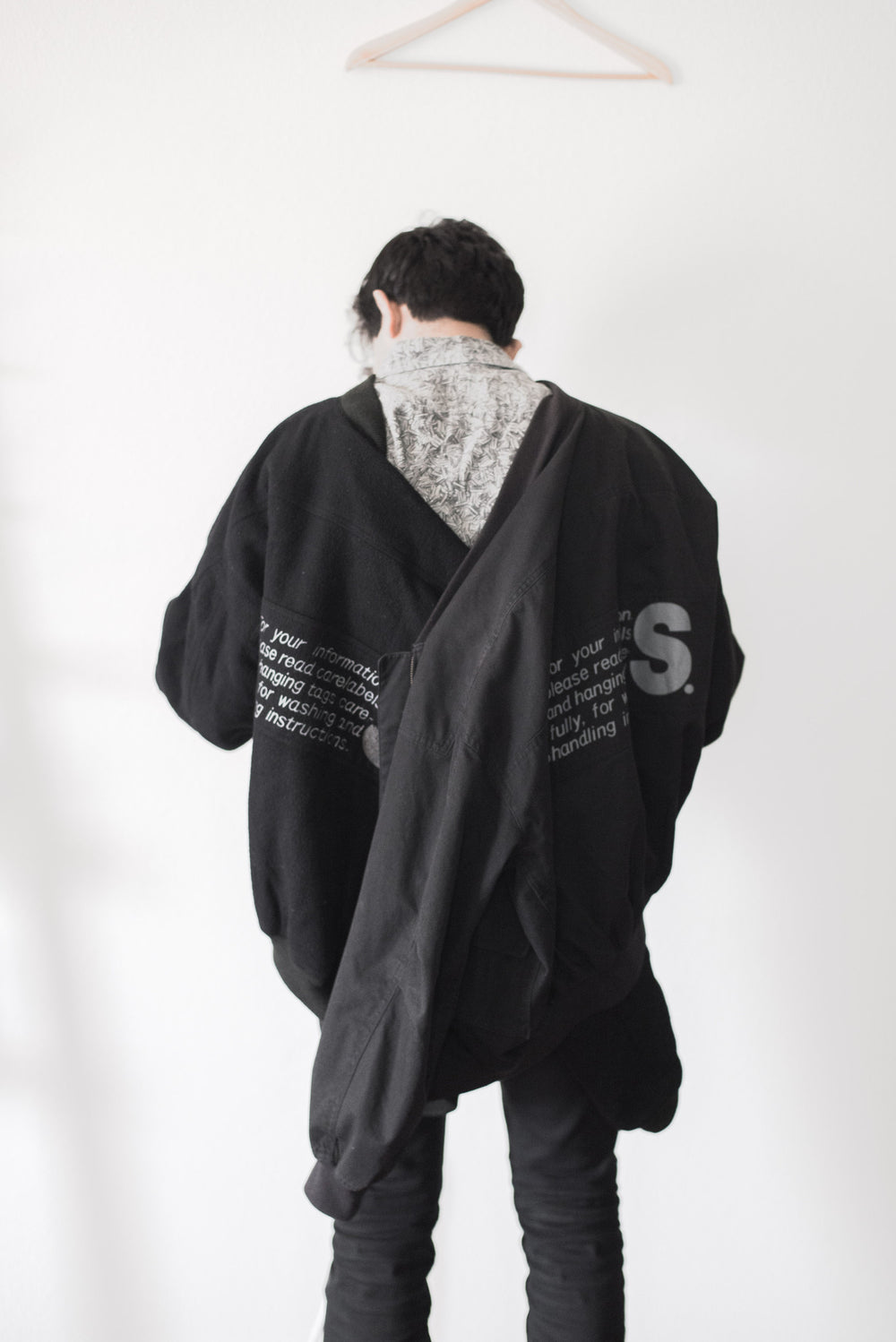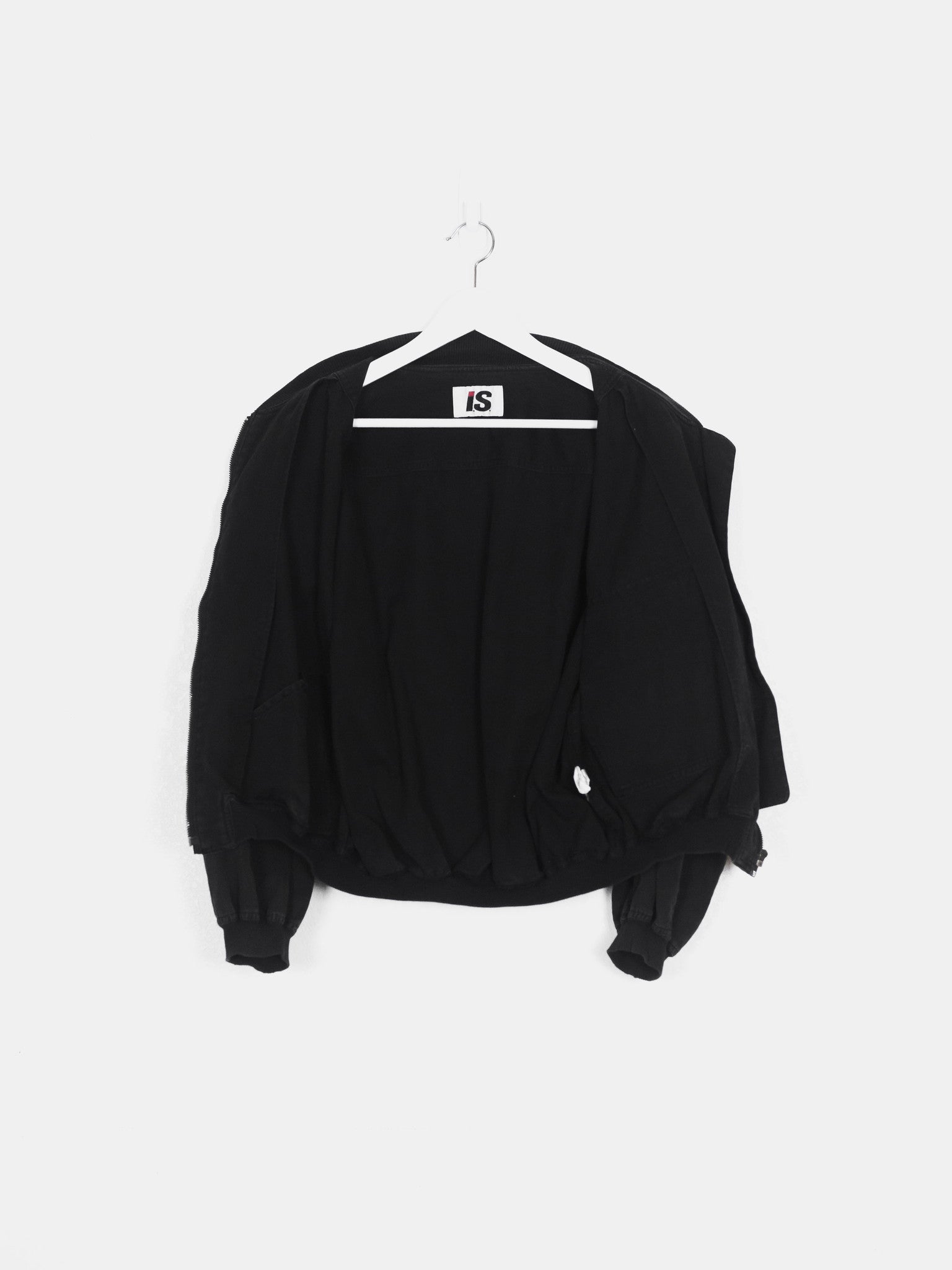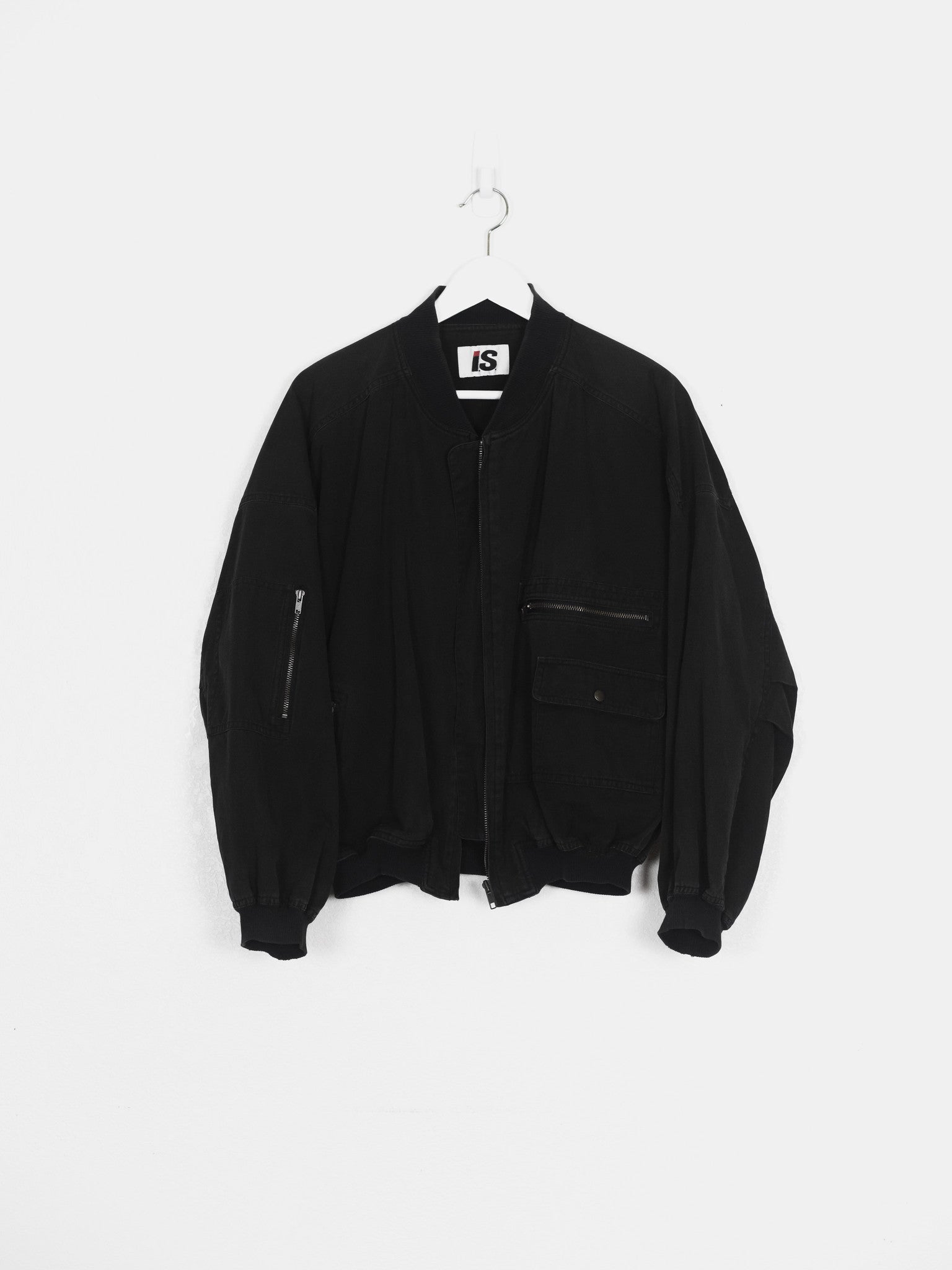 The legendary 1980's Issey Sport bomber designed by Tsumori Chisato in black cotton. Amazing silhouette with all the MA-1 details from the wind flap to the sleeve pocket, plus front pockets.
