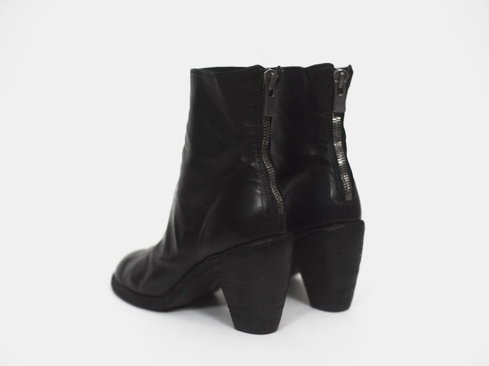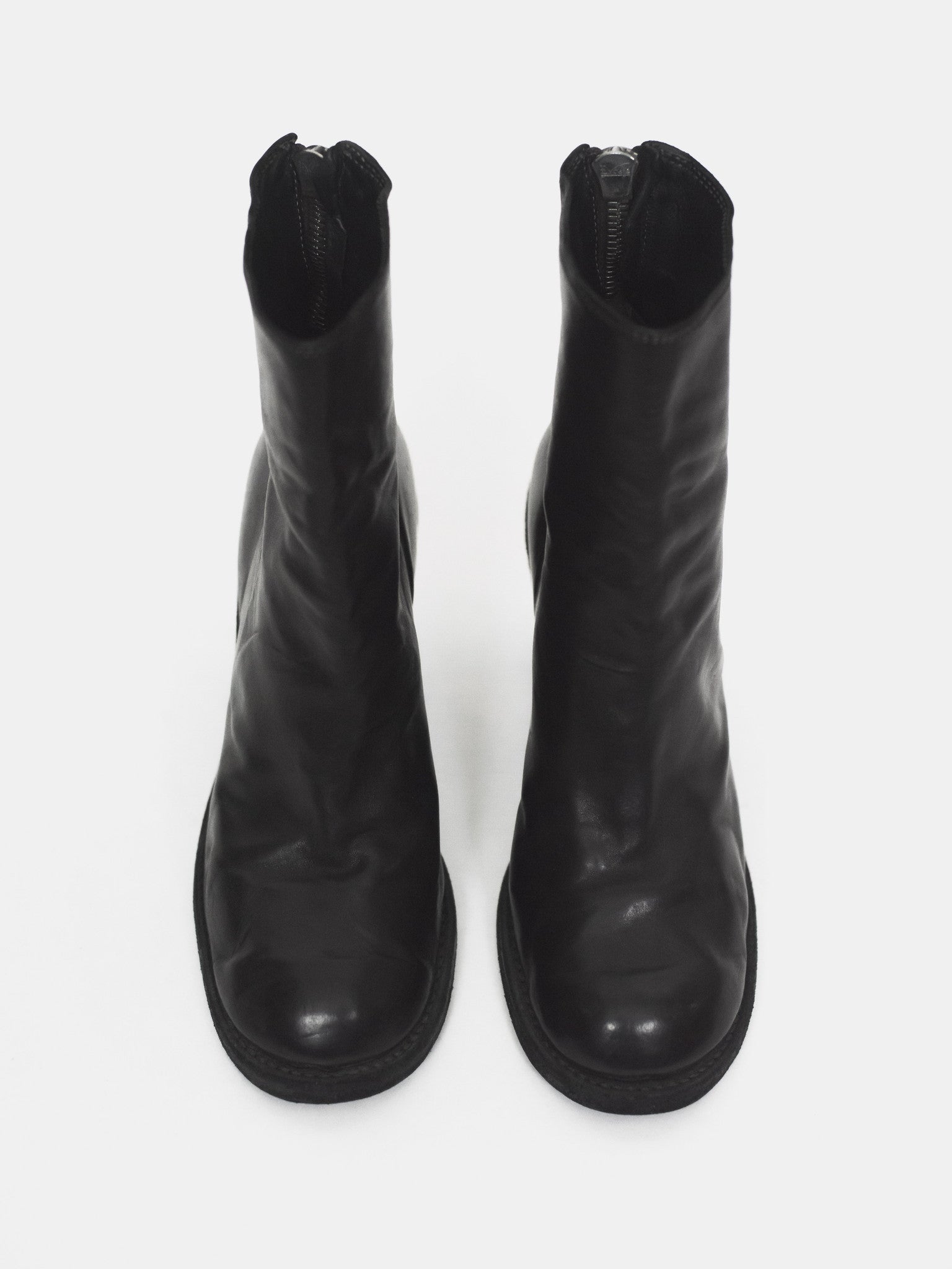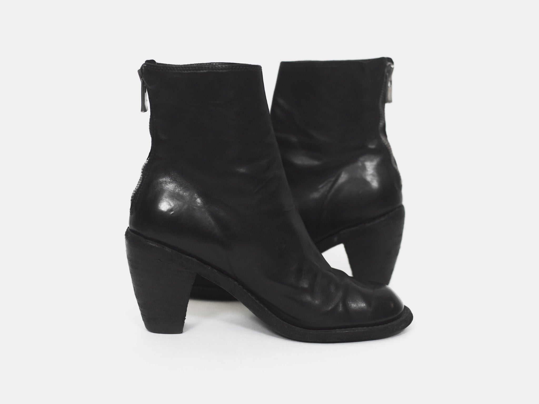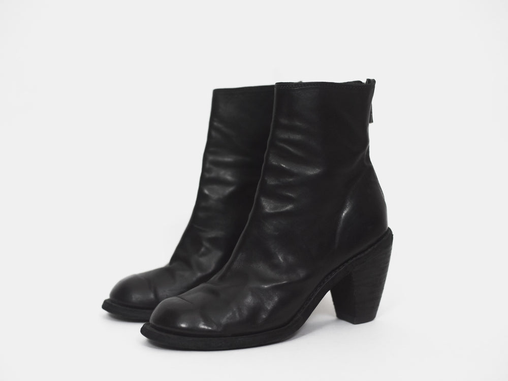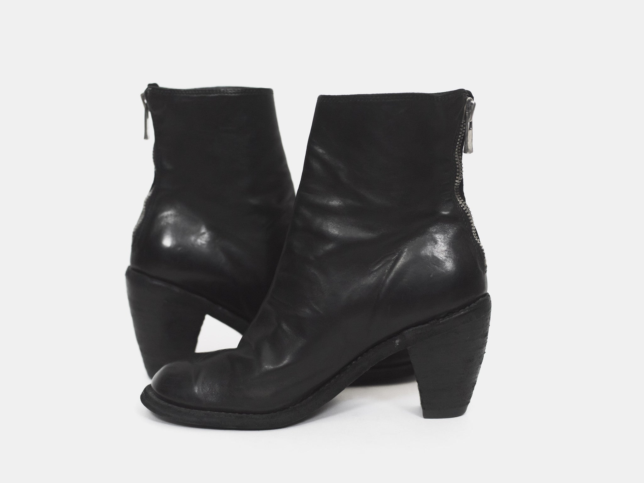 Beautiful boots featuring Guidi's characteristic supple wavy horse leather uppers, super smooth rear ankle Excella zips, and a thick stacked leather heel. Amazing silhouette.