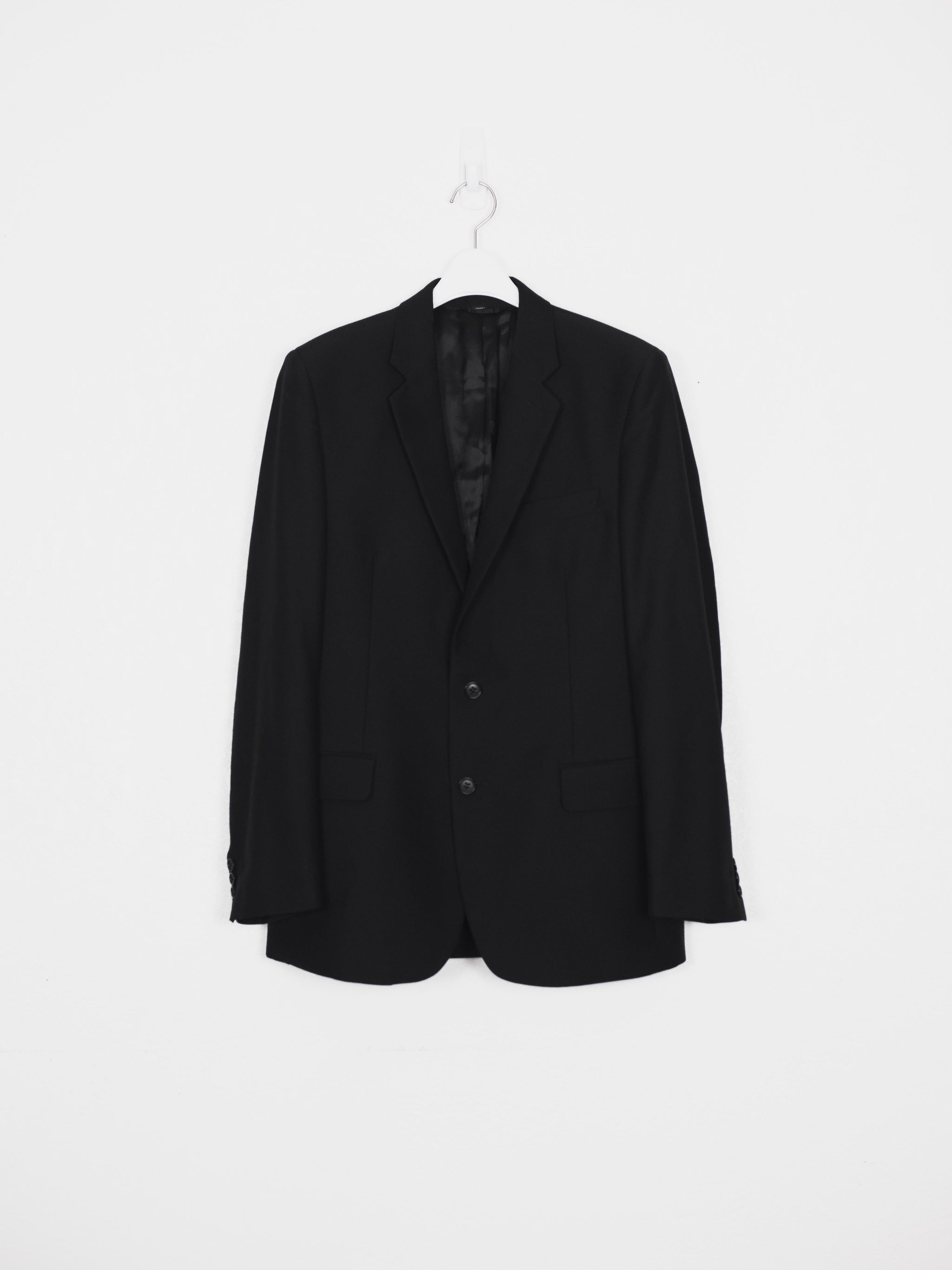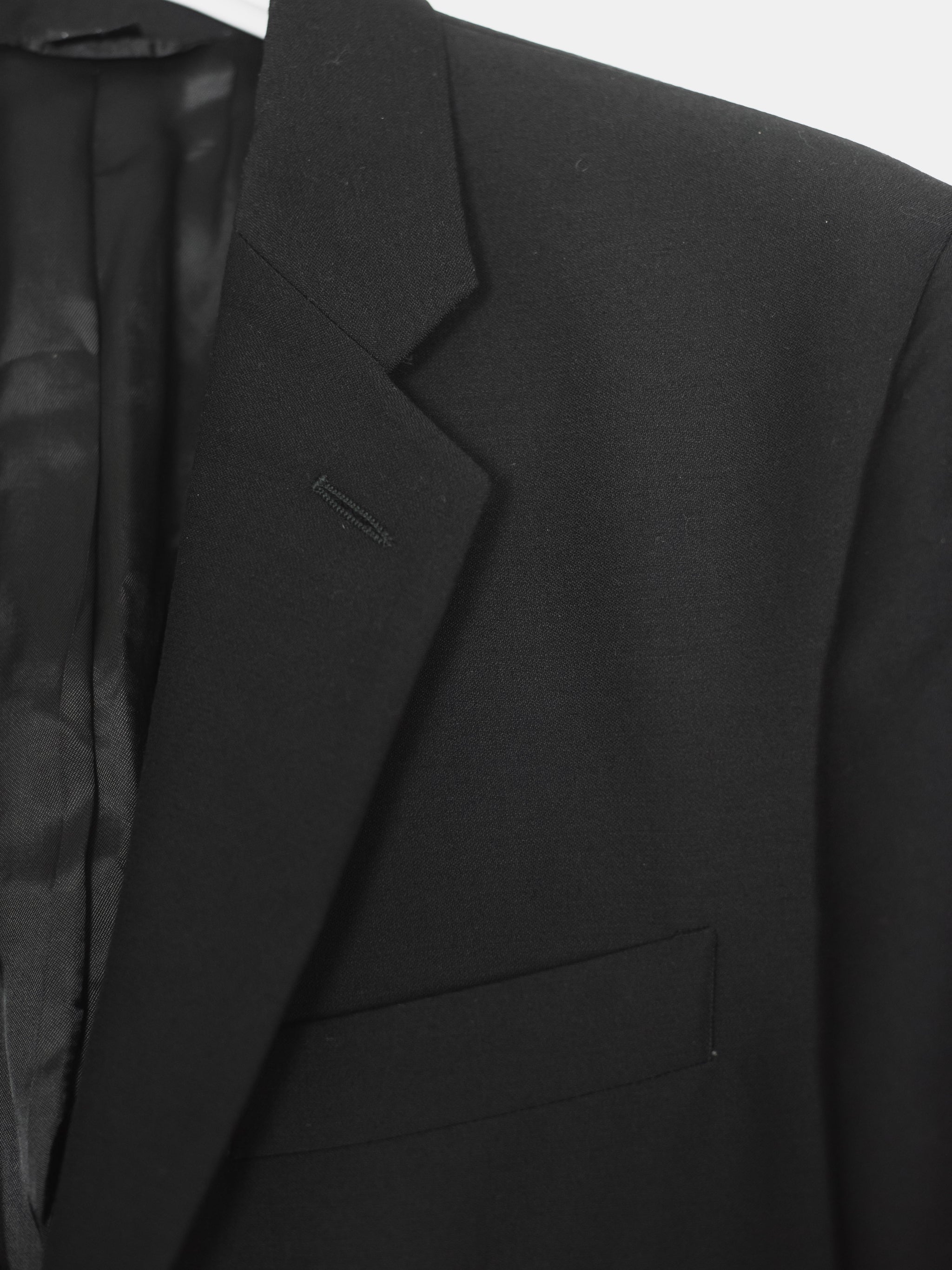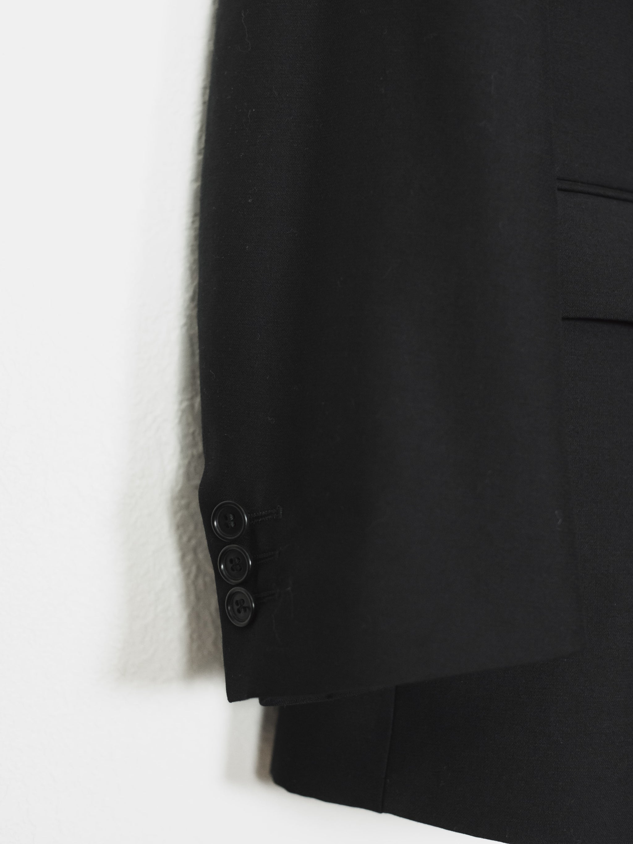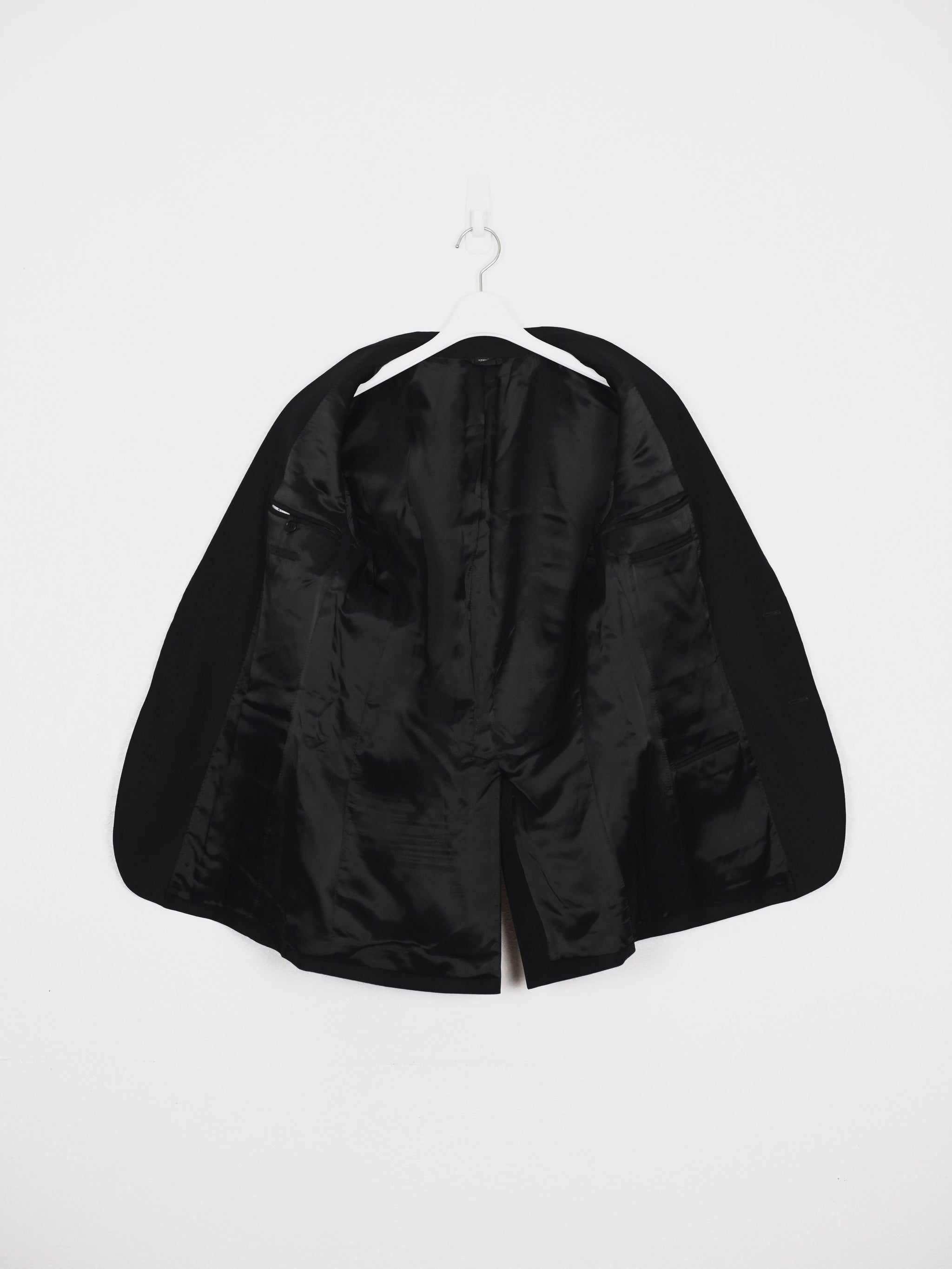 A perfect example of Helmut Lang's classic razor sharp tailoring. This hard to find matching set embodies the designer's meticulous attention to detail in craftsmanship and materials despite its minimal appearance devoid of unnecessary frills. The set creates a classic silhouette unlike today's ubiquitous trendy and undersized designs, setting a standard for quality and elegance beyond transient trends.