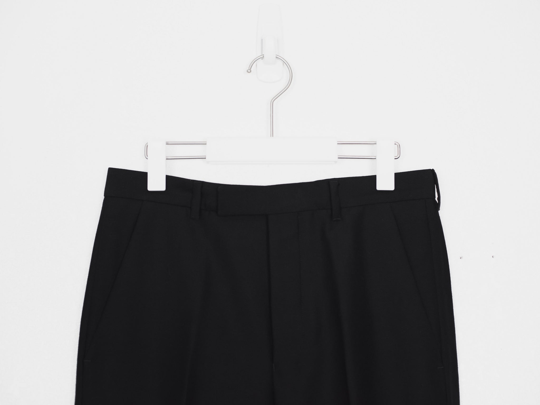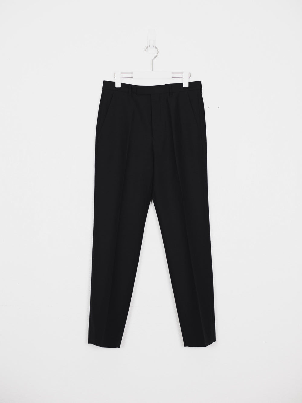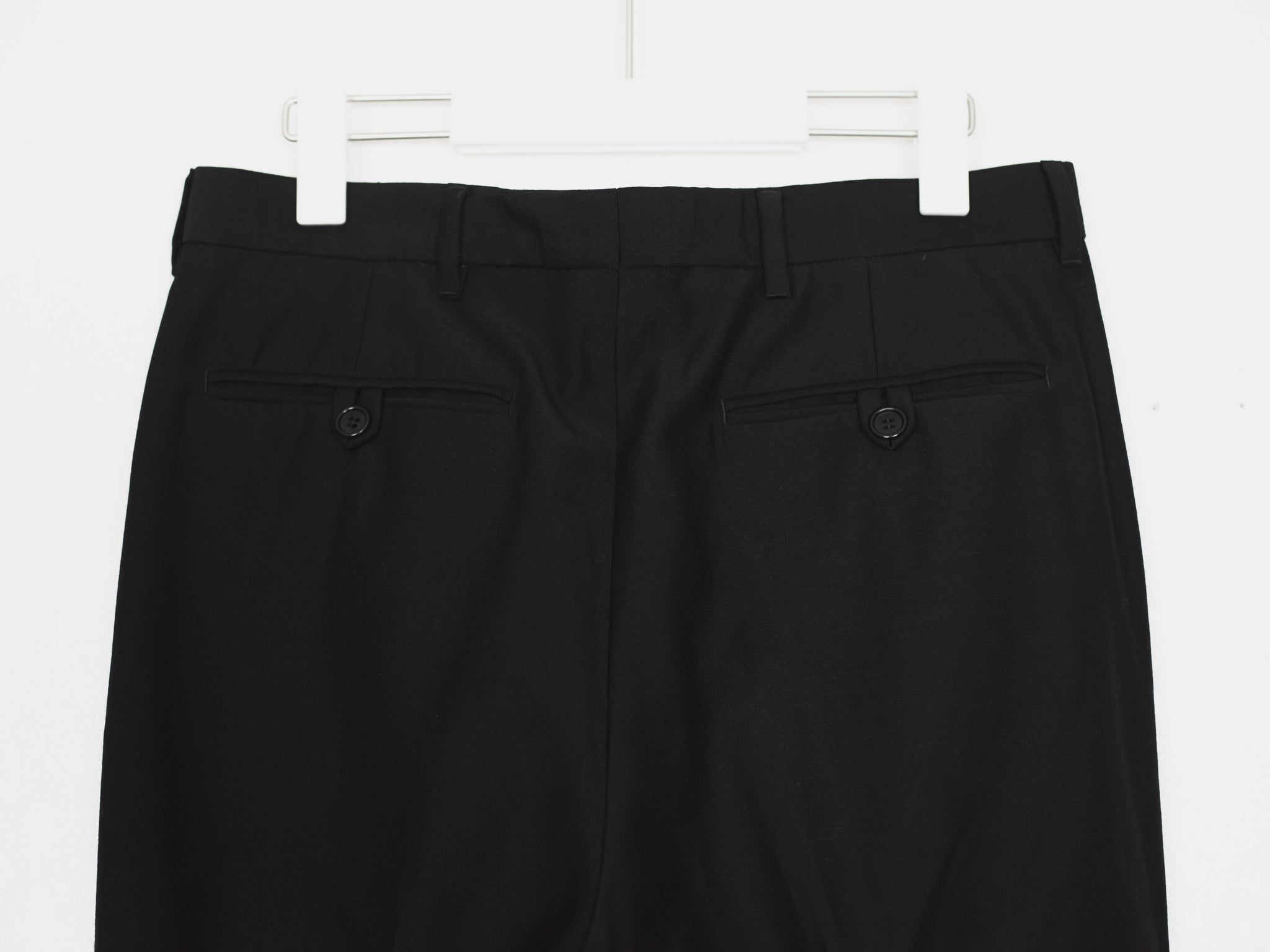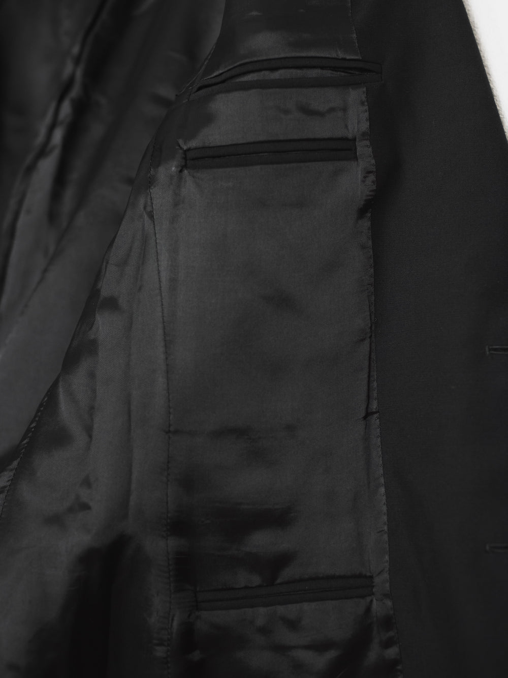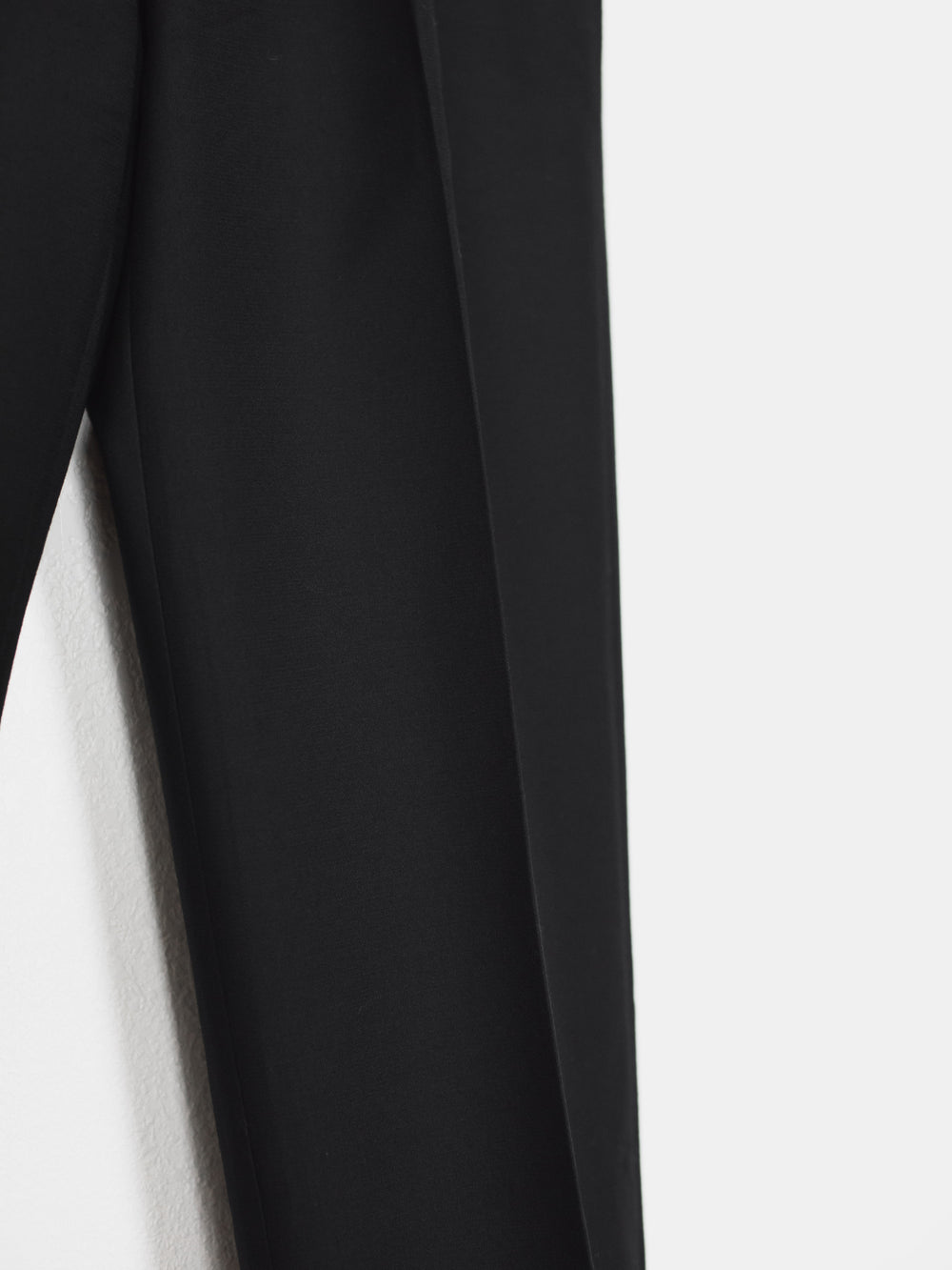 A perfect example of Helmut Lang's classic razor sharp tailoring. This hard to find matching set embodies the designer's meticulous attention to detail in craftsmanship and materials despite its minimal appearance devoid of unnecessary frills. The set creates a classic silhouette unlike today's ubiquitous trendy and undersized designs, setting a standard for quality and elegance beyond transient trends.
