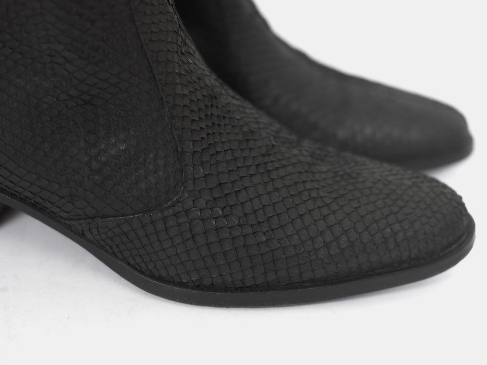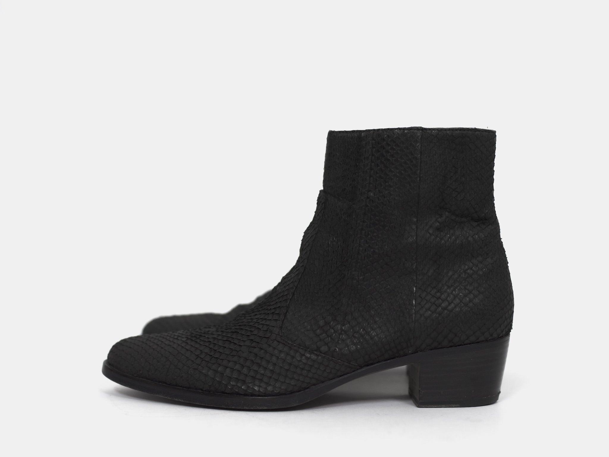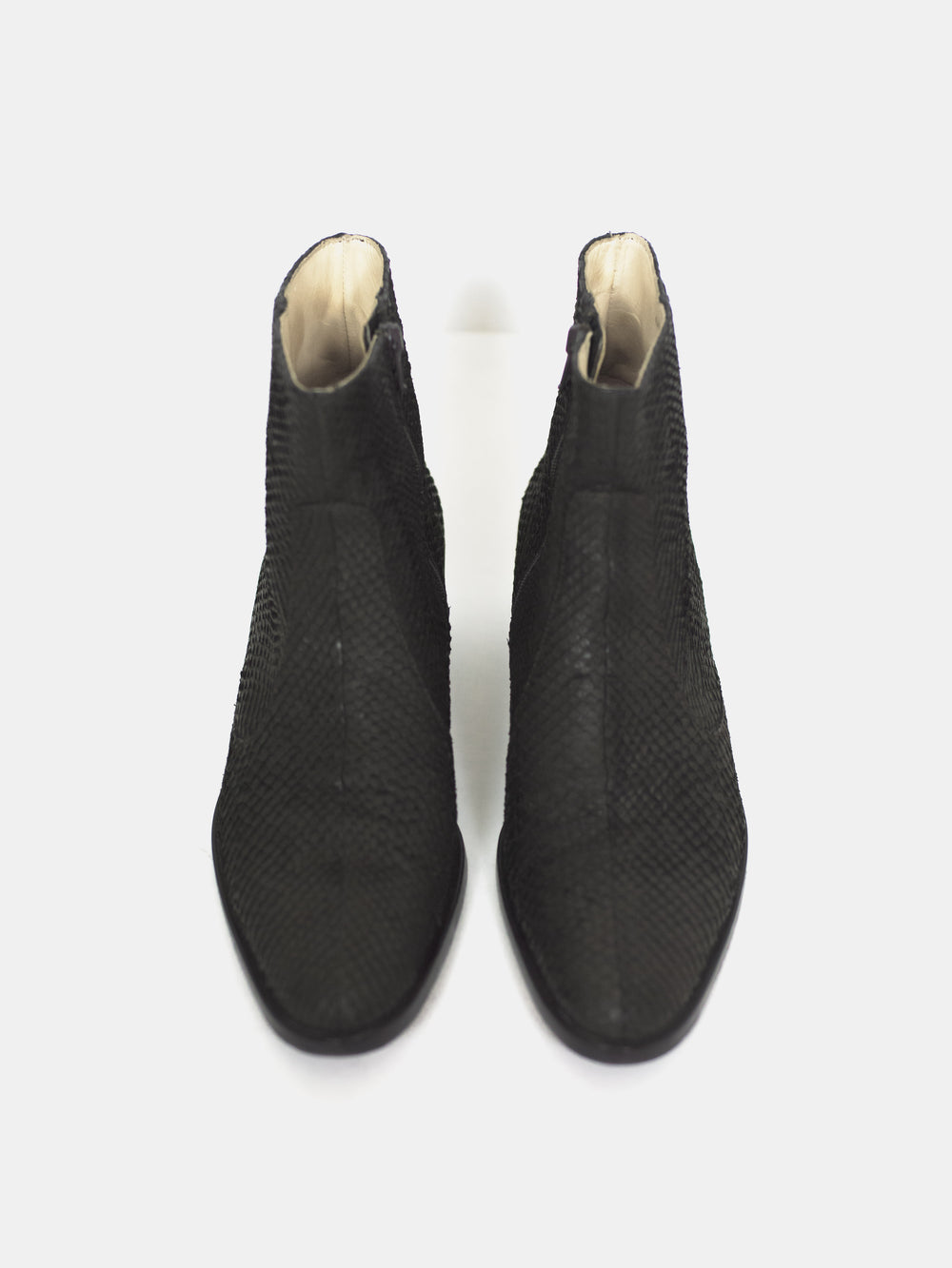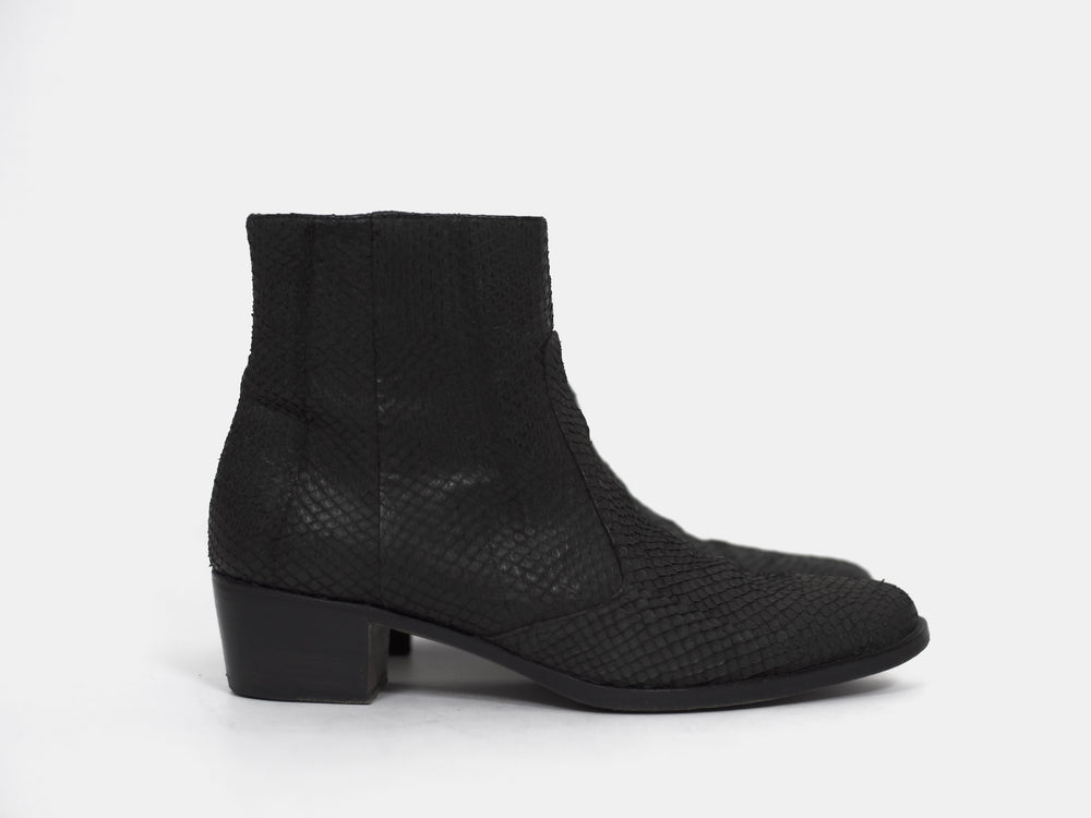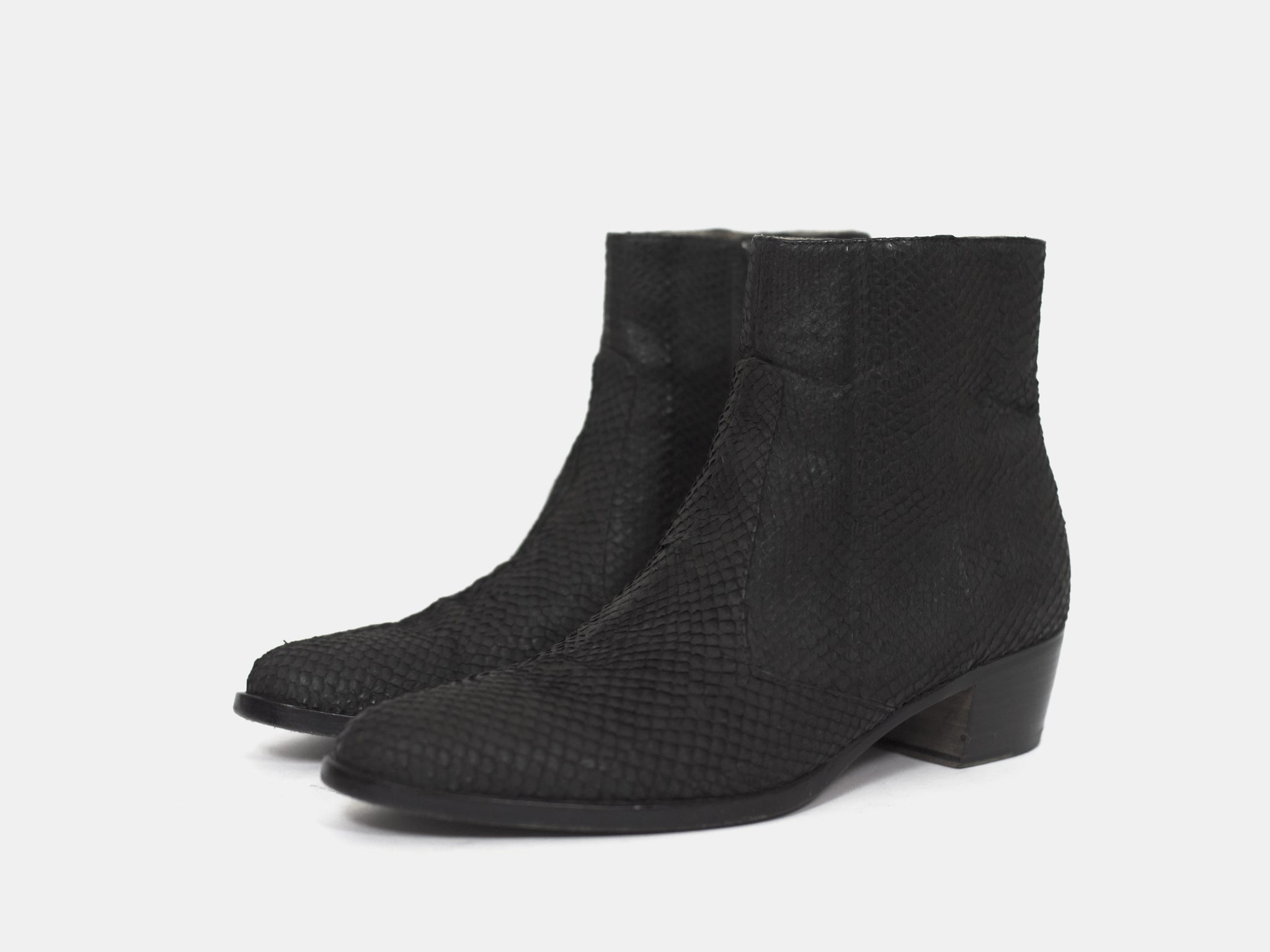 A characteristic sleek western inspired silhouette done in an amazingly intricate perch leather.