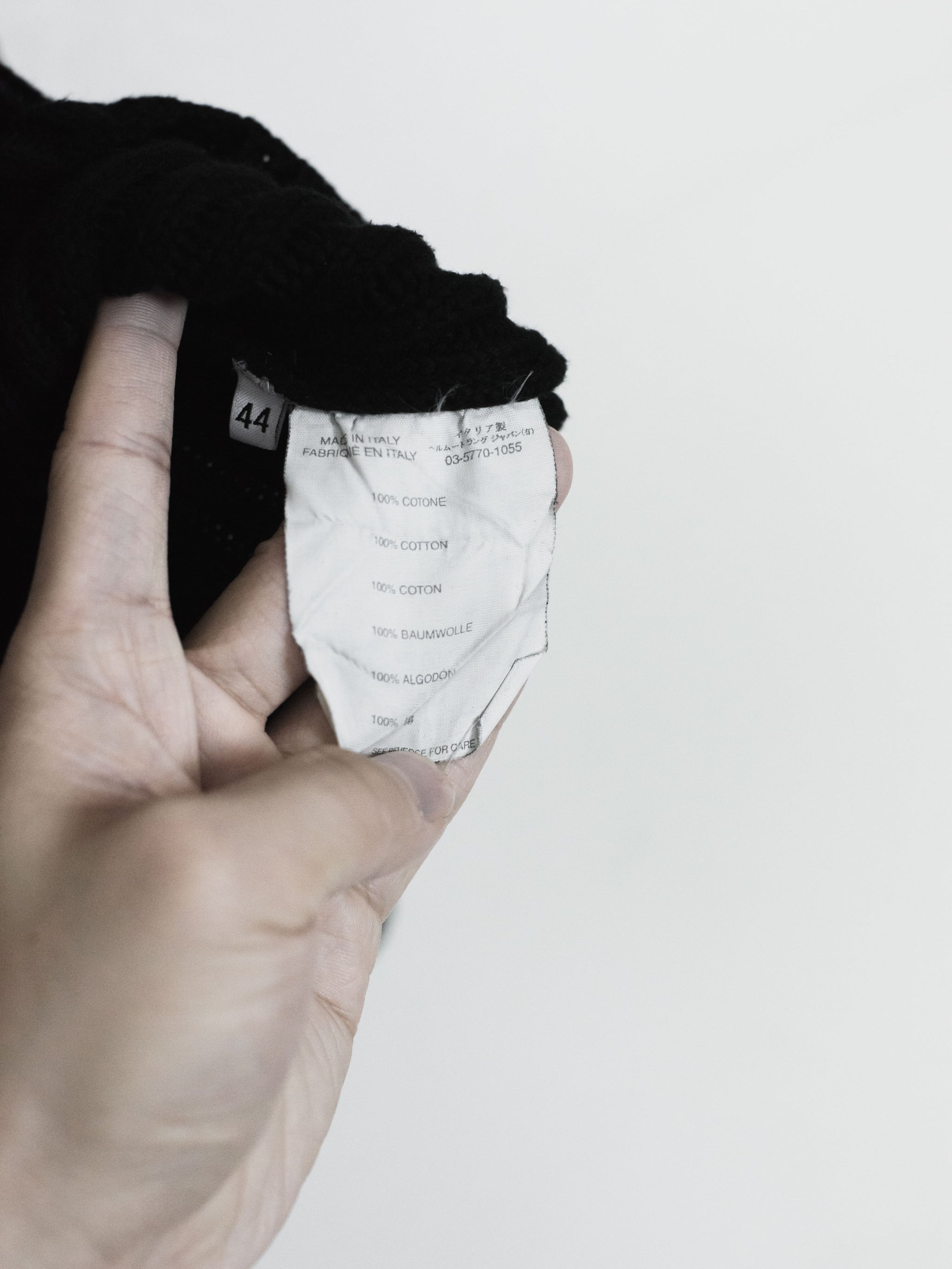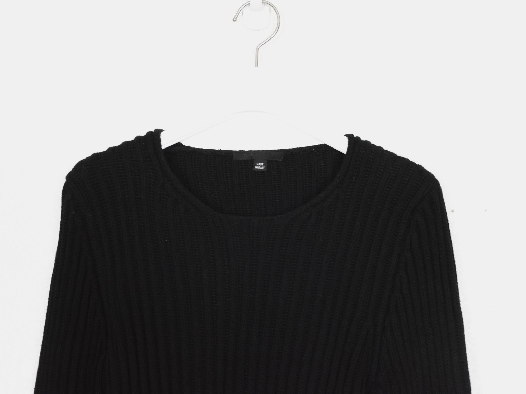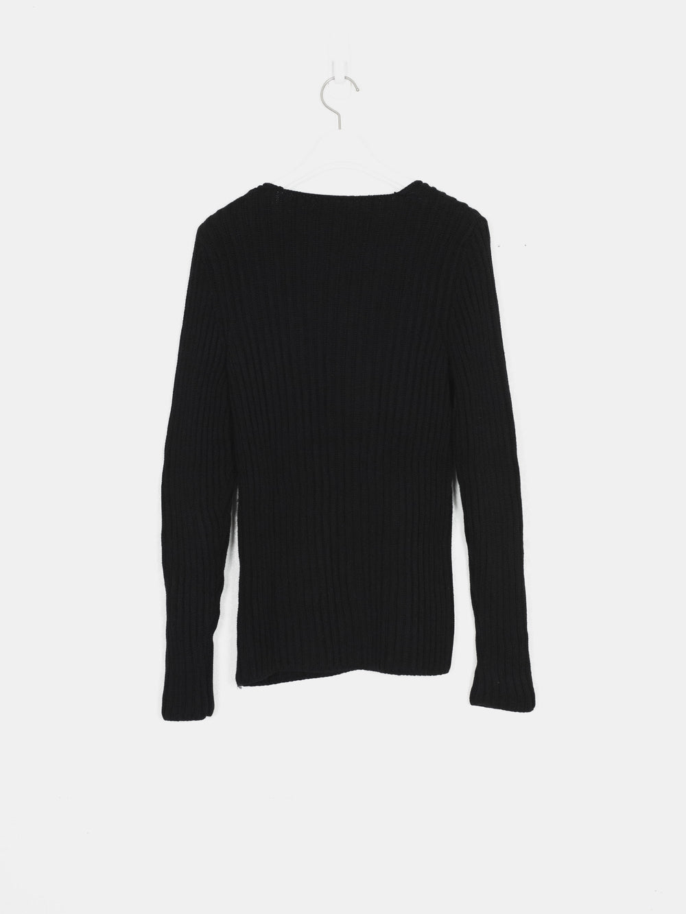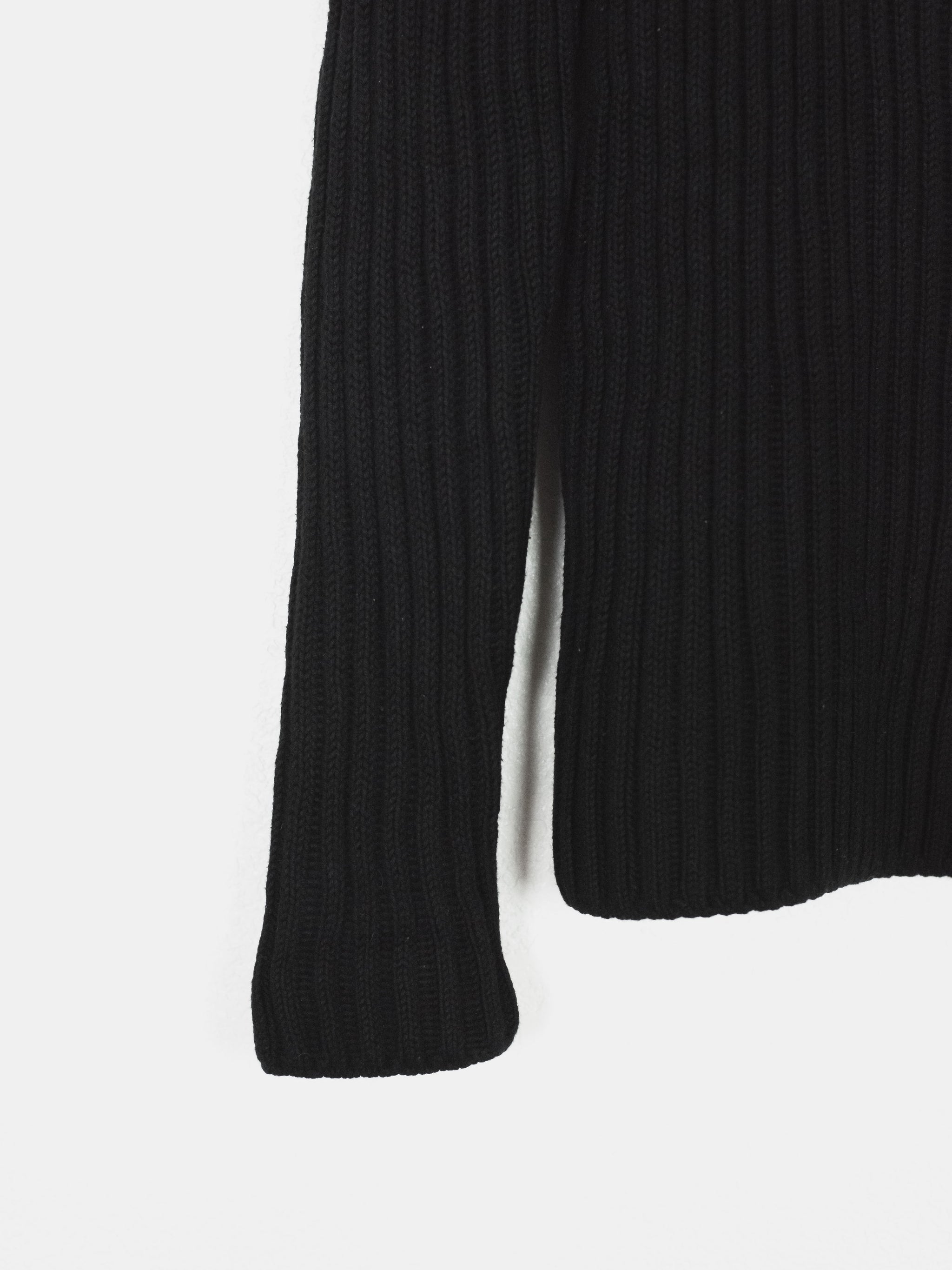 Minimalist sweater featuring a perfect collar shape with hidden finishing, and beautiful thick ribbing throughout, inspired by military sweaters.