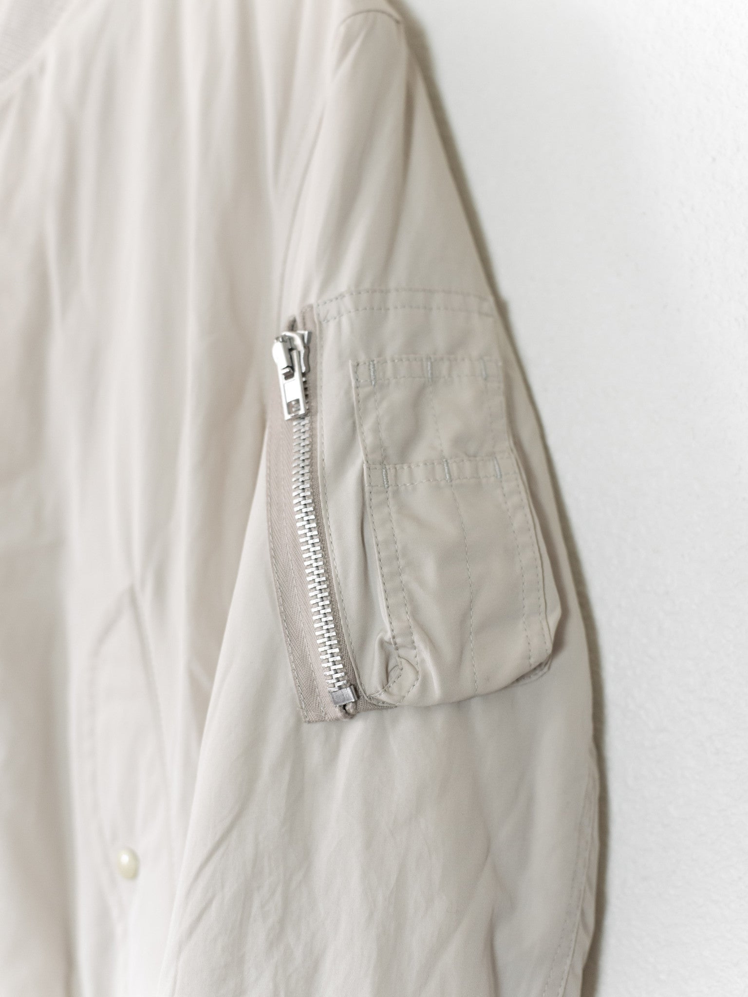 A truly, truly remarkable item from the Autumn/Winter 2003 collection. It is often that Helmut Lang takes my breath away, but even so there are cases when he completely shatters my understanding of his ability and my perception of a certain garment; this MA-1 is one of those cases.