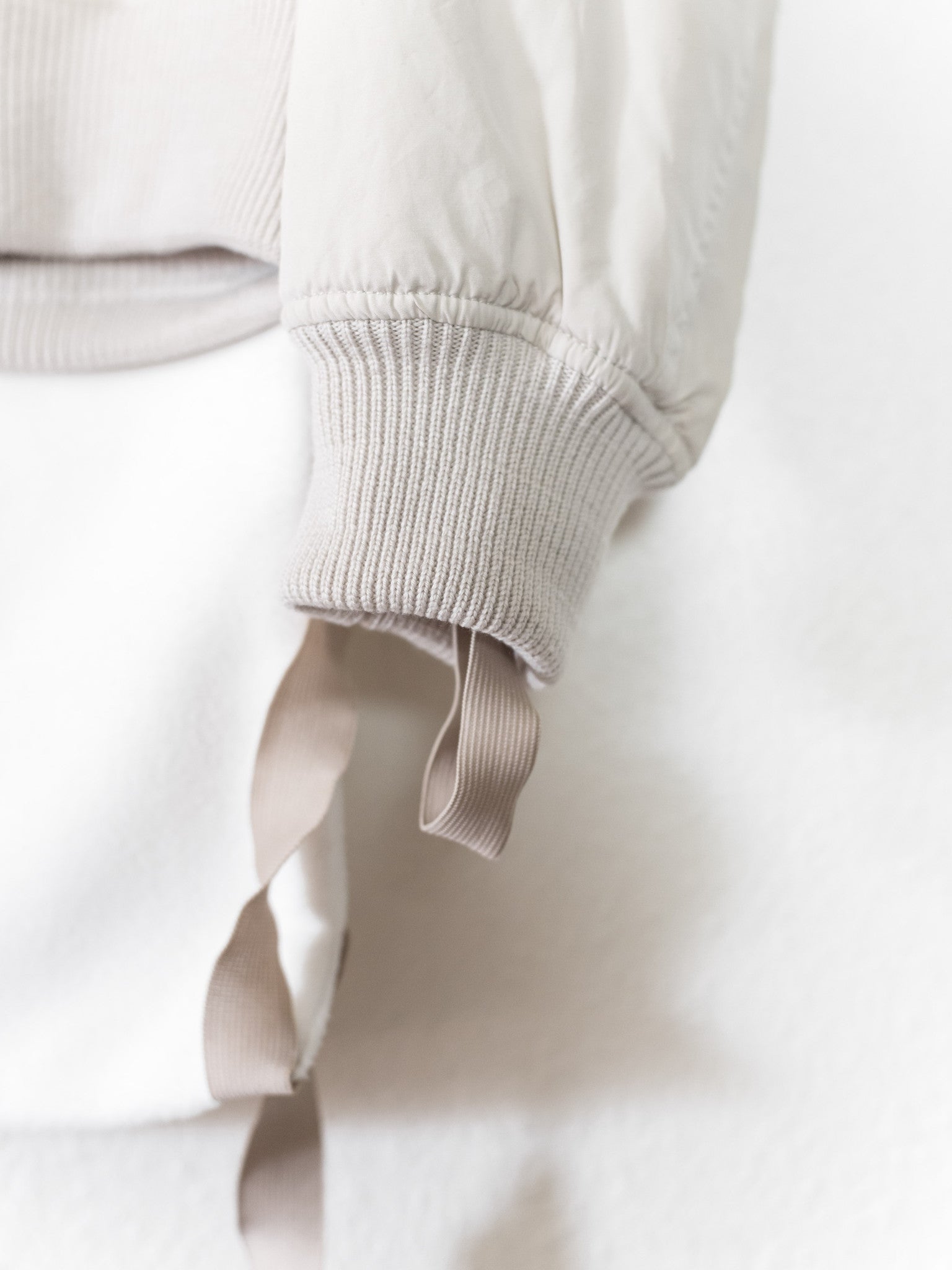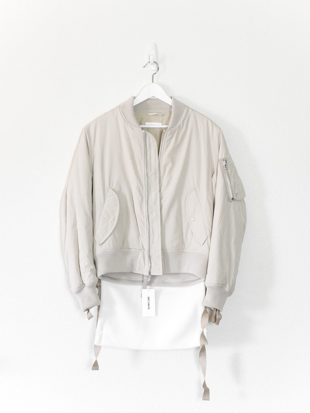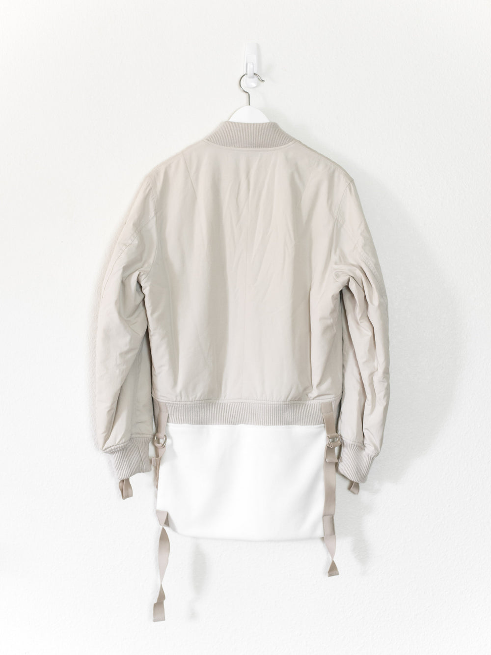 Lang has transformed the rugged, somewhat hawkish nature of the MA-1 into a carnal, intricate and delicate garment with a few simple deliberations. The body of the MA-1 when subtracting all the applications is the most standard Lang did. It was released in Navy, Army Green and Black but the Stone Cream seems to be the most fitting in my eyes; it is subtle and enticing, a perfect compliment to the sexually charged bondage-inspired applications. The asymmetric shoulder sleeve detail is perhaps the most notable and unique element of this jacket, almost resembling armour. In contention to this resemblance however is the delicate nature of the cotton fabric the sleeve is composited out of; the balance Lang has found between violence, sensuality and subtlety is remarkable and convincingly beautiful.