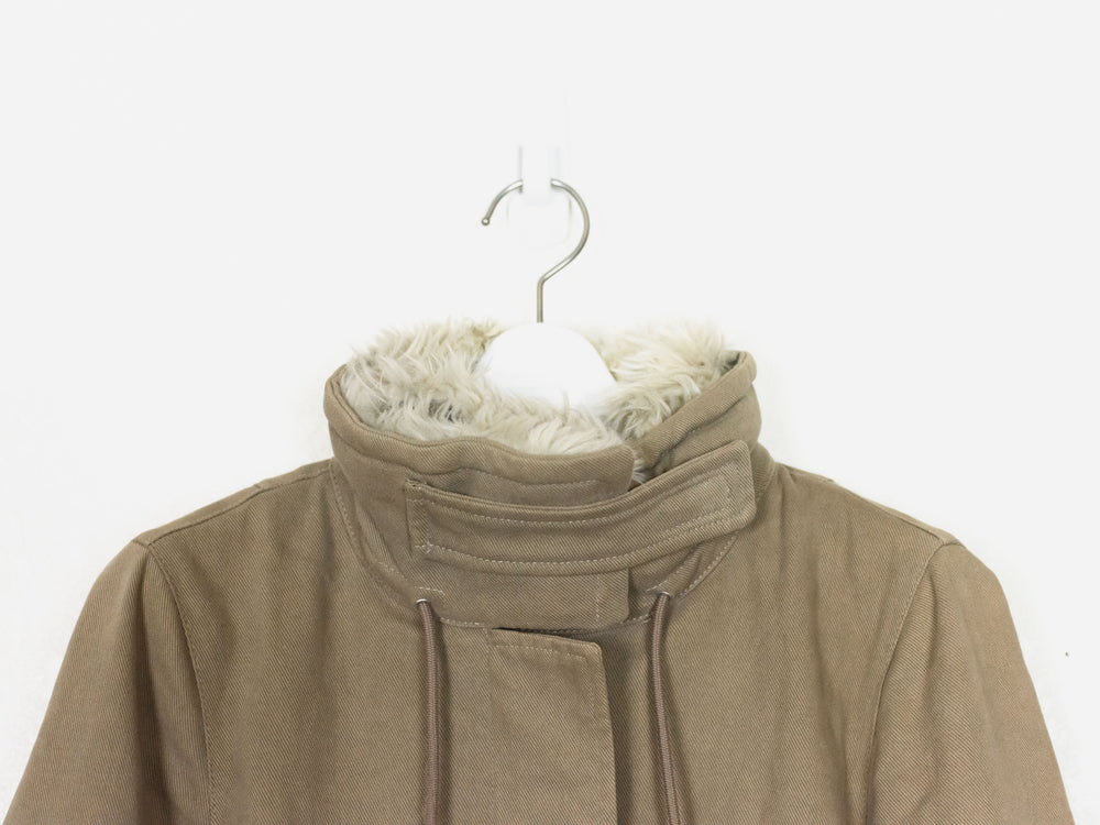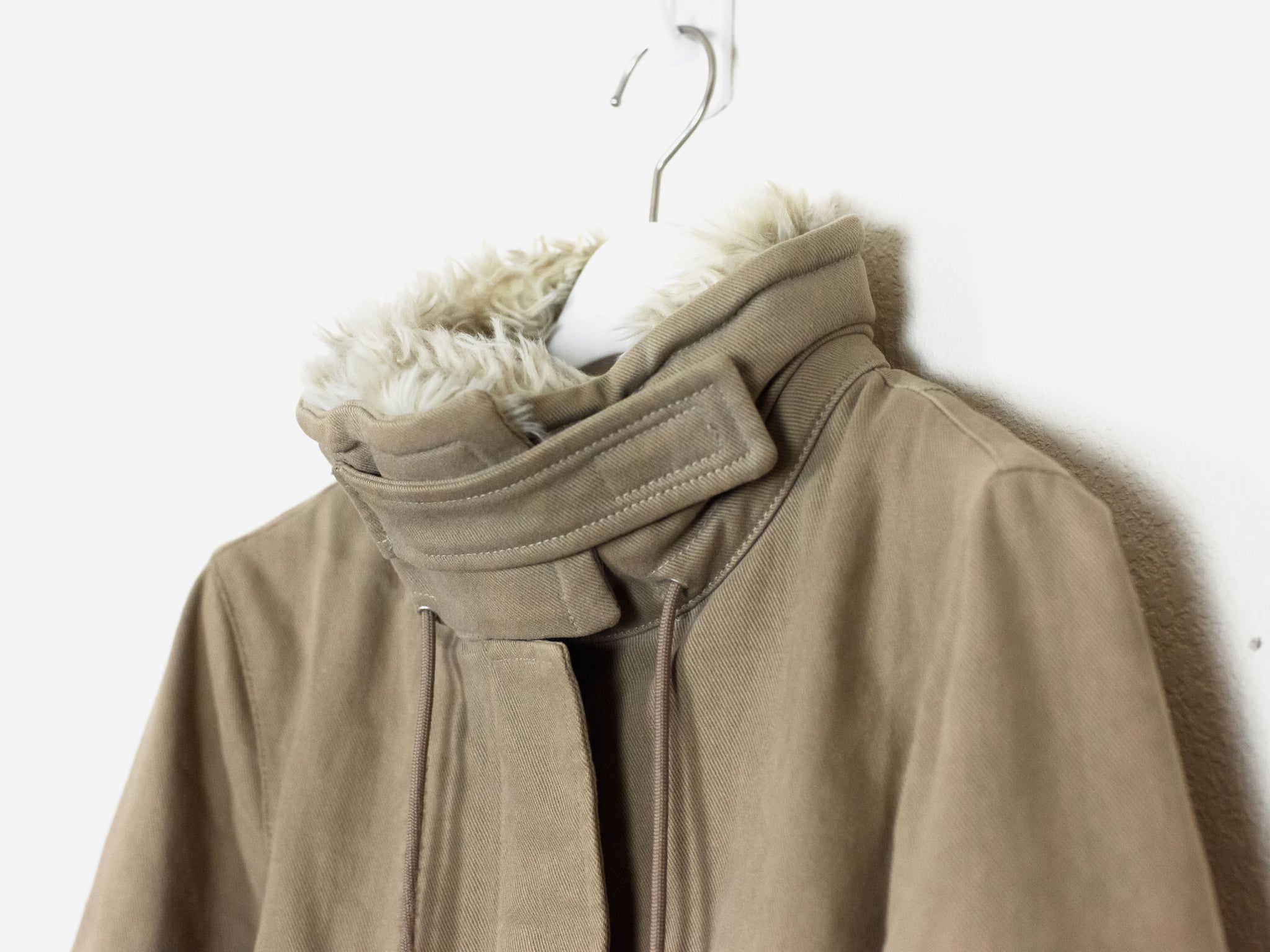 A minimal Astro Biker Jacket in a rare cotton canvas with improved, super smooth Riri zippers throughout, as well as the traditional details such as a wire-adjustable collar, removable faux fur, biker detailing on articulated arms, and interior chest pocket. It is lightly insulated but since this is a women's cut, there is less bulk, especially in the sleeves, which hug the arms tighter than on a men's version.