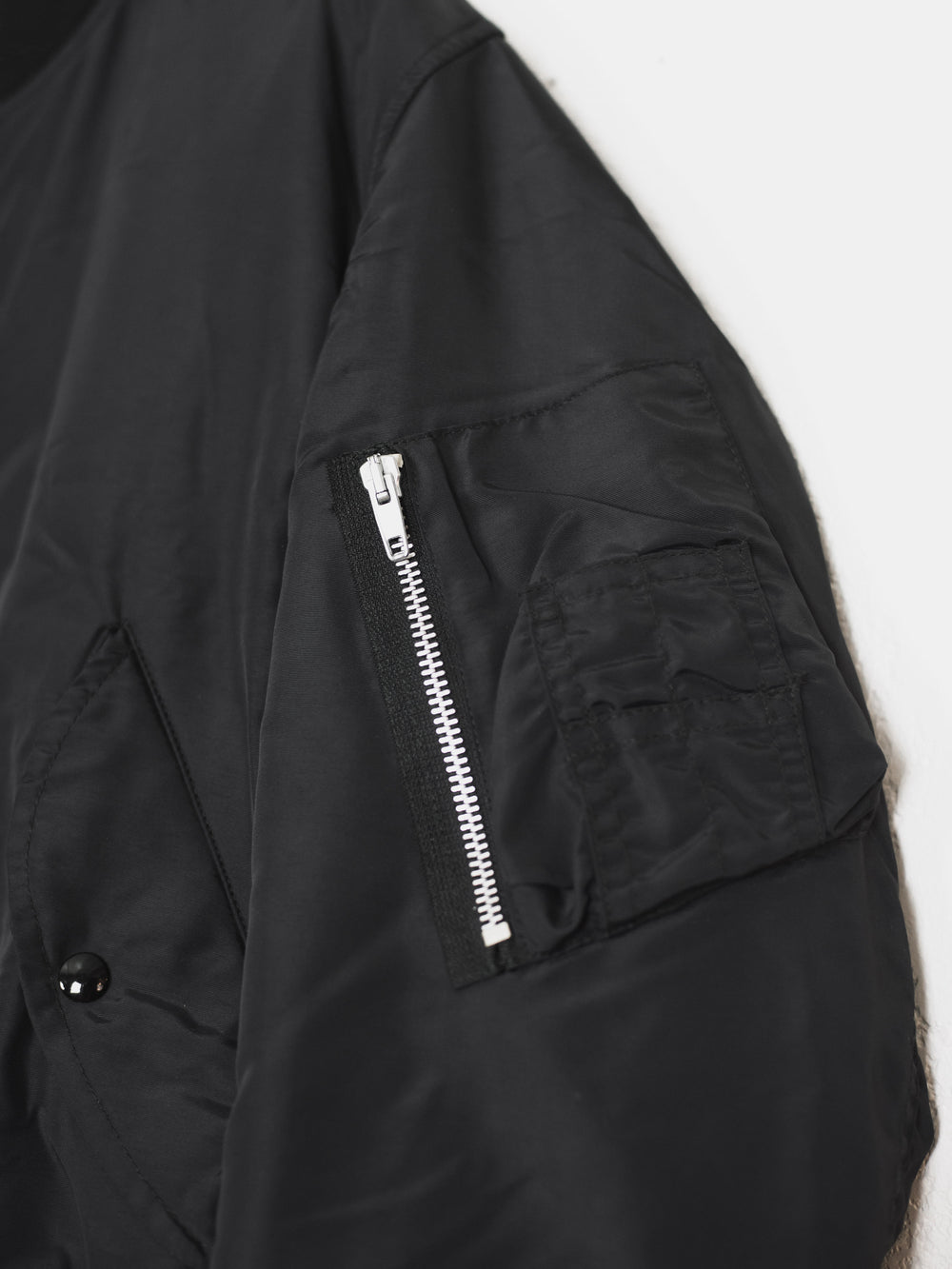 The ultimate classic MA-1 bomber, the standard of what every other should be modeled after. The jacket is a perfect rounded oversized fit composed of a comfortable and lightly padded nylon outer, containing every necessary detail; no more no less. The perfectly shaped windflap, pocket flaps, tight-knit ribbing, and spacious interior pockets show off the mastery of Helmut Lang's tailoring and ethos in his minimalistic military adaptations.