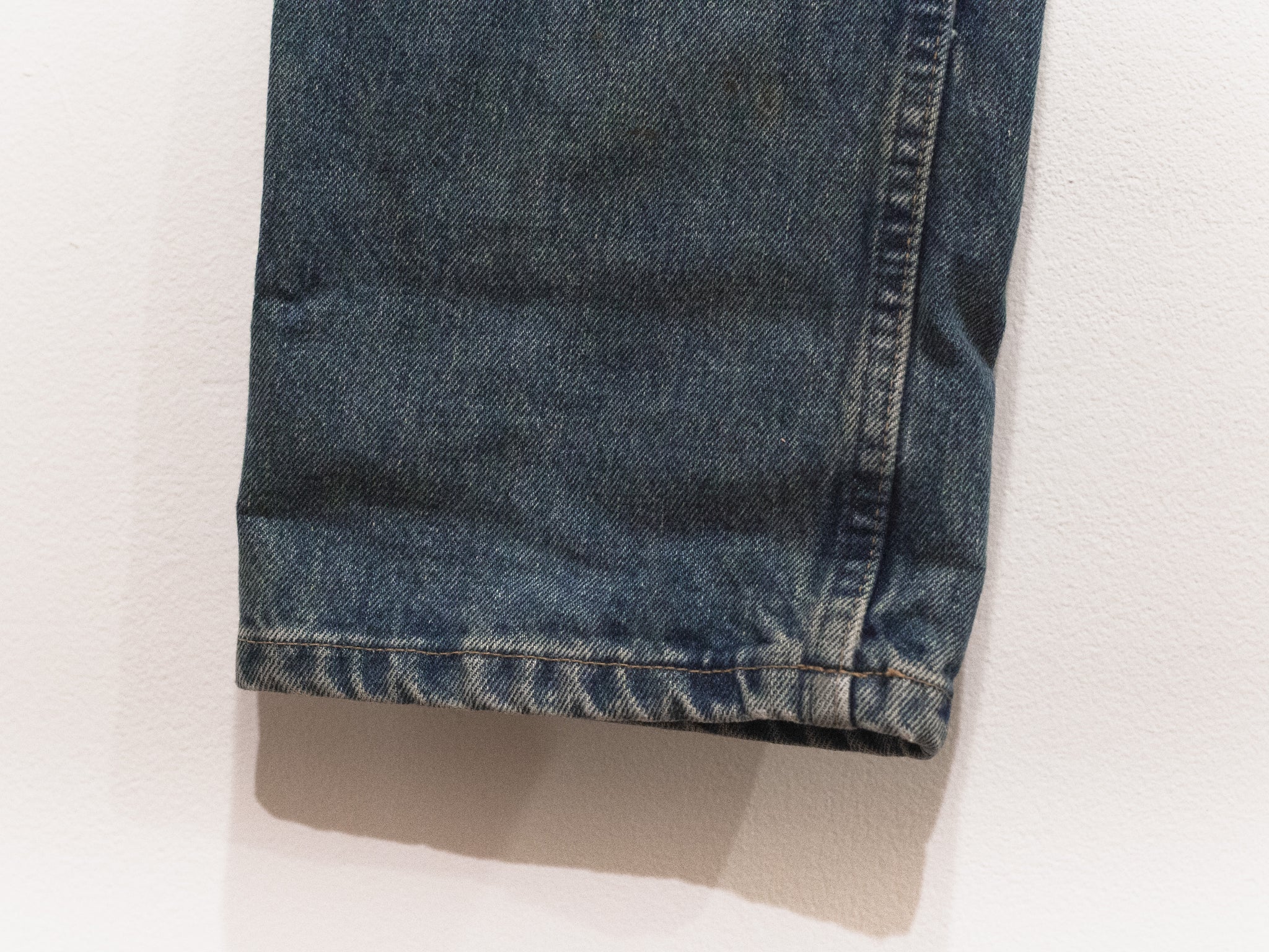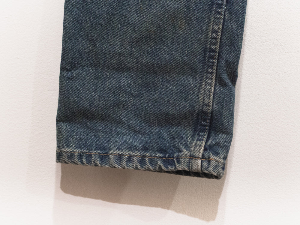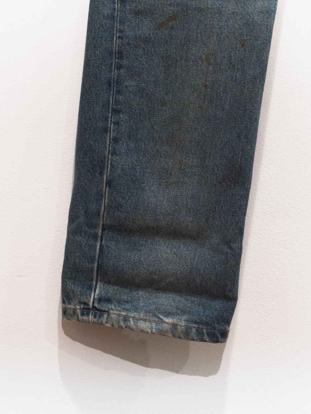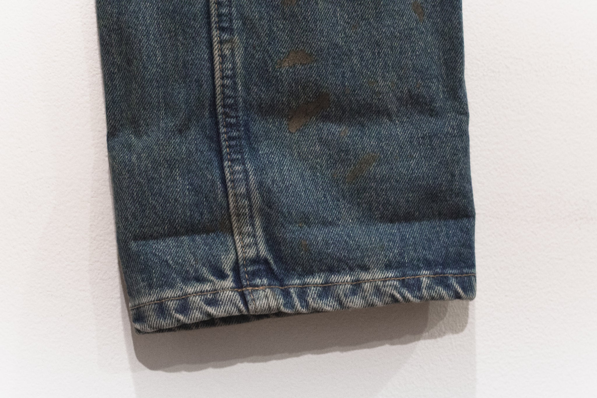 The classic Helmut denim from his time at the label. This pair features a darker treatment, with the gold paint echoing both glamour and simple, dirty mudstains.