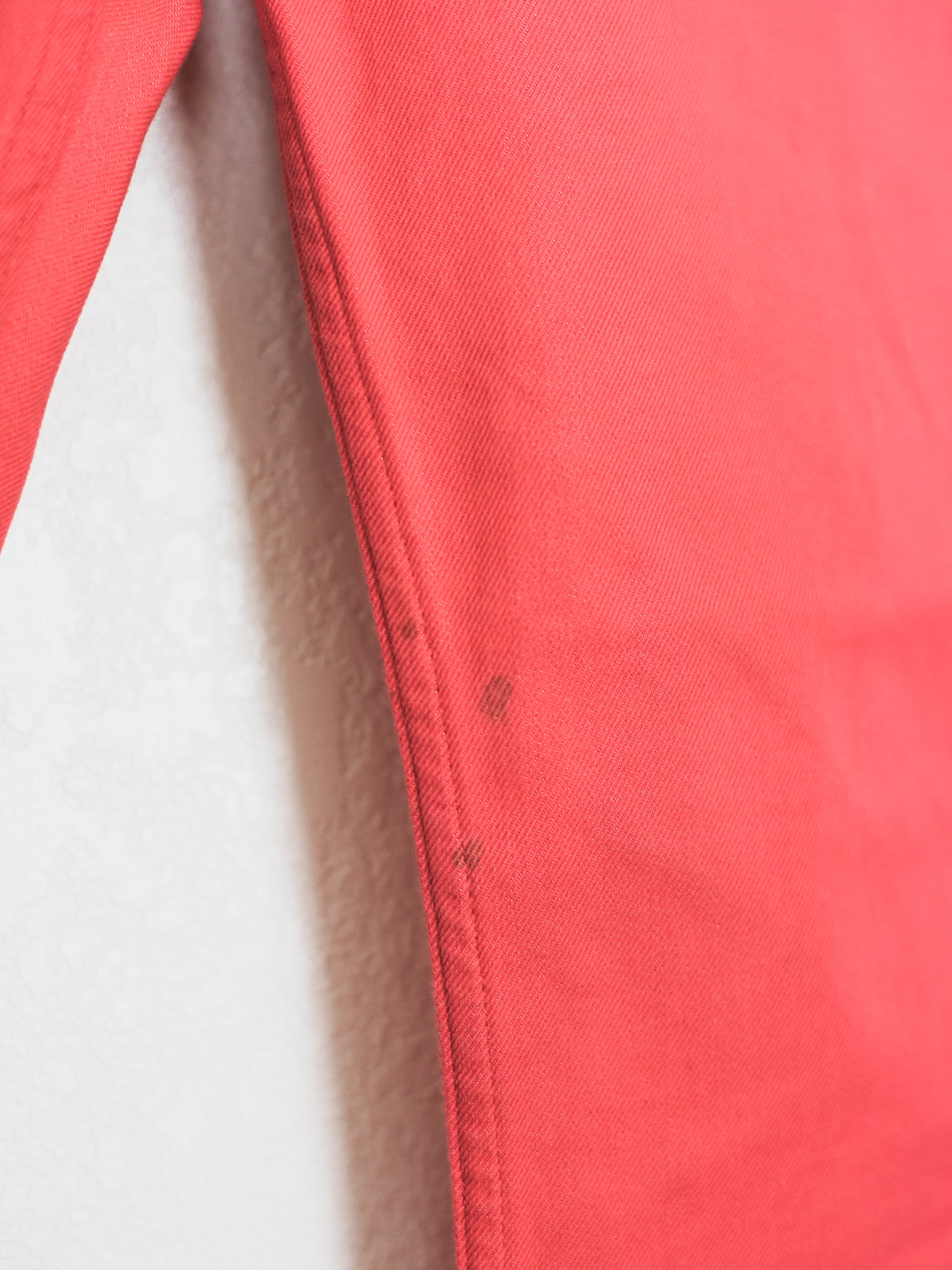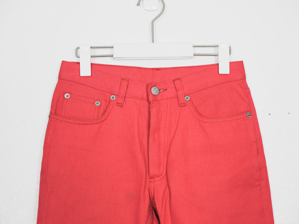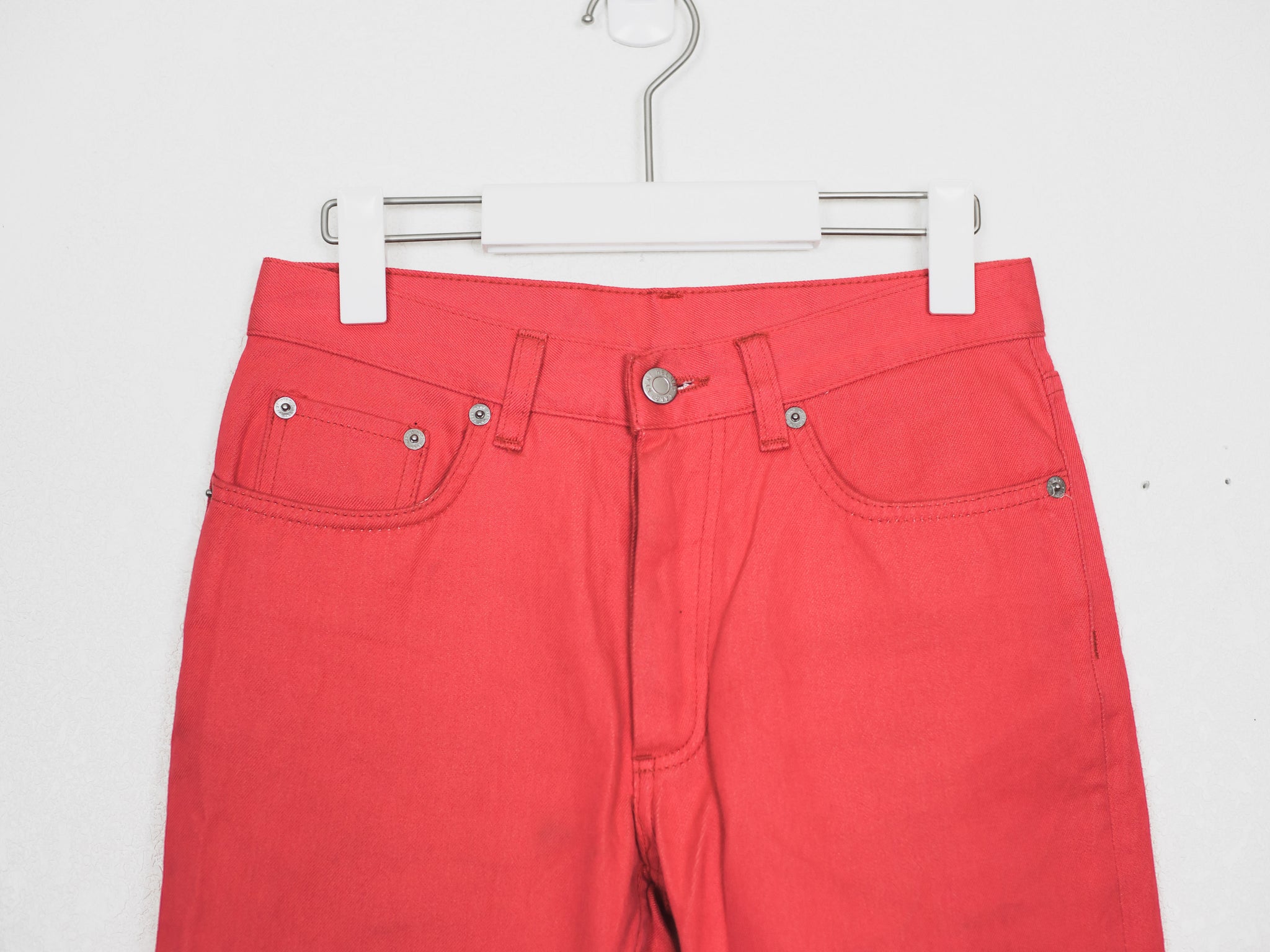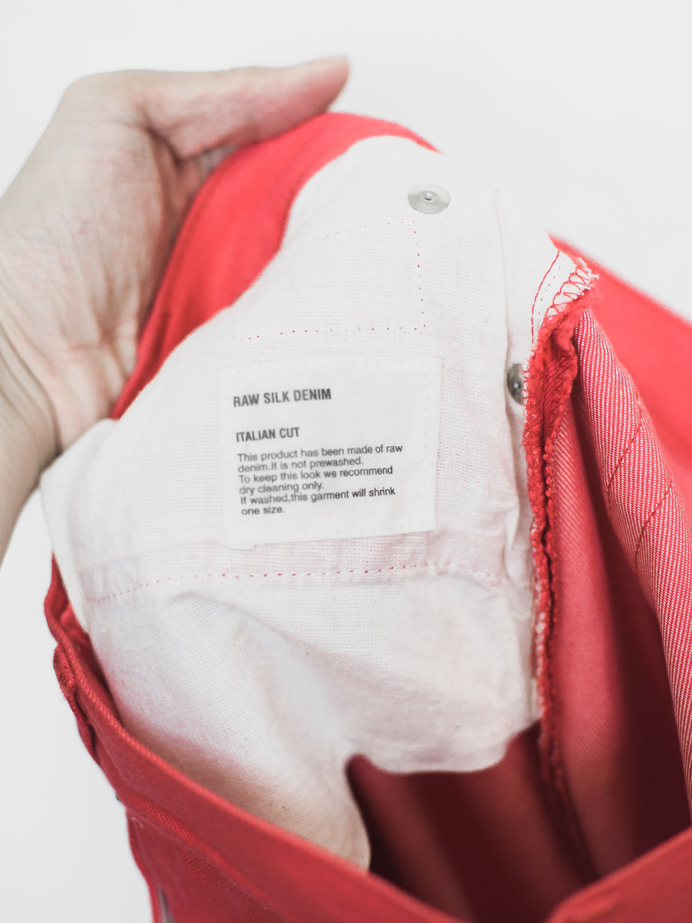 Another intensely clean interpretation from Helmut Lang. These jeans are constructed in a ridiculously smooth silk blend denim and an eye-catching bright red.