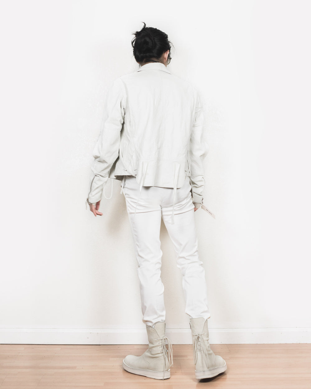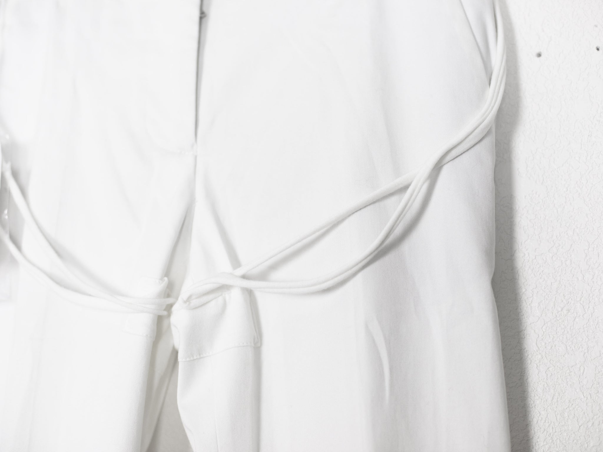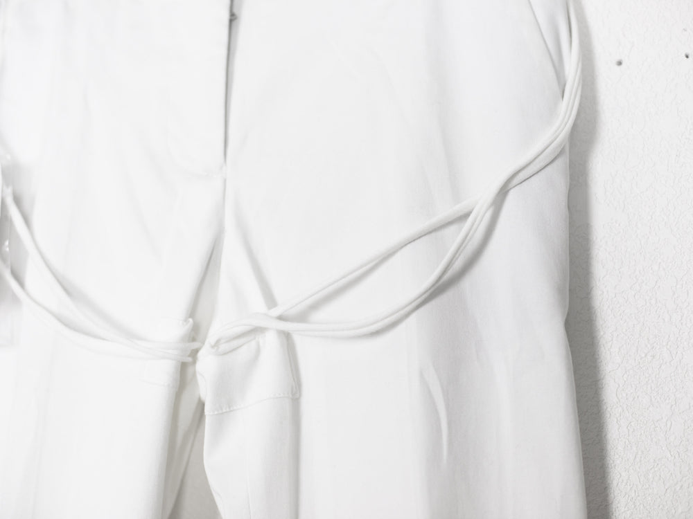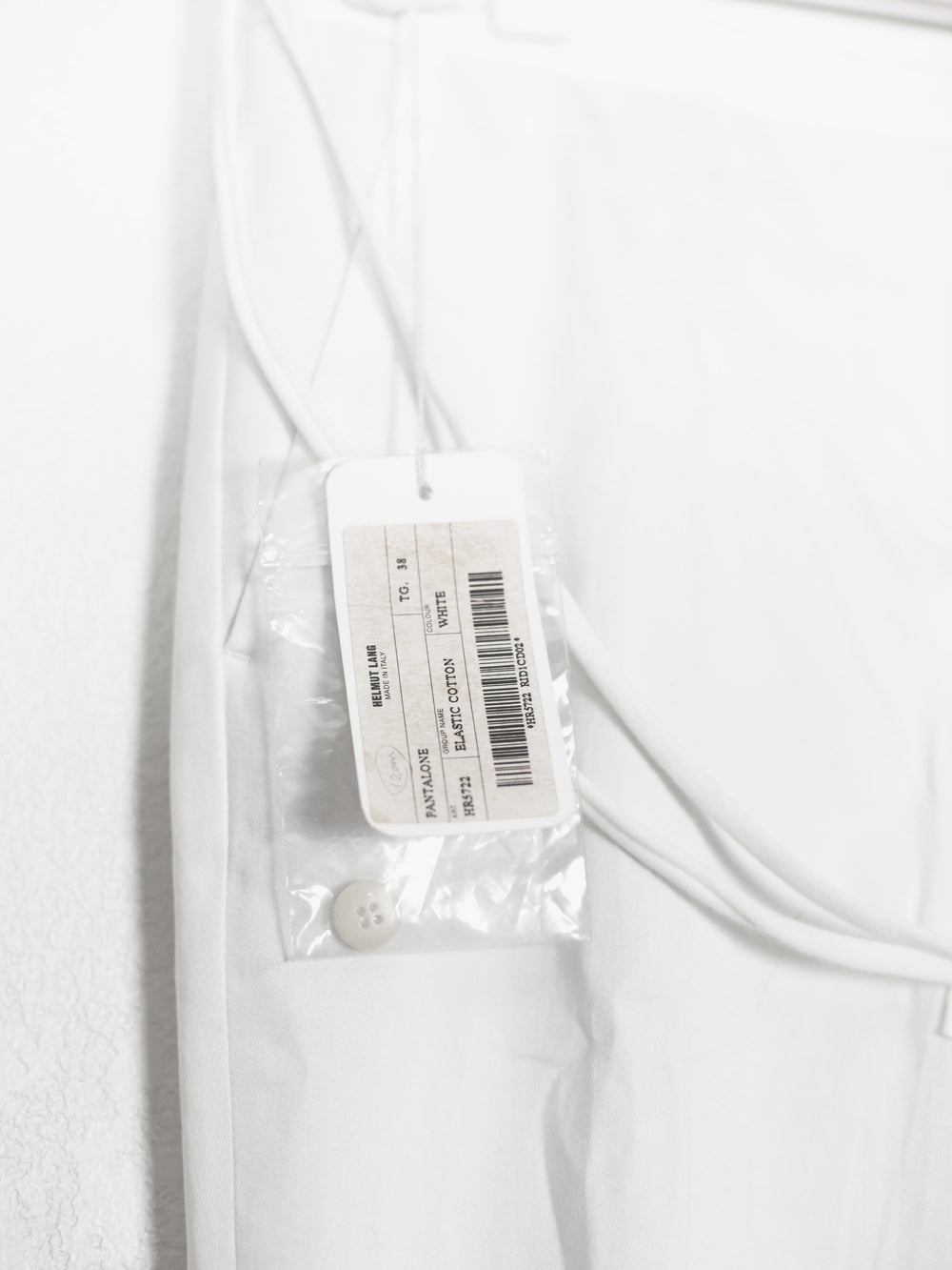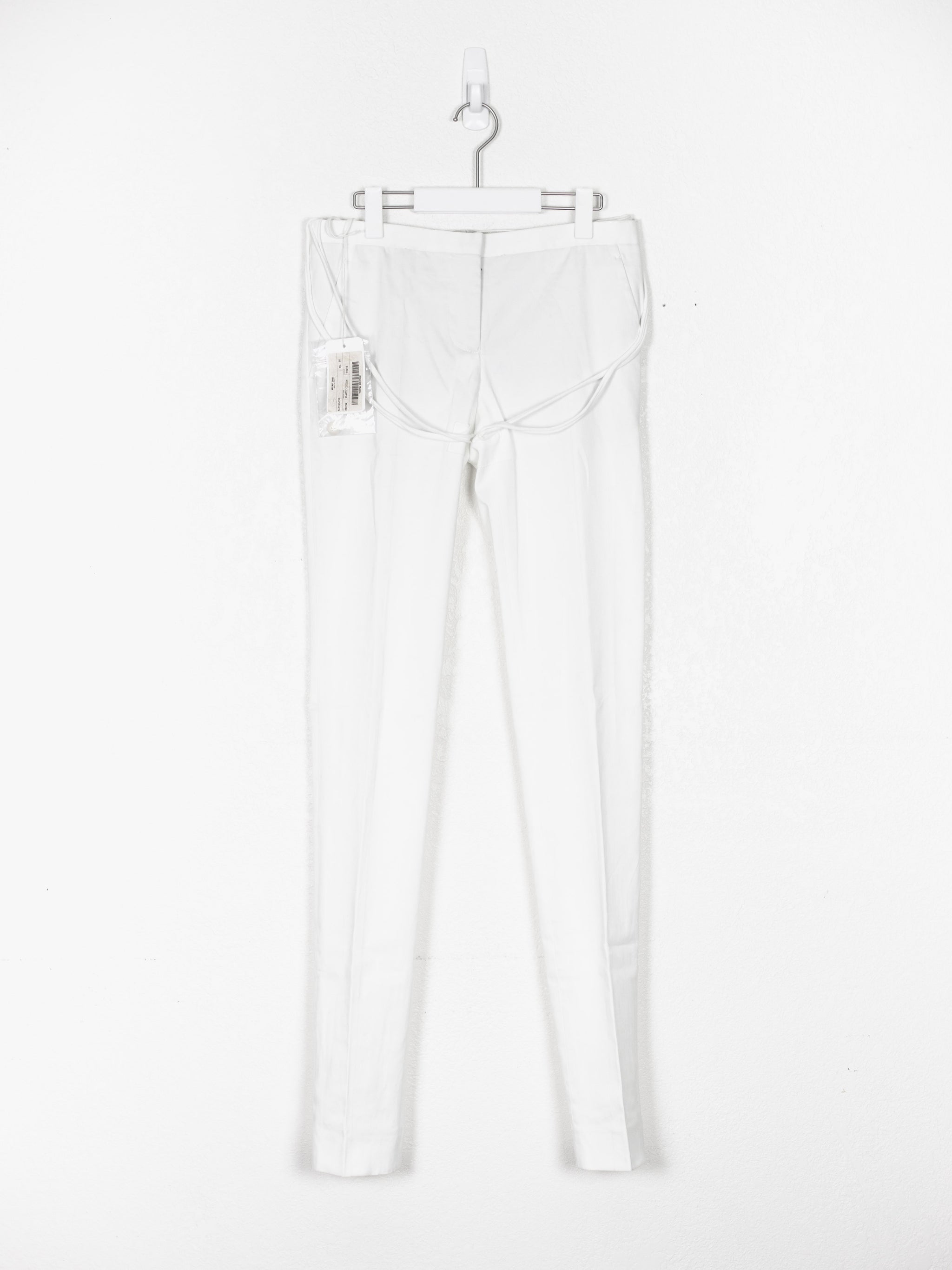 Minimal trousers featuring the signature raw straps from SS04 highlighting the clean crisp canvas.