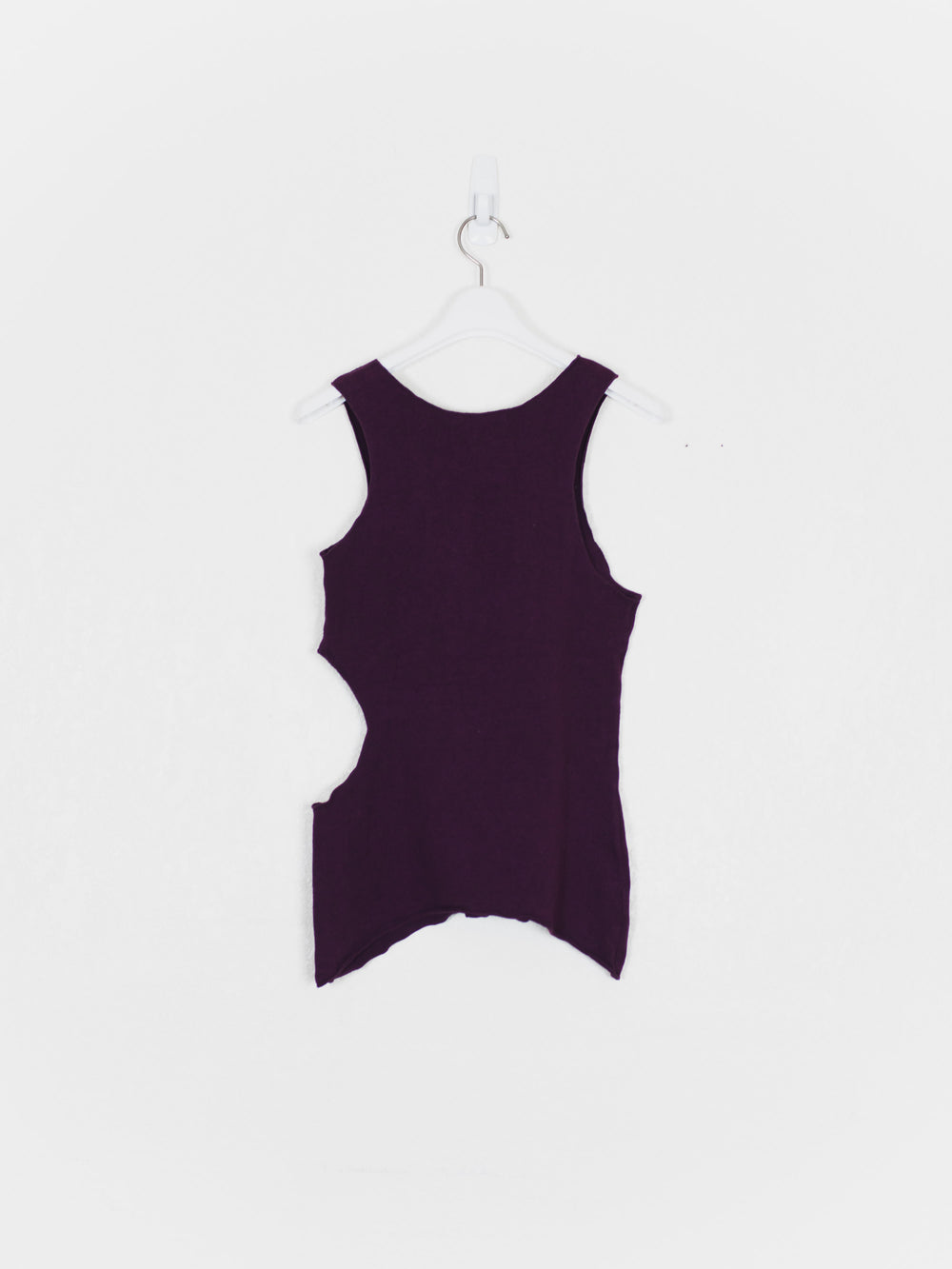 The asymmetric cutout tank was heavily featured throughout ad campaigns for SS04 and remain highly sought after. This particular iteration is composed of a thick stretch cotton.