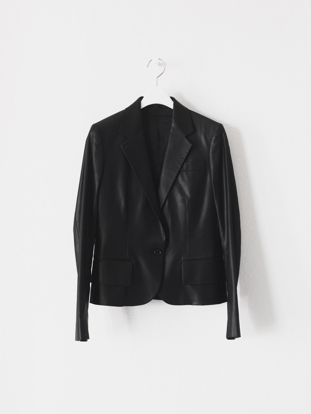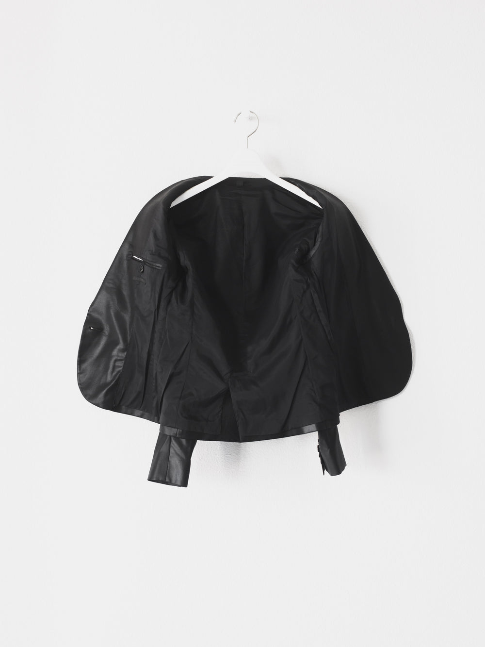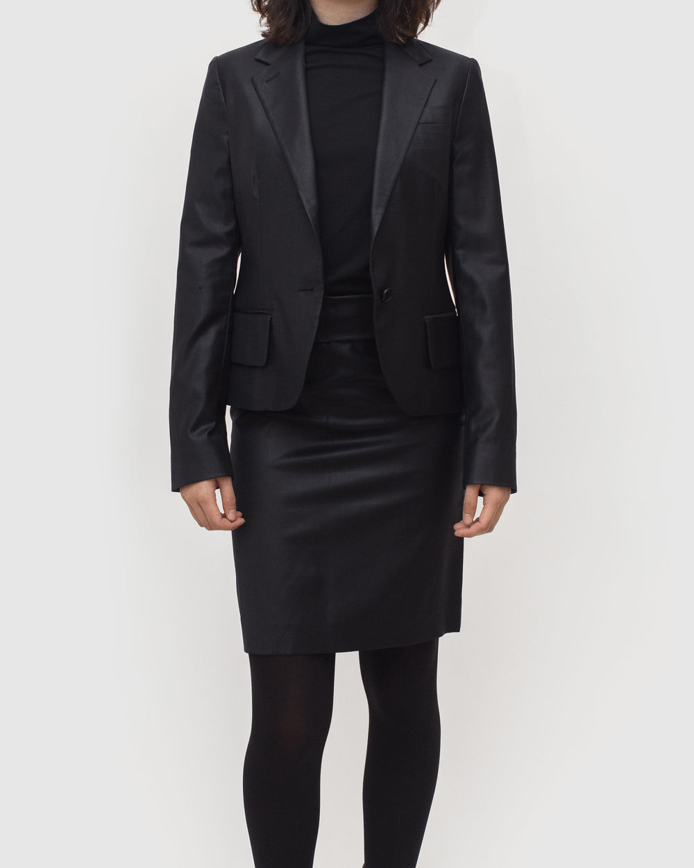 A perfect example of Helmut Lang's classic razor sharp tailoring with his use of unconventional materials. This hard to find matching set embodies the designer's meticulous attention to detail in craftsmanship and materials despite its minimal appearance devoid of unnecessary frills.