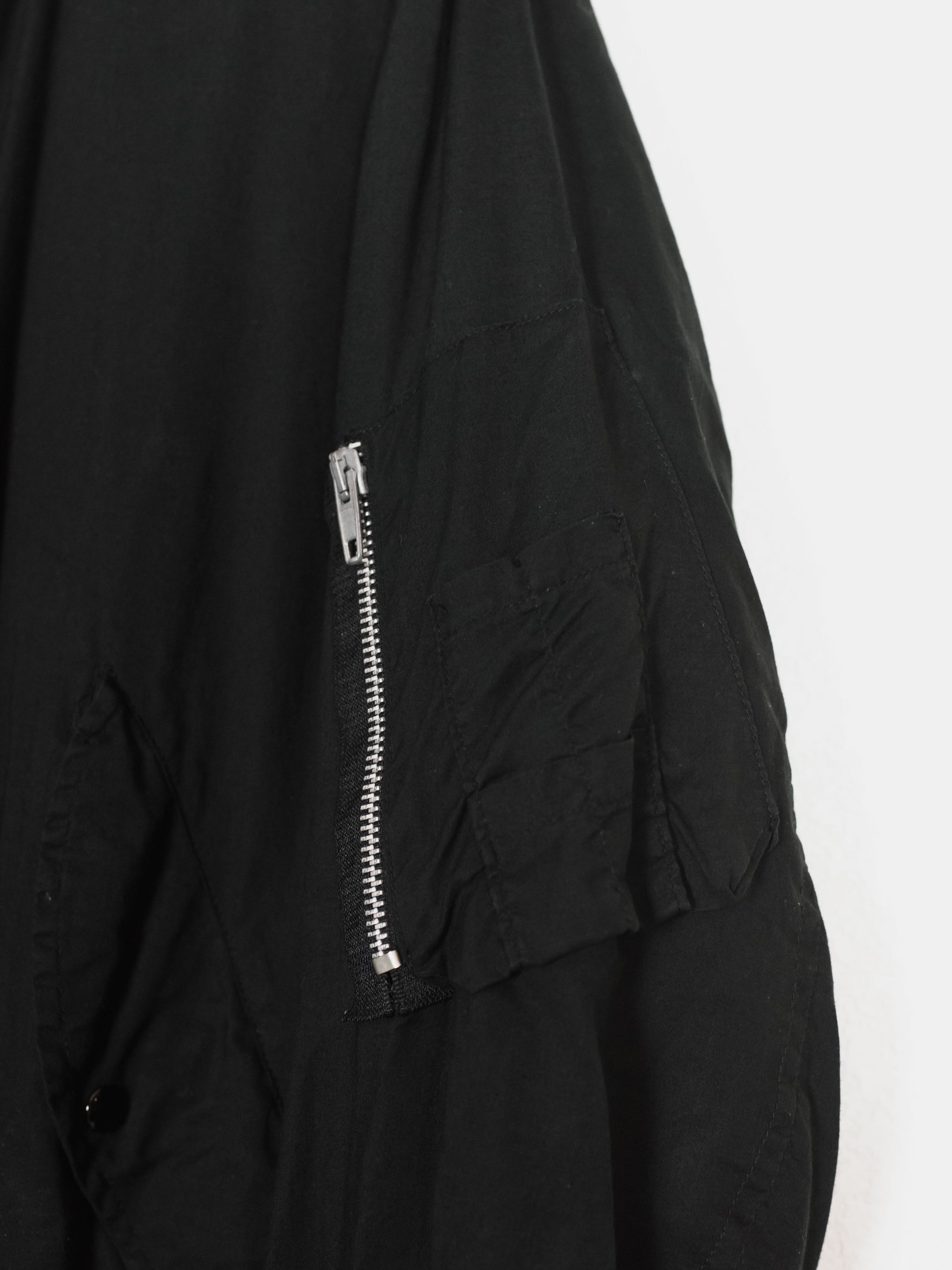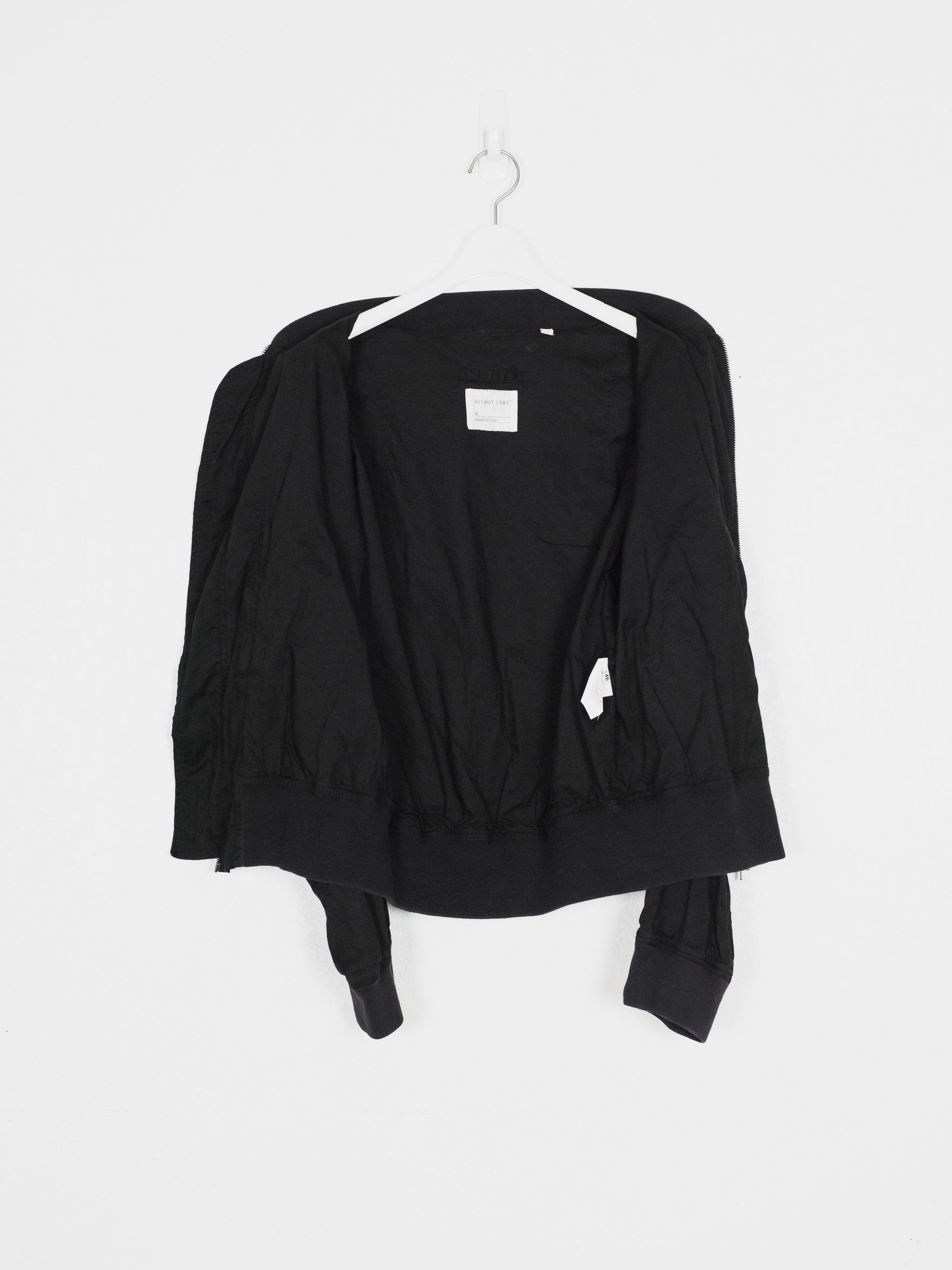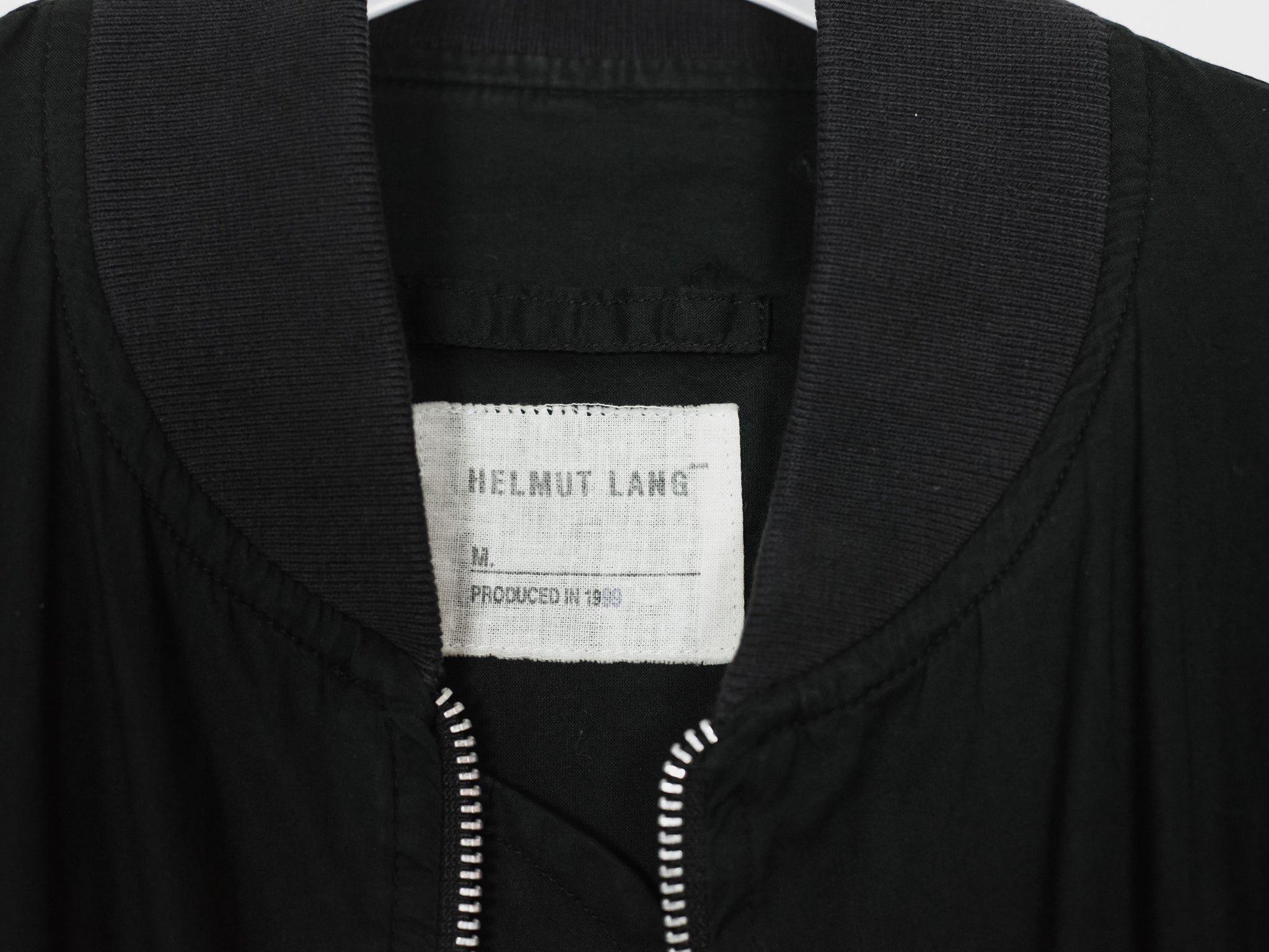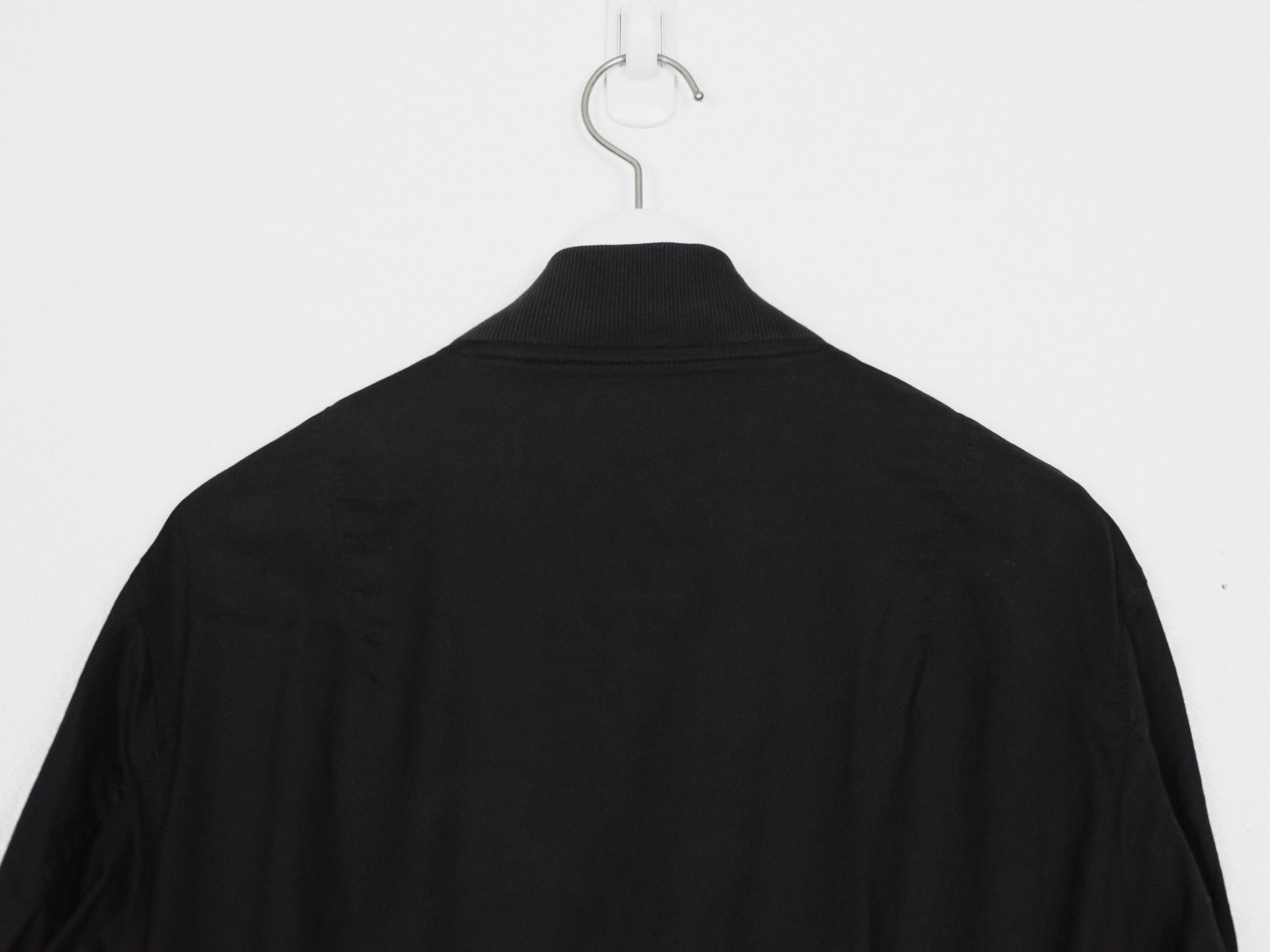 The ultimate classic MA-1 bomber, the standard of what every other should be modeled after. The jacket is a perfect oversized fit composed of a comfortably light cotton, containing every necessary detail; no more no less. The perfectly shaped windflap, pocket flaps, tight-knit ribbing, and spacious interior pockets show off the mastery of Helmut Lang's tailoring and ethos in his minimalistic military adaptations.