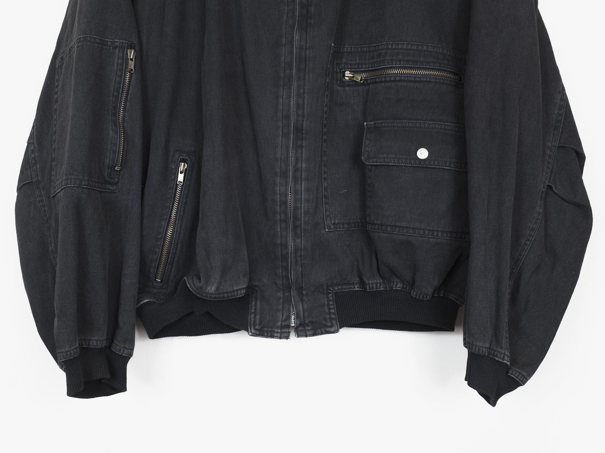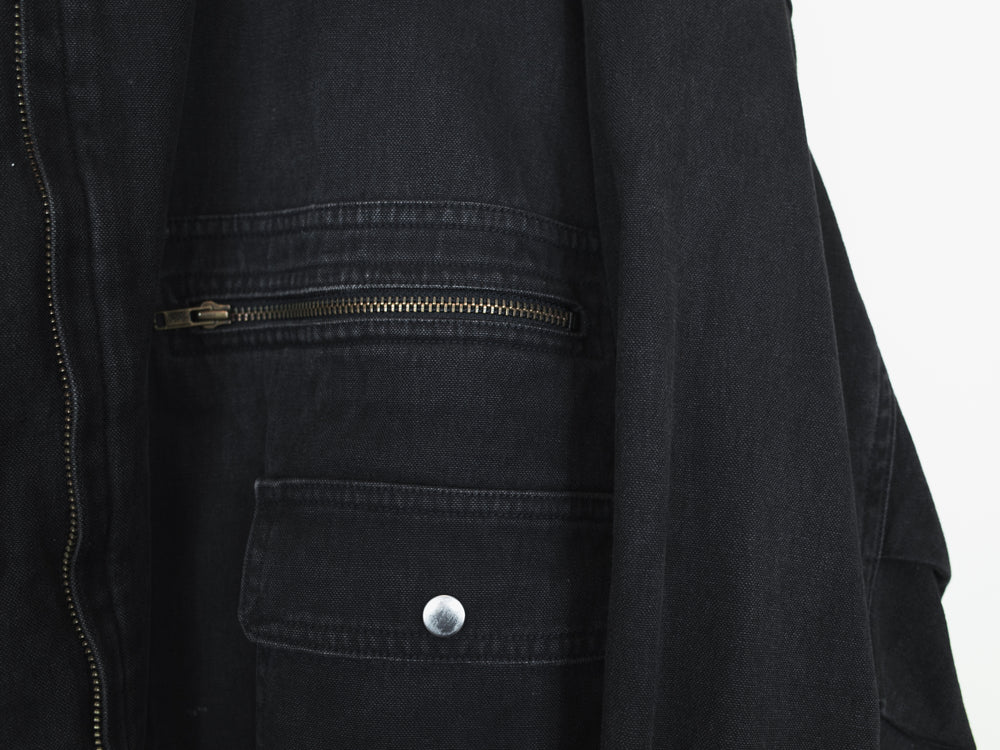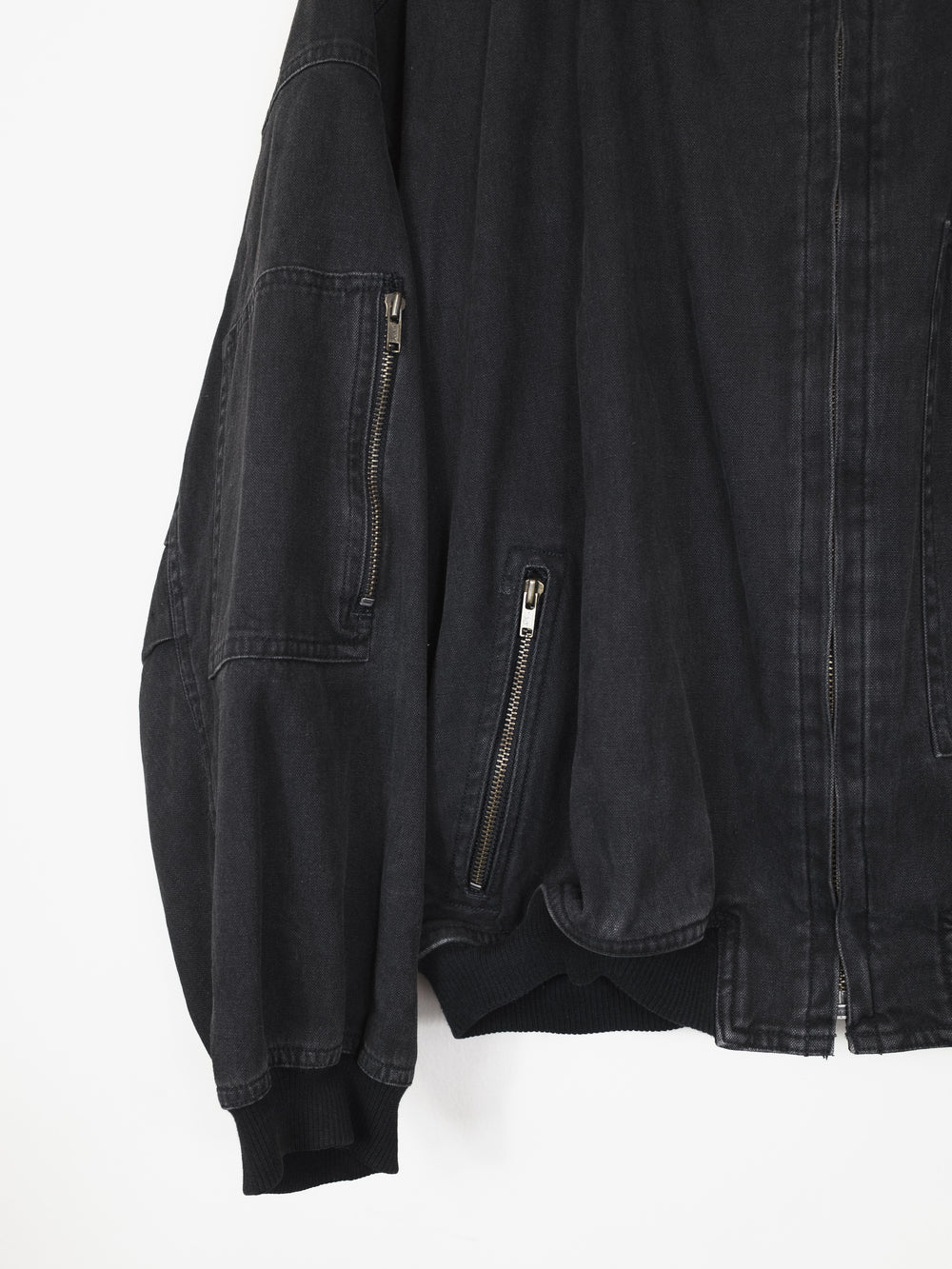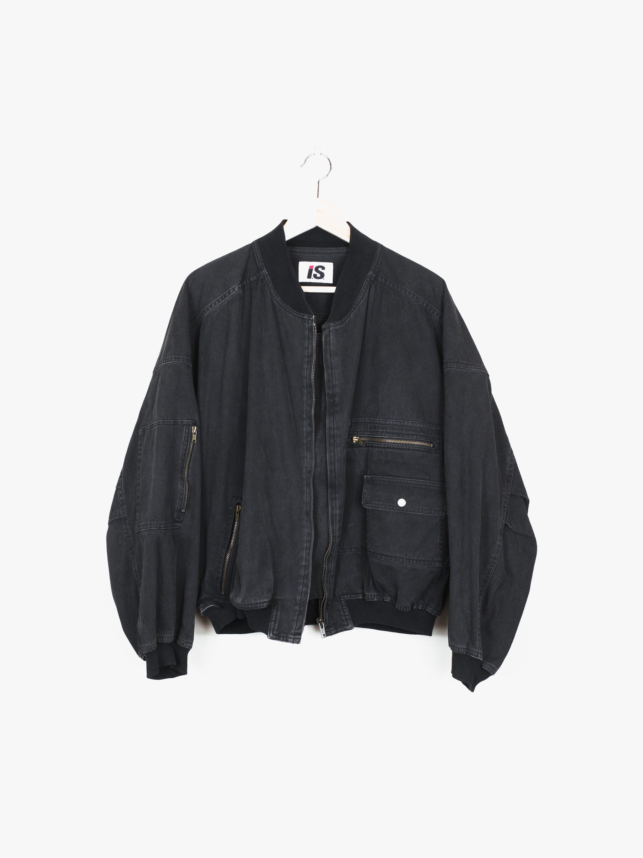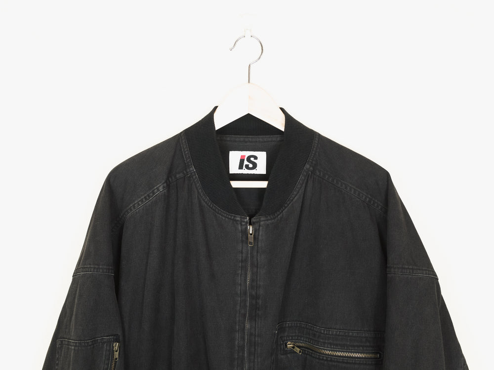 The legendary 1980's Issey Sport bomber designed by Tsumori Chisato in black aged cotton. Amazing silhouette with all the MA-1 details from the wind flap to the sleeve pocket, plus front pockets.