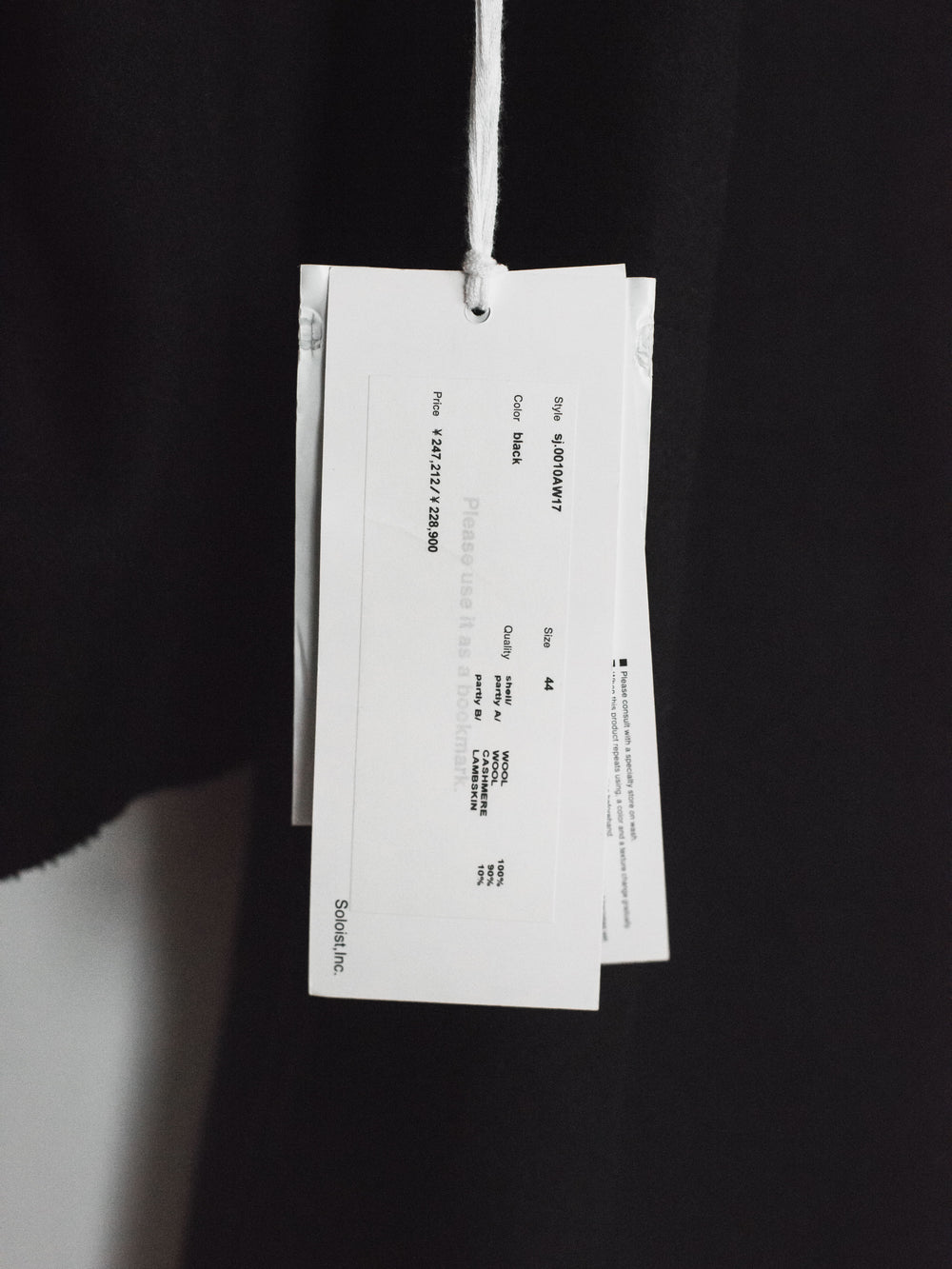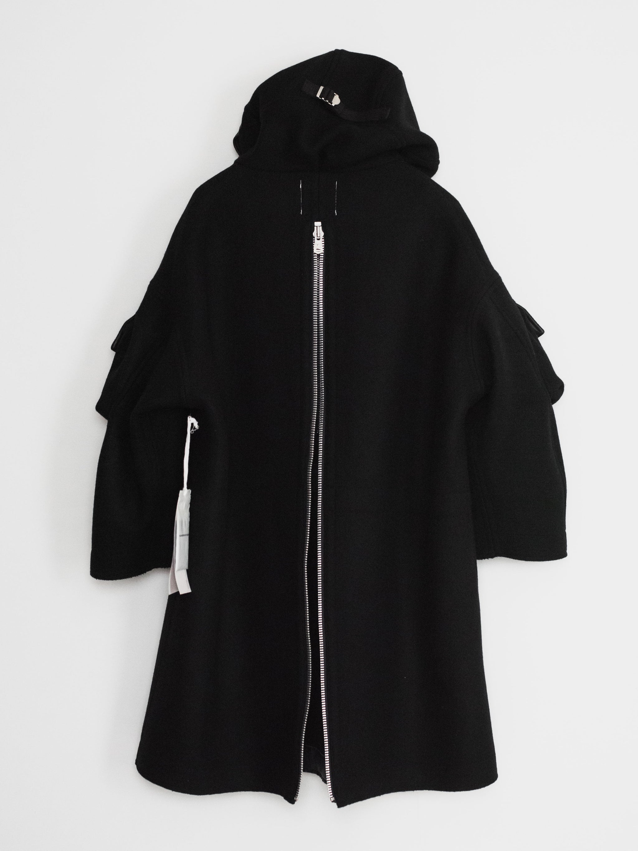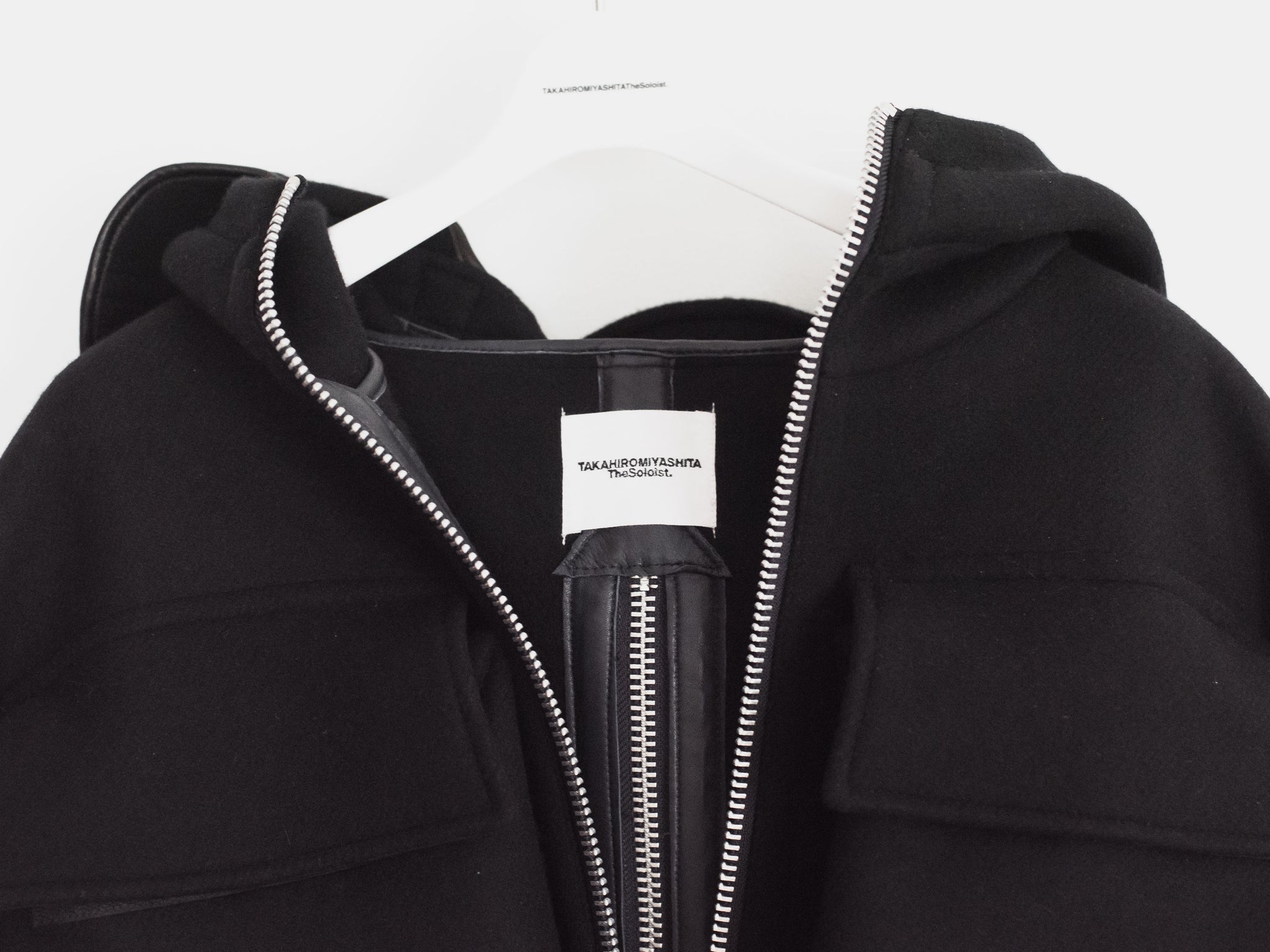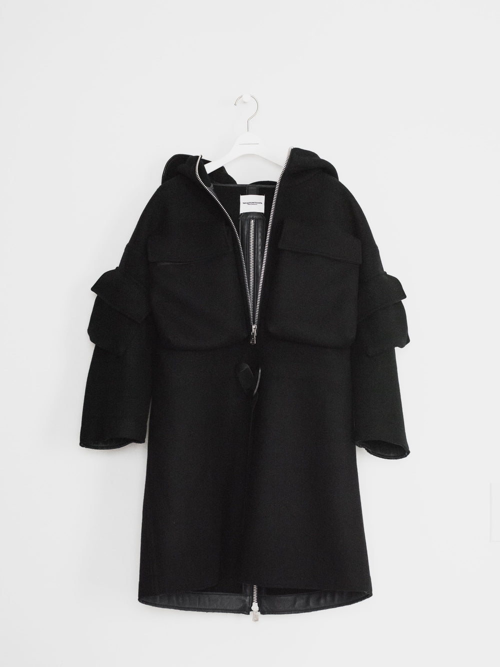 One of the coolest silhouettes the Soloist has released. Insane construction from a heavy, structured wool and finished throughout with lamb leather piping from the the prominent mask to the zipper lining. Large exaggerated pockets on the sleeves and bodies accentuate the aggressive silhouette further. Features adjustable waist cinch and prominent back zip. Quite versatile with its adjustability and oversized fit.