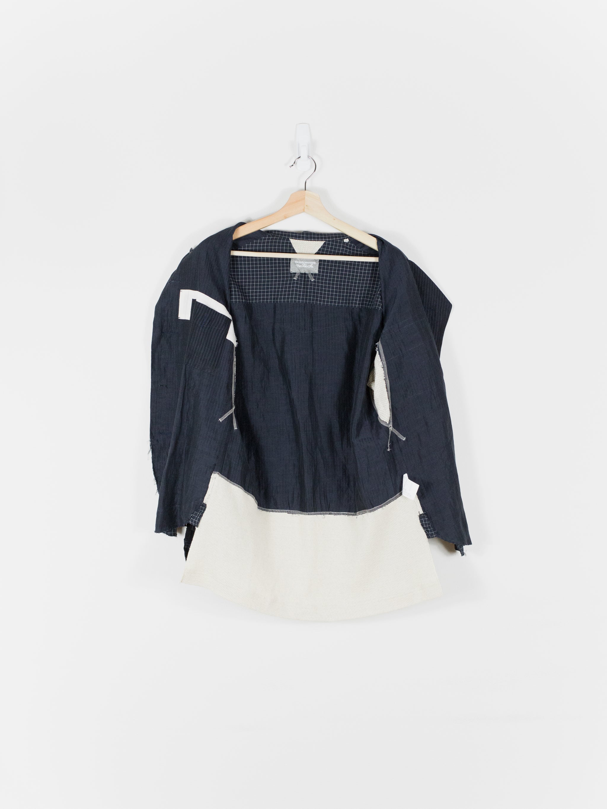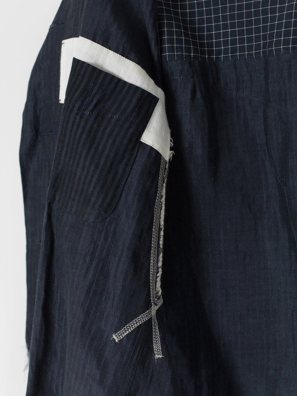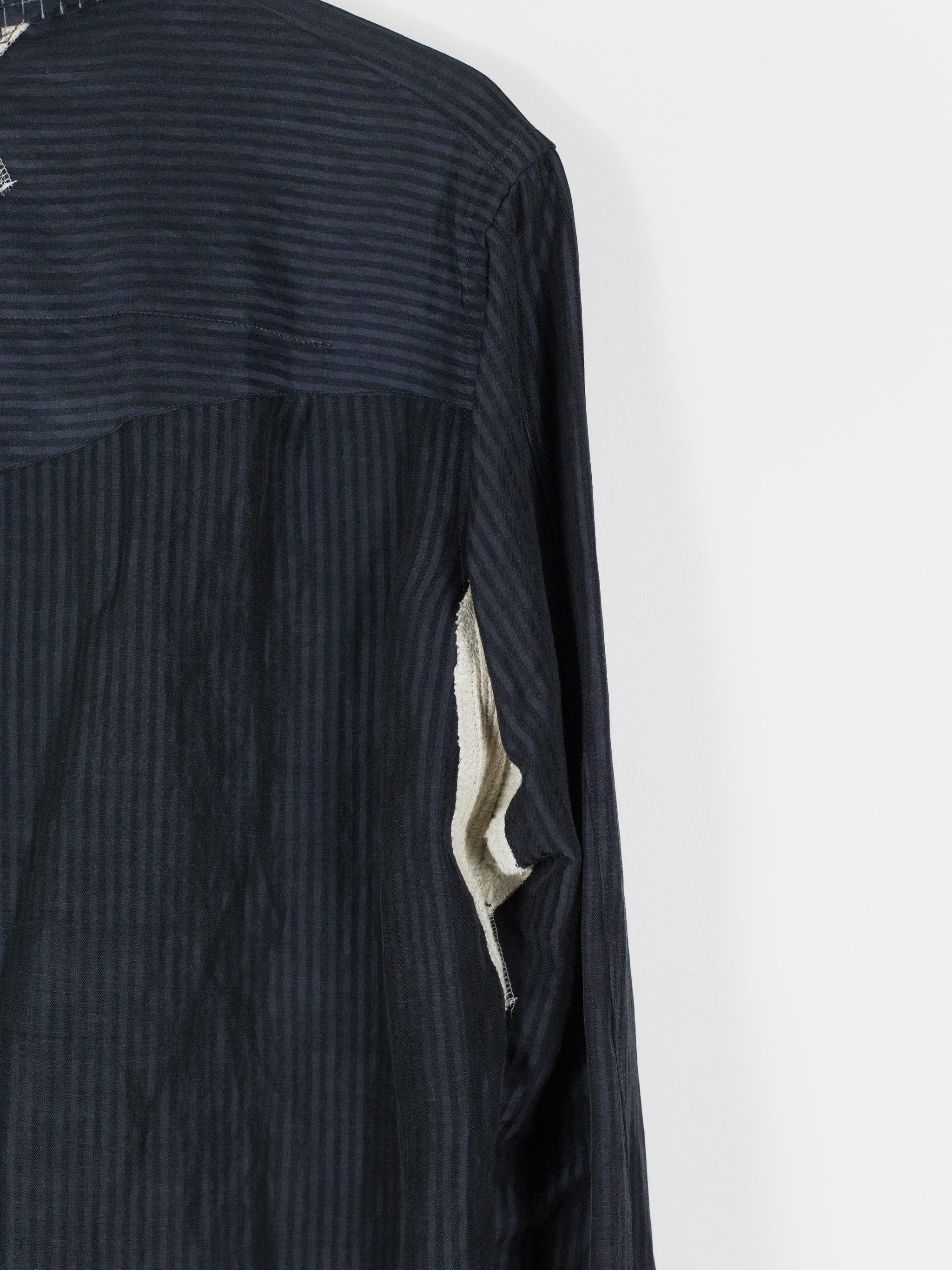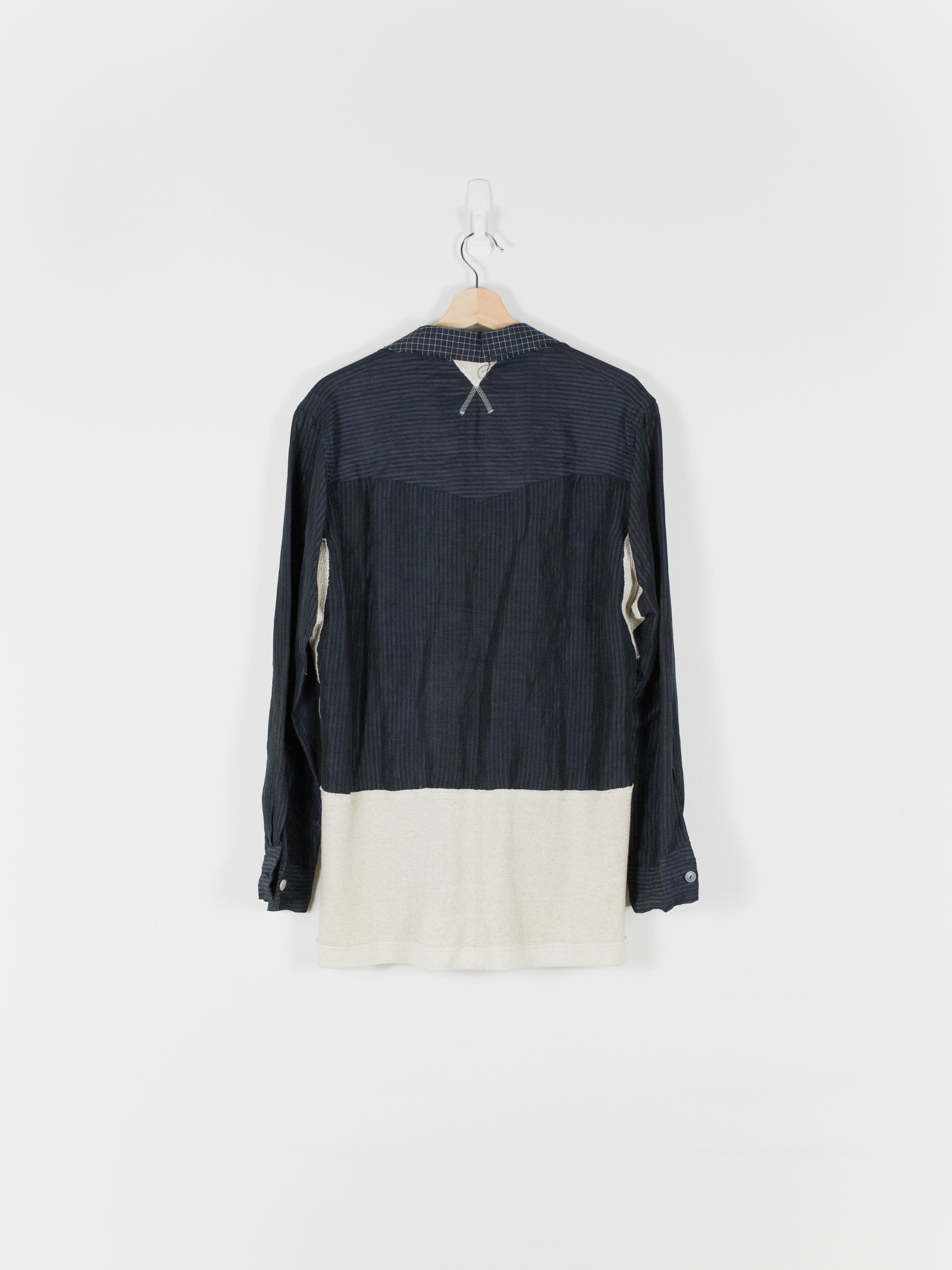 An early piece from Takahiro Miyashita's current project, the soloist. This is the renowned cowboy shirt, a piece that encapsulates a lot of the design ethos of this contemporary line--raw edges, intricate construction (with a double placket), contrast waffle paneling for comfort and mobility, mismatched buttons, and a well-travelled stylistic sensibility found in the color and pattern choice. This shirt is the perfect spring/summer toss on and go piece.