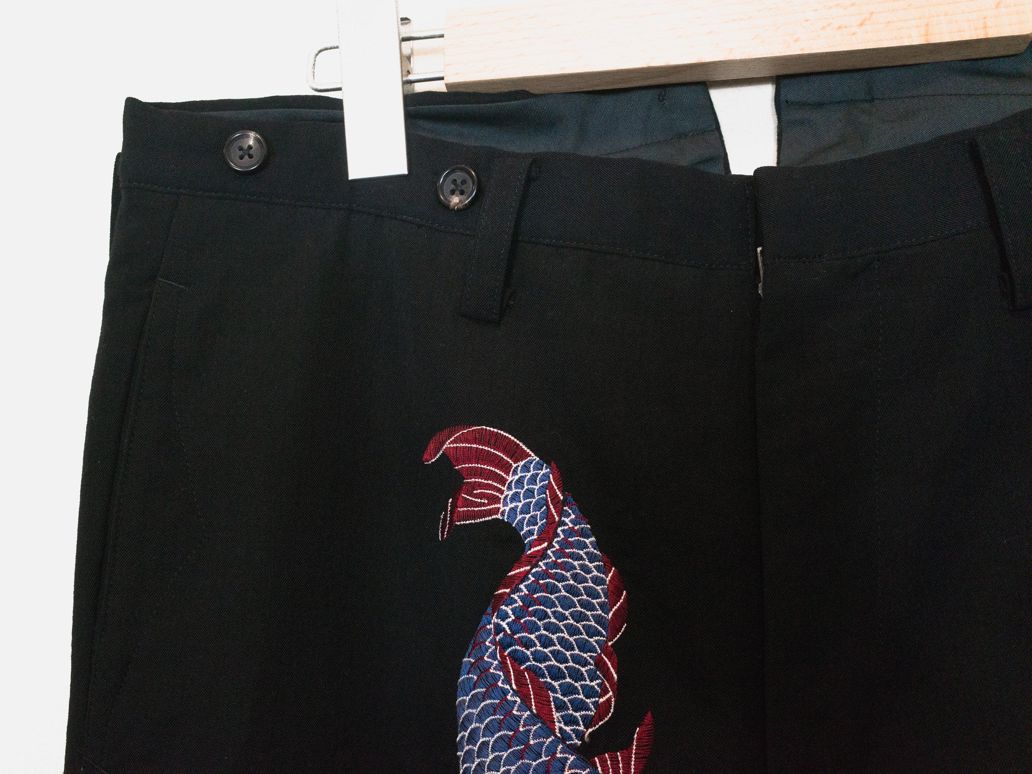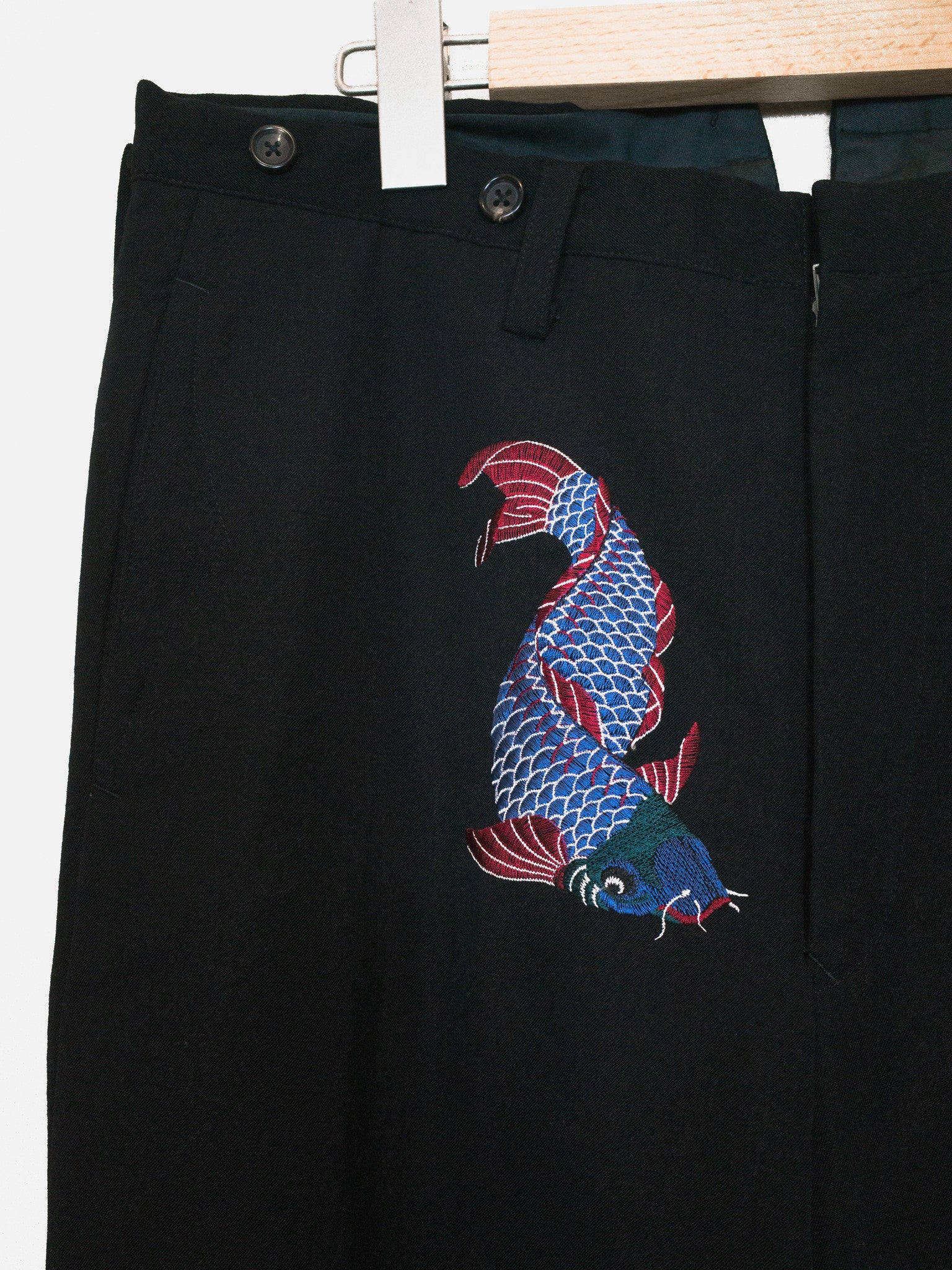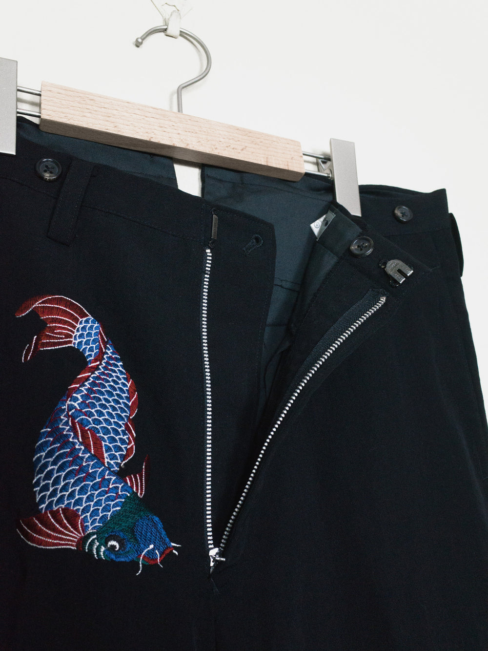 Yohji Yamamoto Pour Homme Fish Embroidery Wool Gabardine Trousers