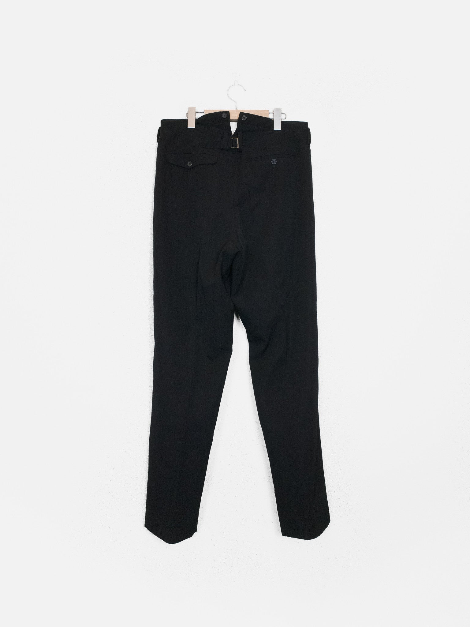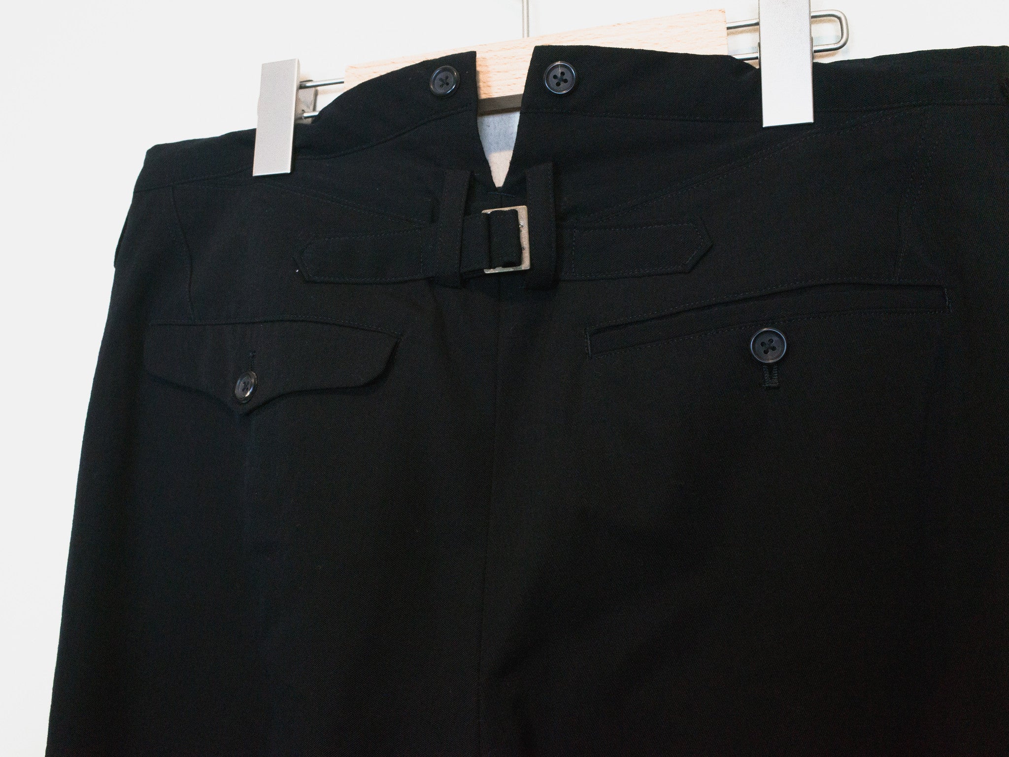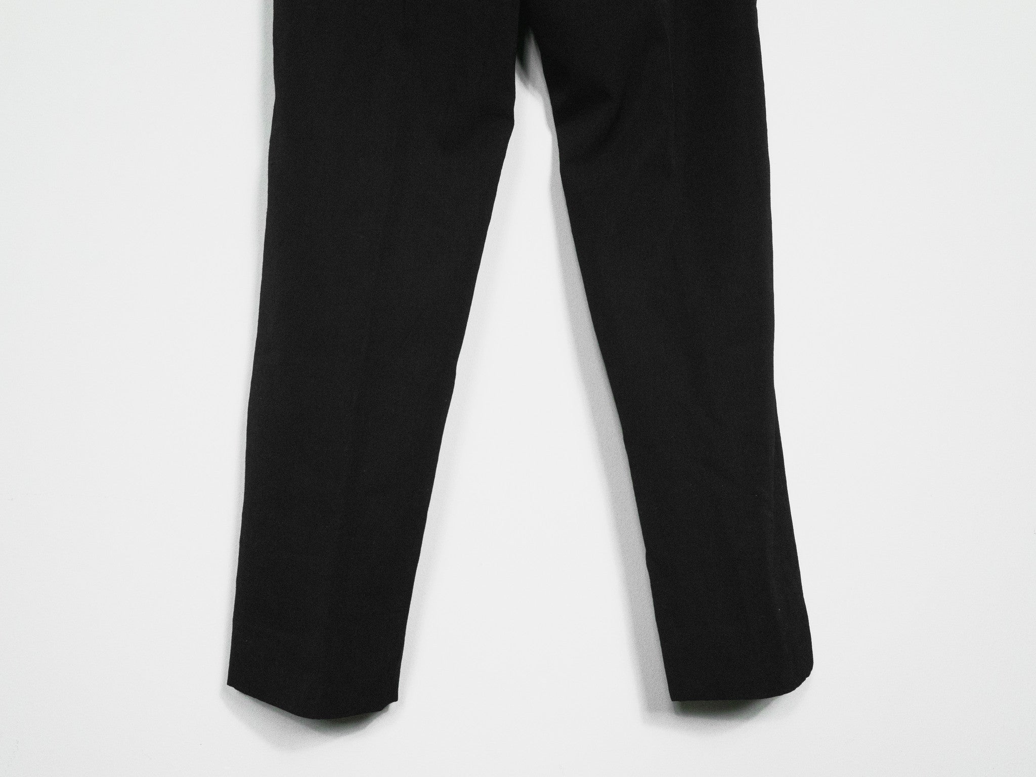 This pair of wool trousers by Yohji Yamamoto is cut with a refined volume - pleated for a roomier upper block with a subtle crease to give the lower leg a sharper shape. Of course, Yohji's signature wool gabardine gives these pants a beautiful drape and the playful embroidery along the hip is a visual highlight that can give an otherwise serious outfit a whimsical edge.