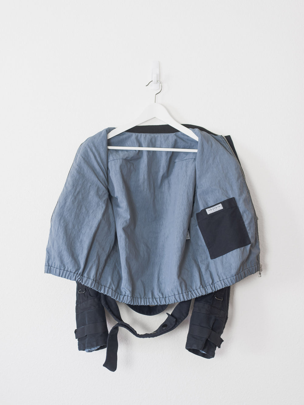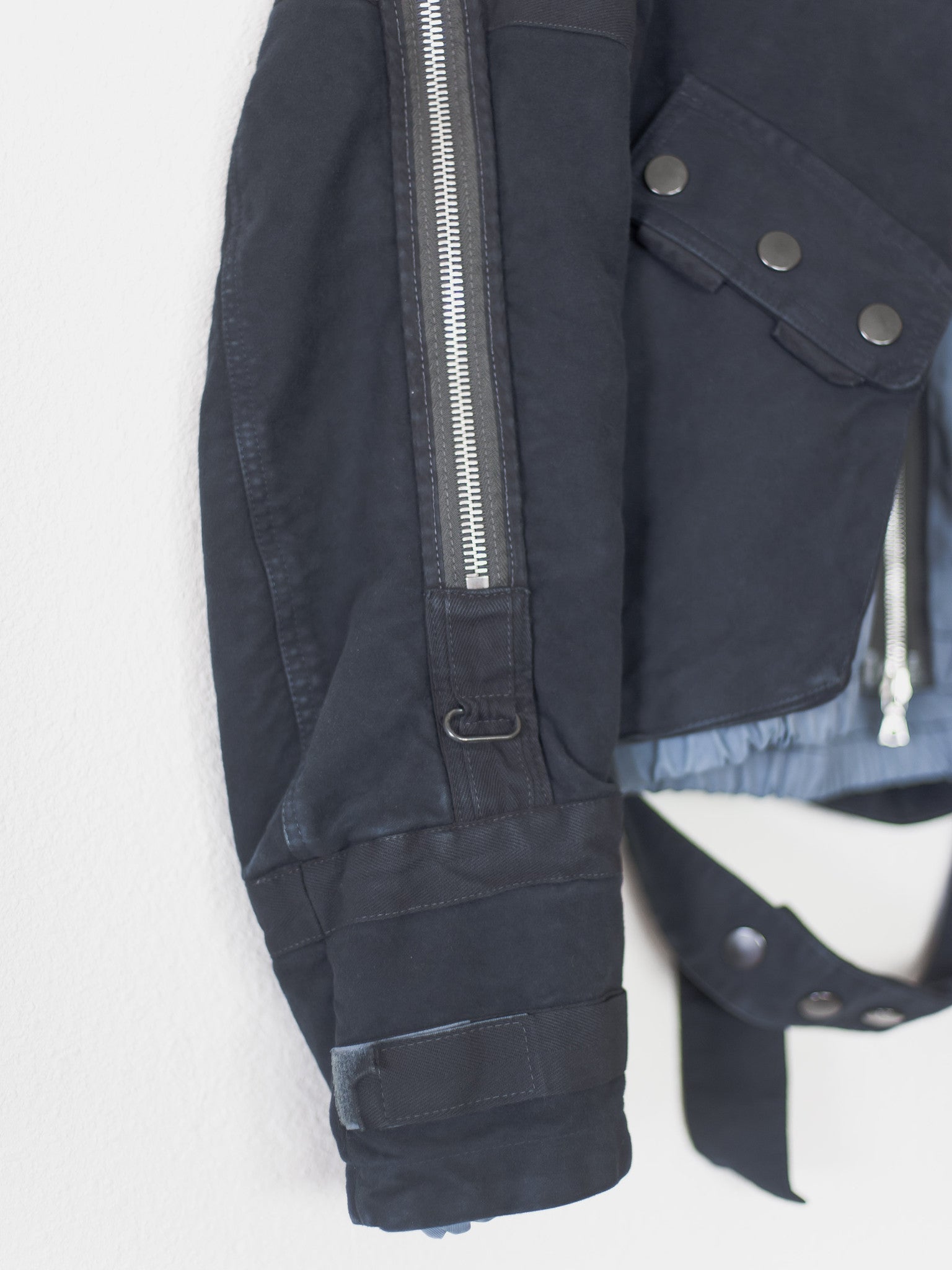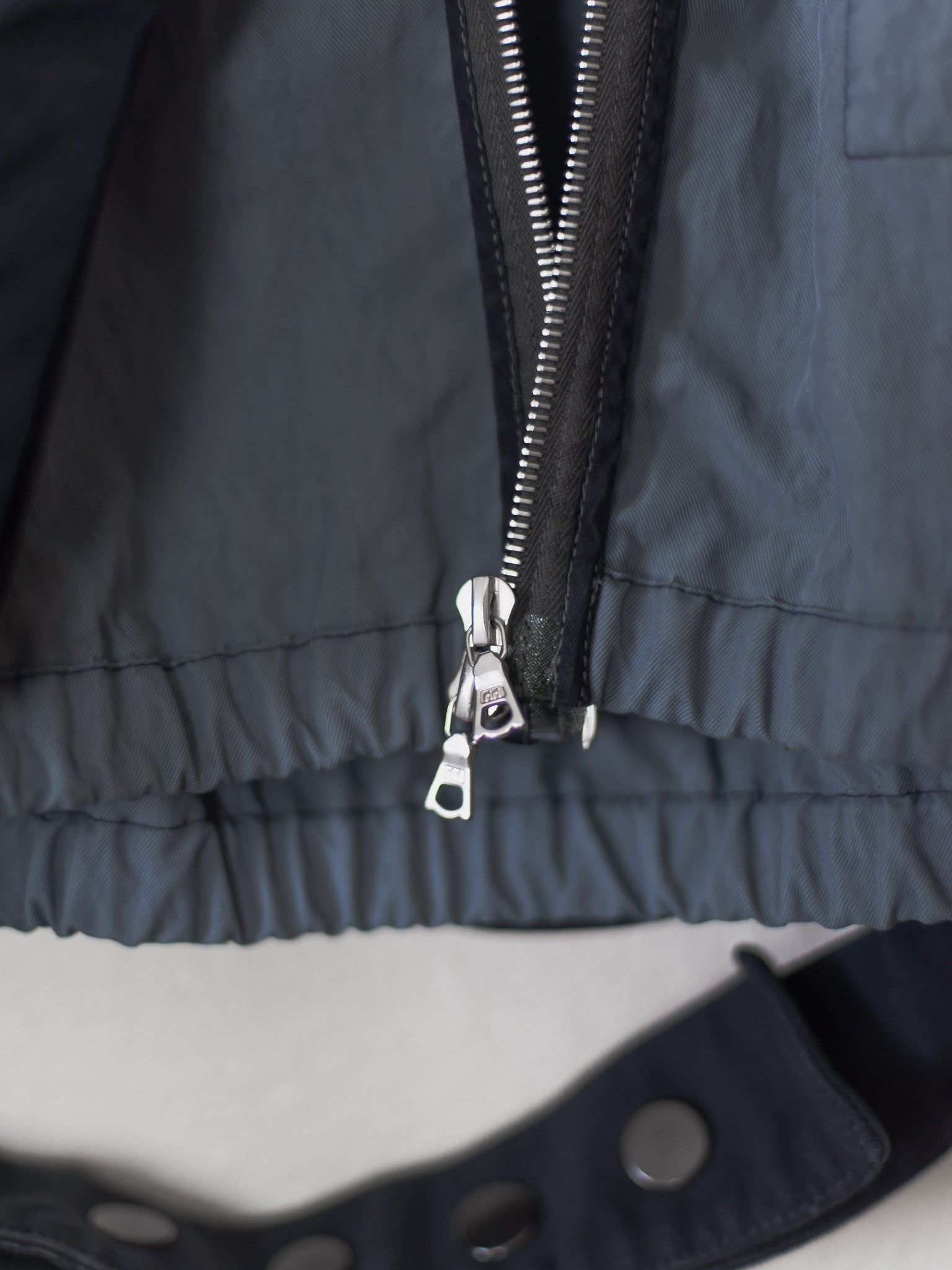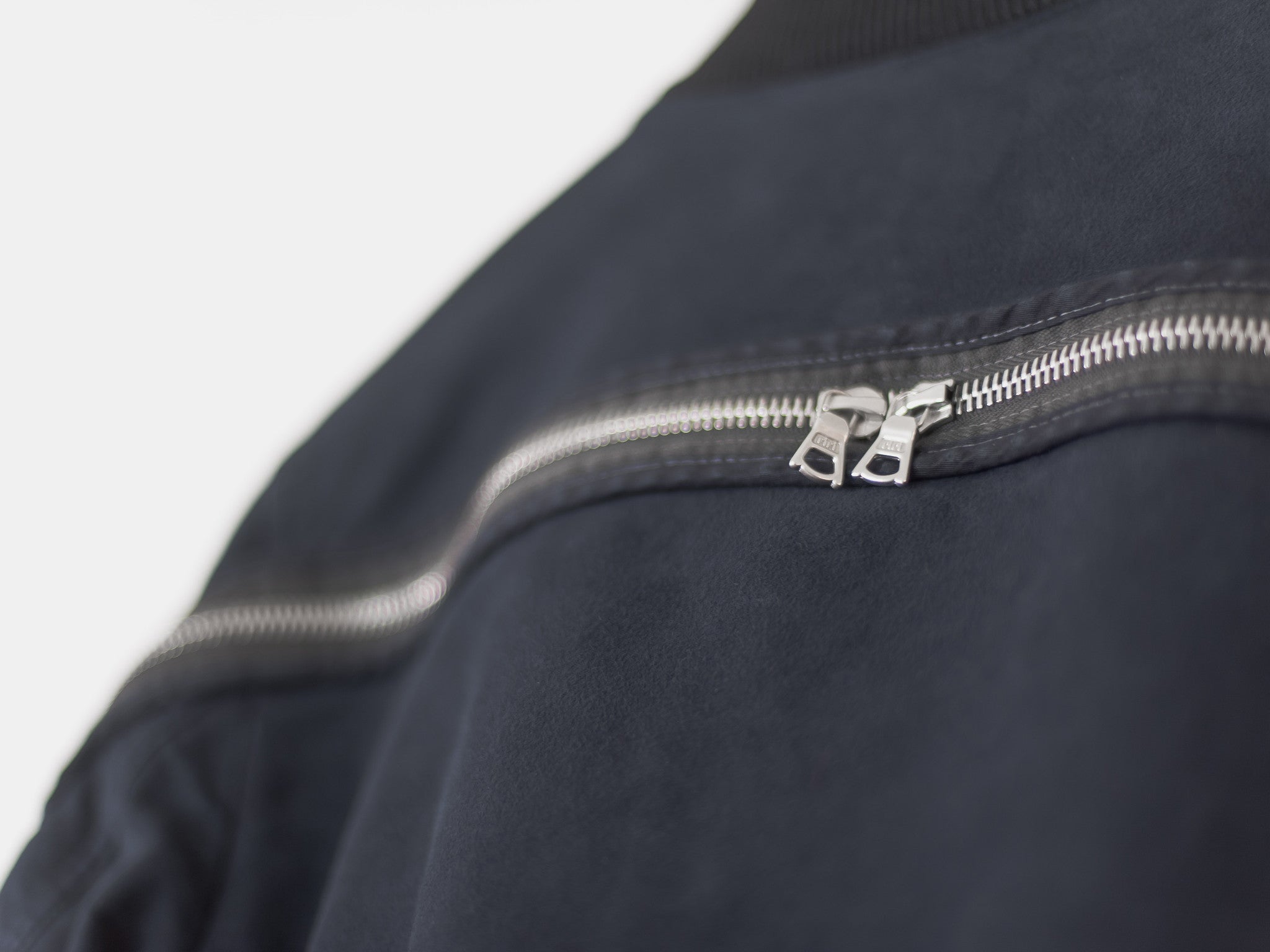 The coolest bomber you can buy and way more details than the one A$AP wore. Very hefty and intricate construction with a dark navy moleskin cotton outer and extremely smooth Riri zips all around. Other details include metal snaps and loops, canvas strap detailing, contrast lining, internal chest pocket, and double main & back zips. 10/10 condition new with tags. Retailed for $1600.