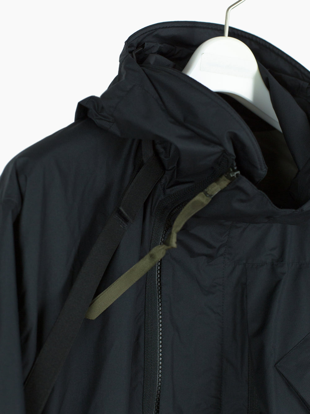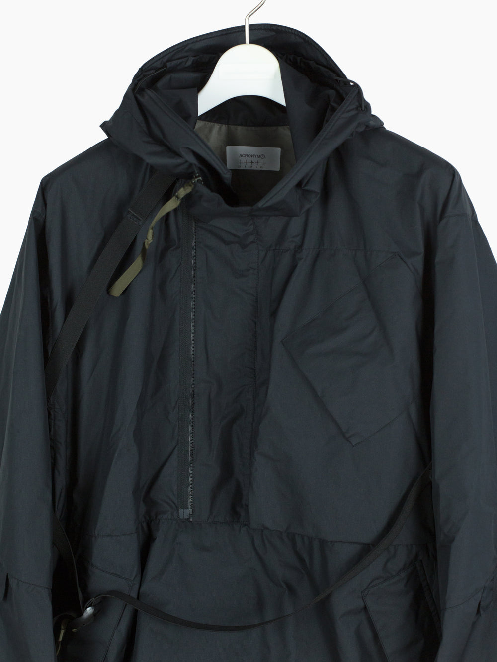 Finished with offset + openable (for even larger entry hole) half front closure with adjacent tensionzip gusseted napoleon pocket array. Soft hood adjust dials in fit with shockcord and velcro, with curved front keeping things elegant as both high collar and fully donned hood. Signature Acronym sleeve articulation is a beauty to move in and a beauty to inspect. Center kangaroo pocket is accessible via detached-bottom flap entries with slight bi-lateral backwards-facing storage.