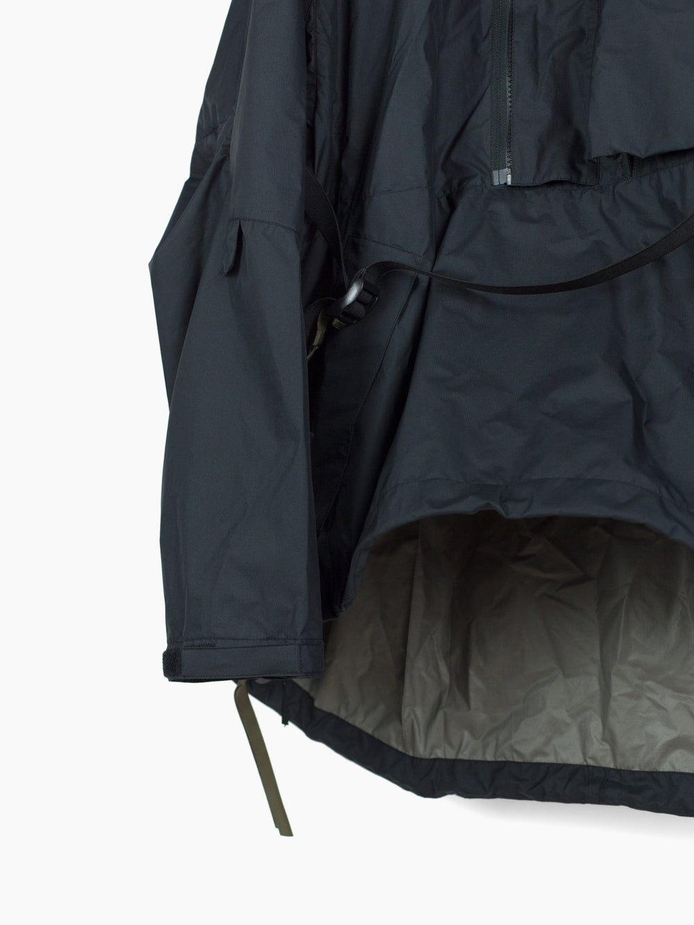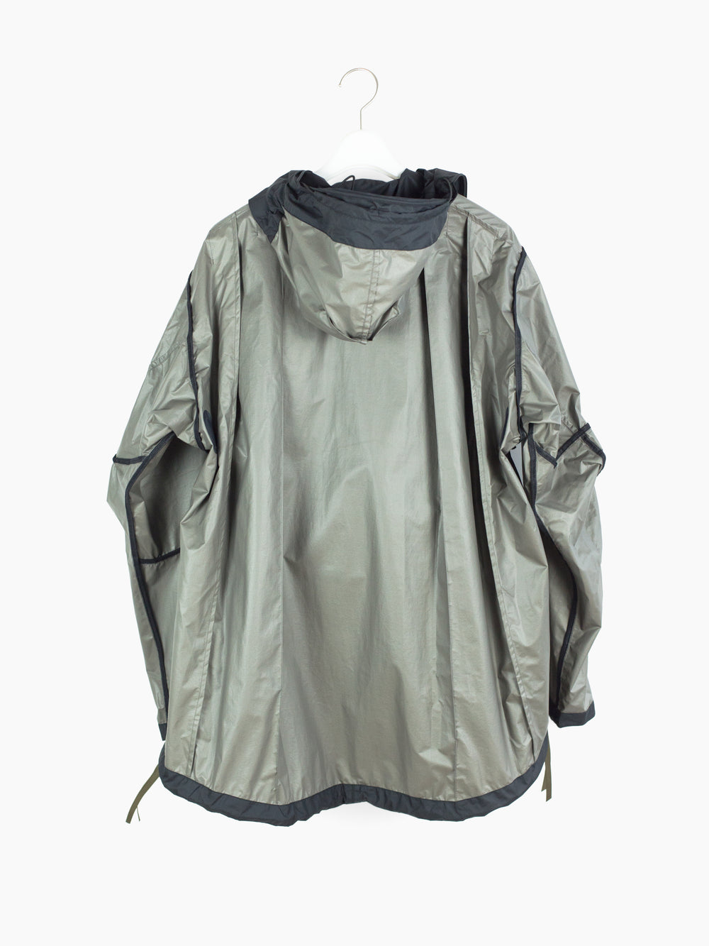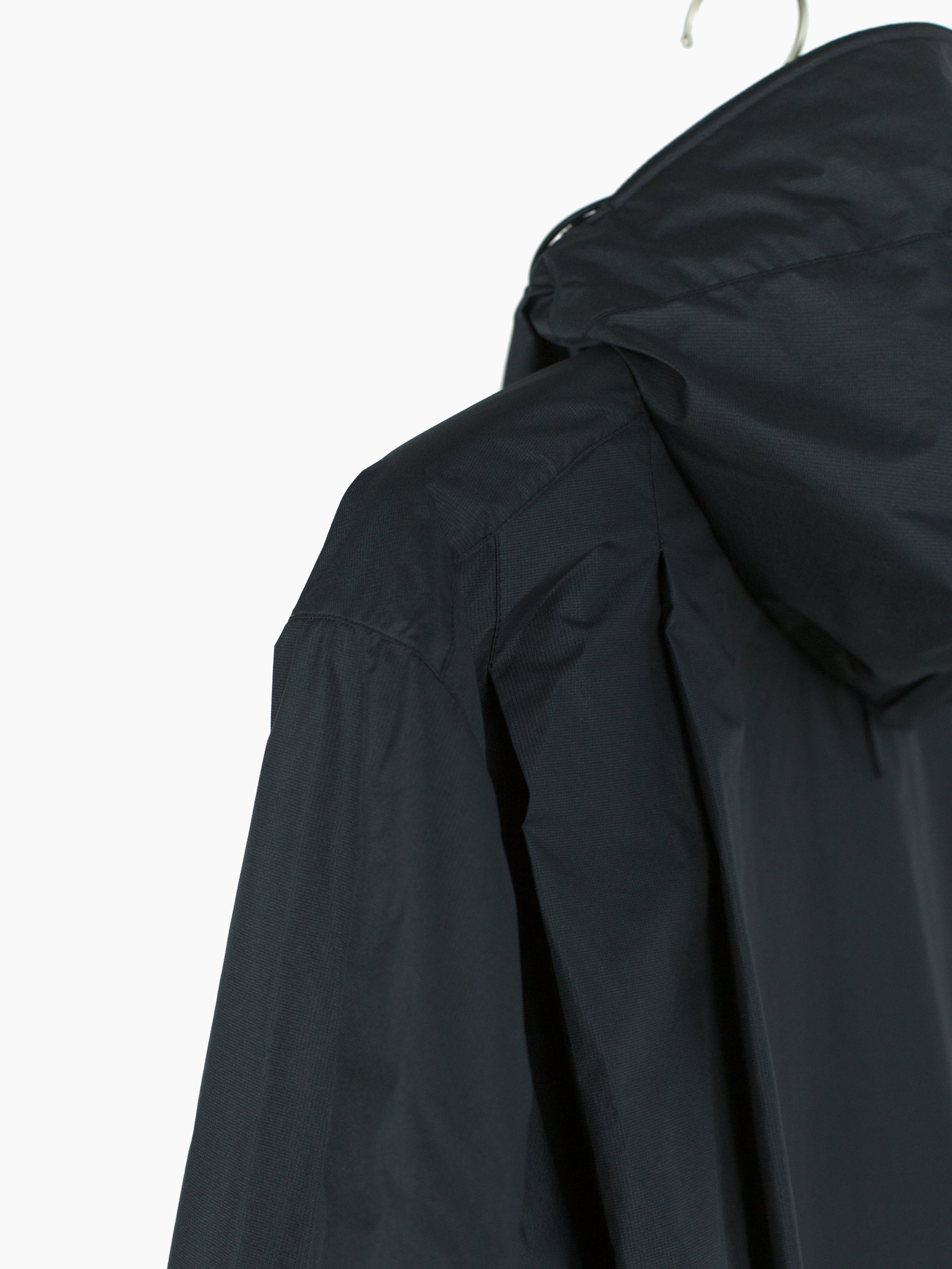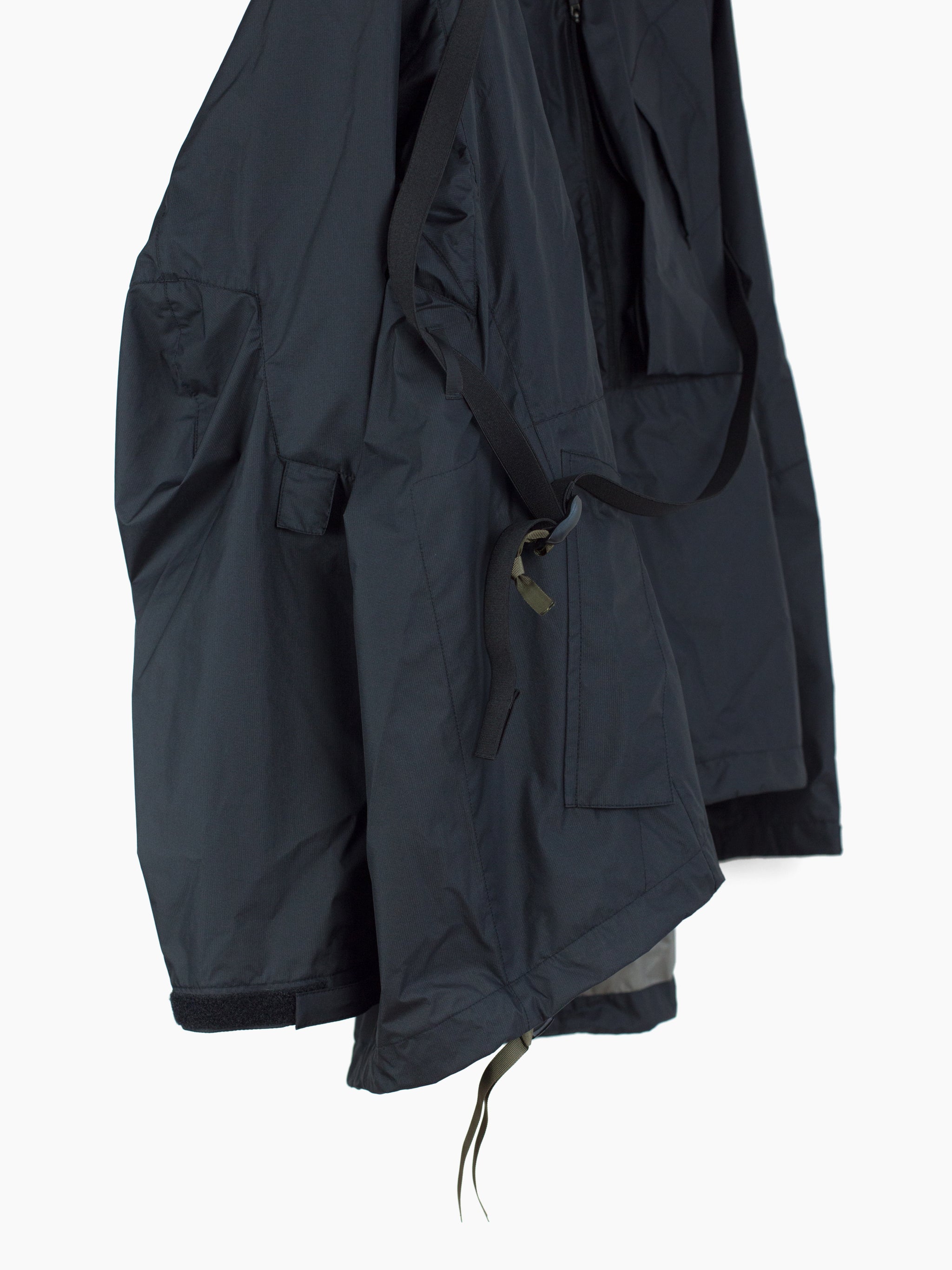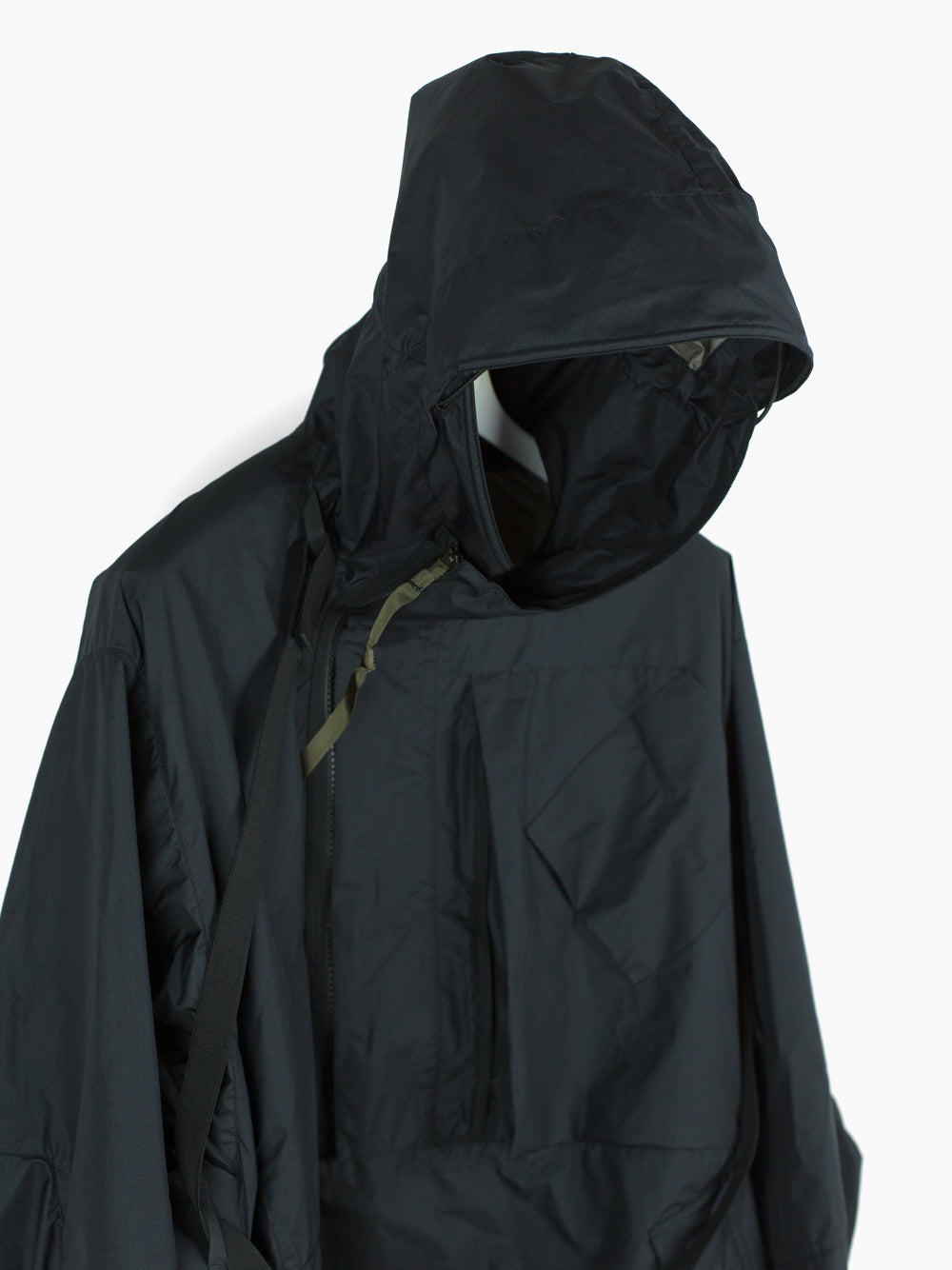 Balenciaga Cocoon back meets early Rick Owens sculpted 3D hem meets Acronym technicality. High fashion sculptural becomes urban functional as a quadruple-pleated back adopts the role of an expandable backpack cover. Cinched hem dials in coverage...or leave it loose to create a dynamic, fin-like silhouette. New Acronym use cases drive new Acronym feature evolution, with a separate set of grosgrain attachment loops allowing for frontal jacketsling mounting.