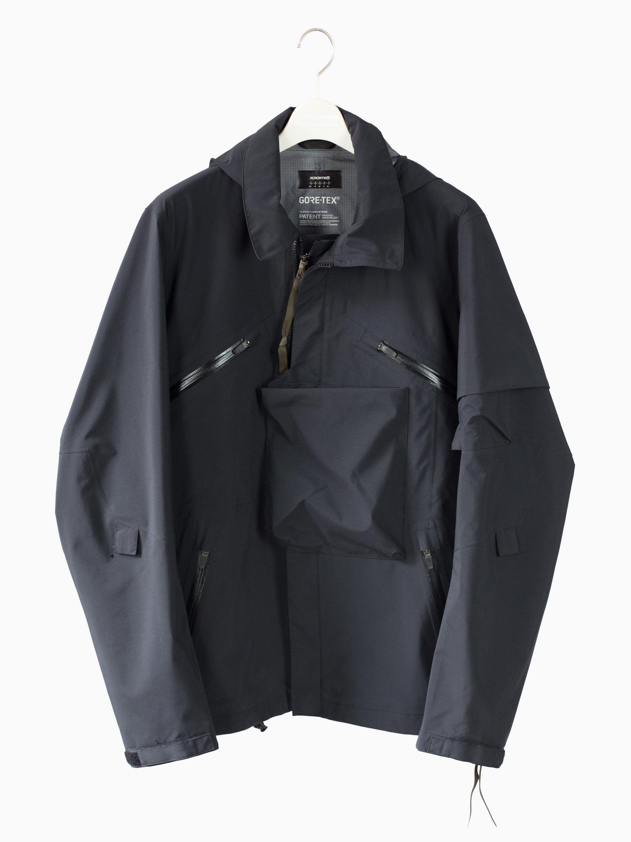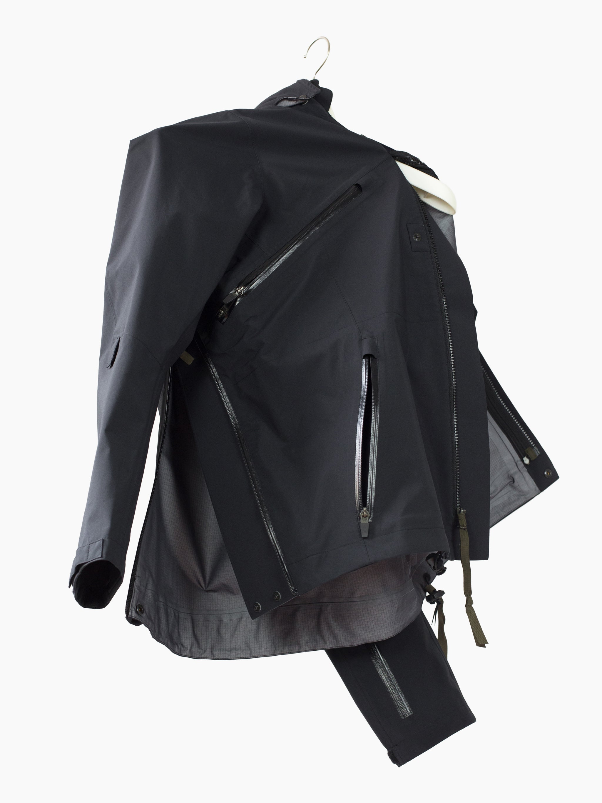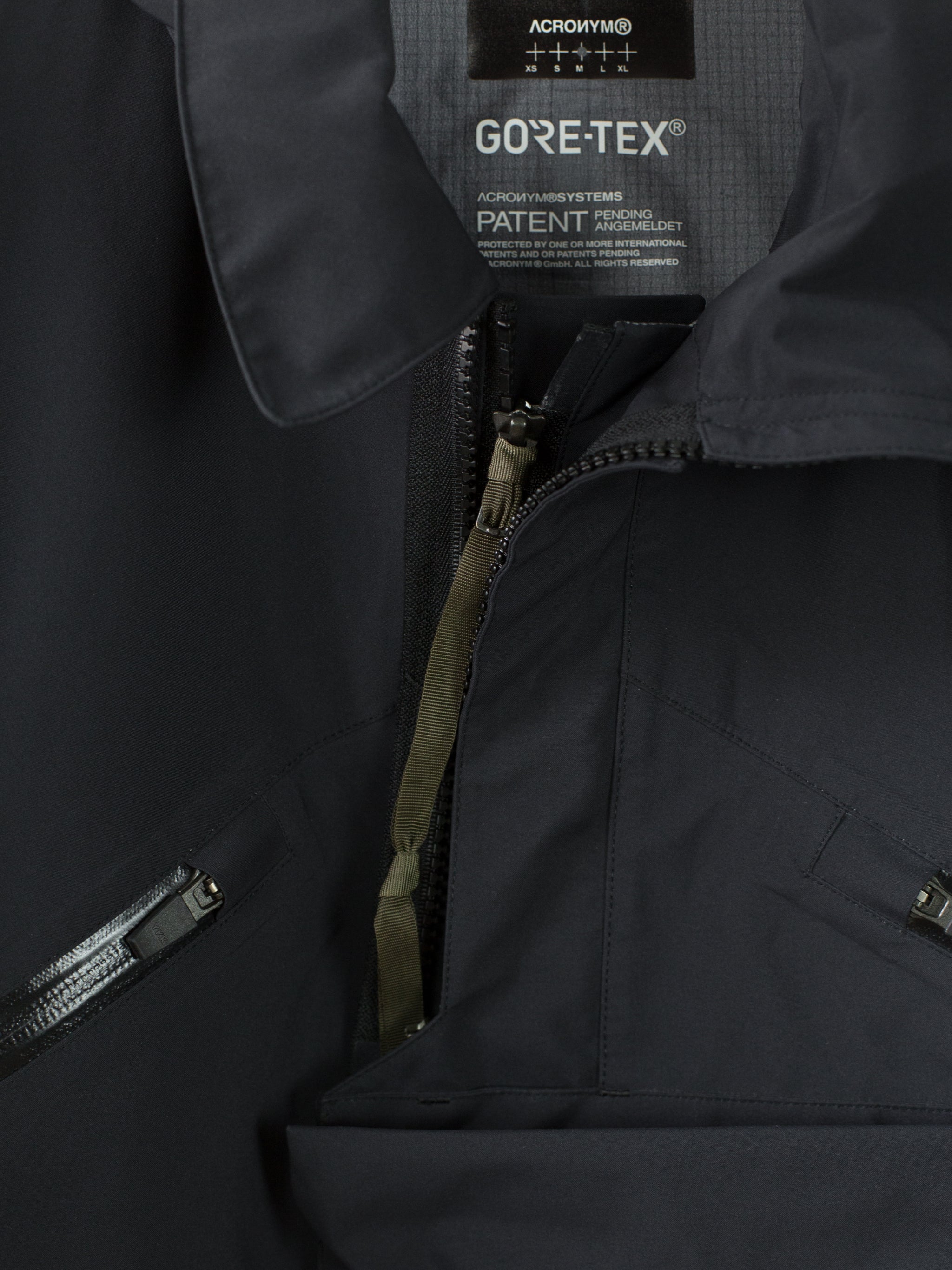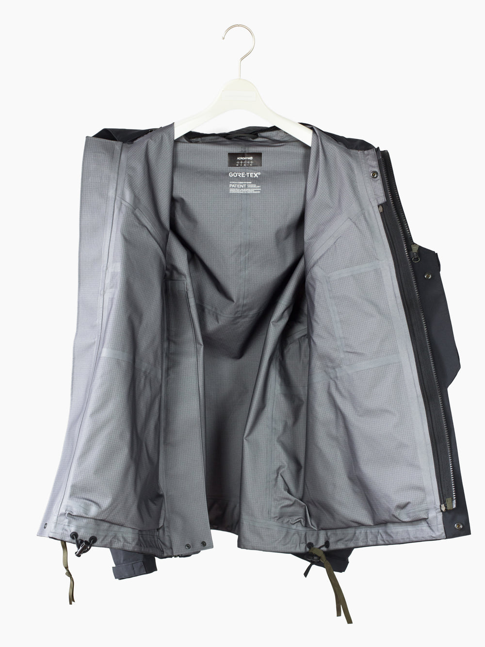 Flagship Acronym jacket that has stayed with the brand since day 1. The J1A-GT exemplifies the brand's ethos in crafting garments that are not so much clothing as they are interfaces between the body and surrounding contemporary urban environment. Deriving from the military, performance sportswear, and martial arts worlds, materials and features coalesce to serve the city dweller in their daily life. The J1A acts as an extension of body, with features that are ergonomic and swiftly operable (gravity pockets, one-handed shockcord adjusts, and escape zip) and zero-resistance pattern-cutting expertise that lets the garment all but disappear in motion. The jacket acts as an extension of life as well, with storage options that range in size, access, and security (watertight chest zippered compartments that are asymmetrically segmented, dual-layered front chest flak pocket with both top and napoleon mezzanine entry, bilateral storage waist pockets and covert sleeve pocket) that the wearer can utilize to store the tools that their life necessitates. In essence, the J1A, and most Acronym jackets are operable systems to be learned and for the wearer to adapt to, that facilitate everyday life in an ever more chaotic world.