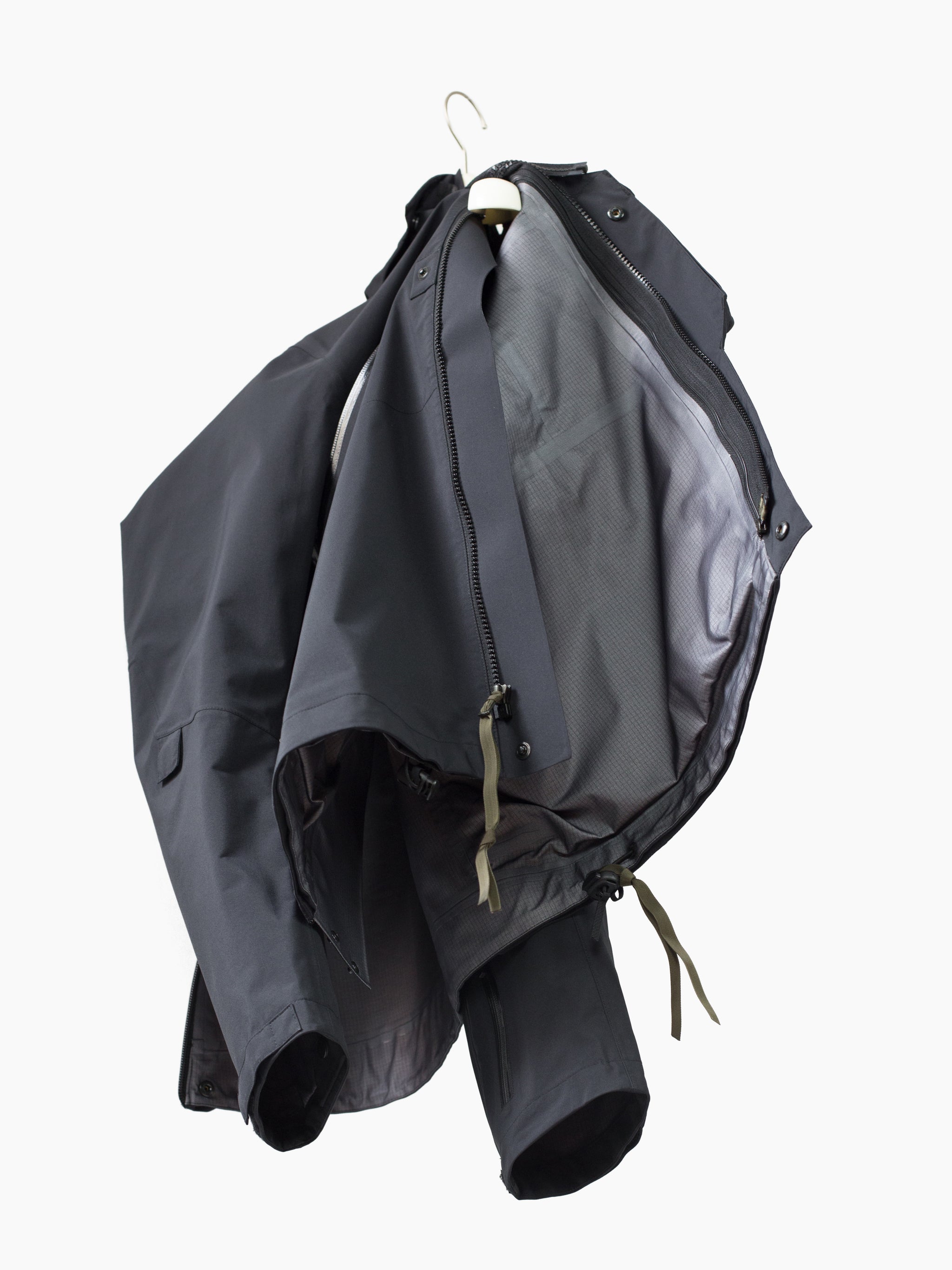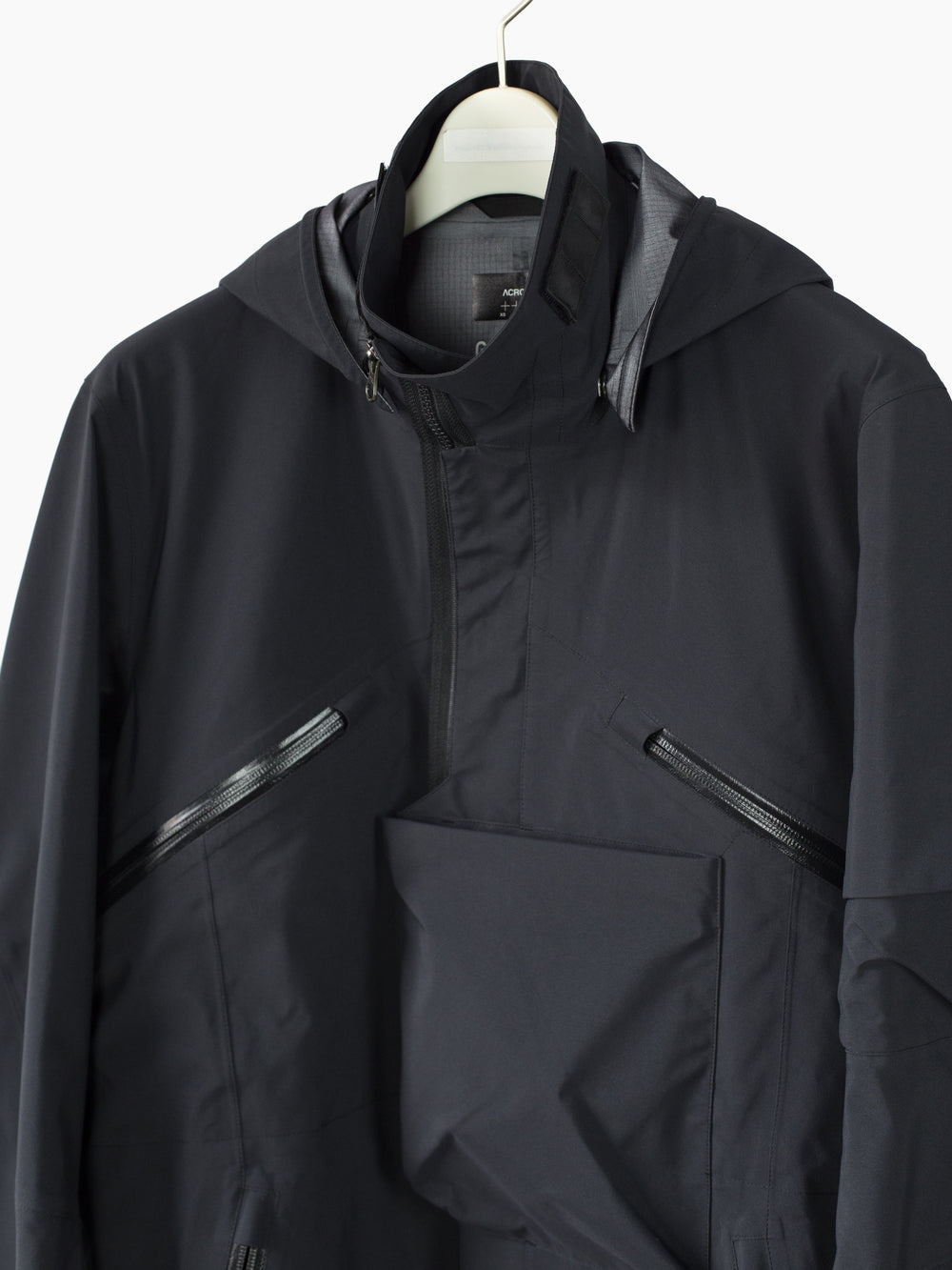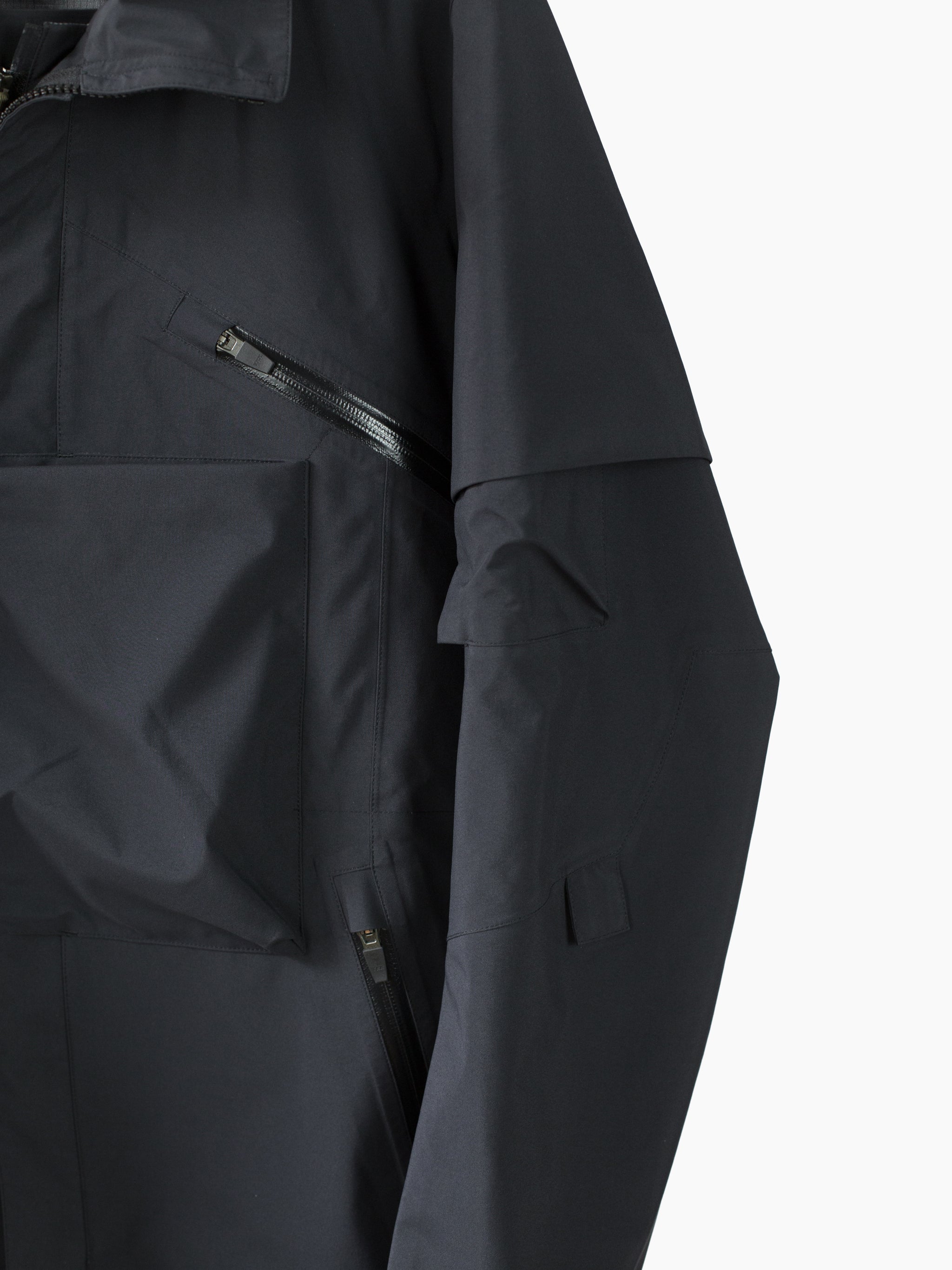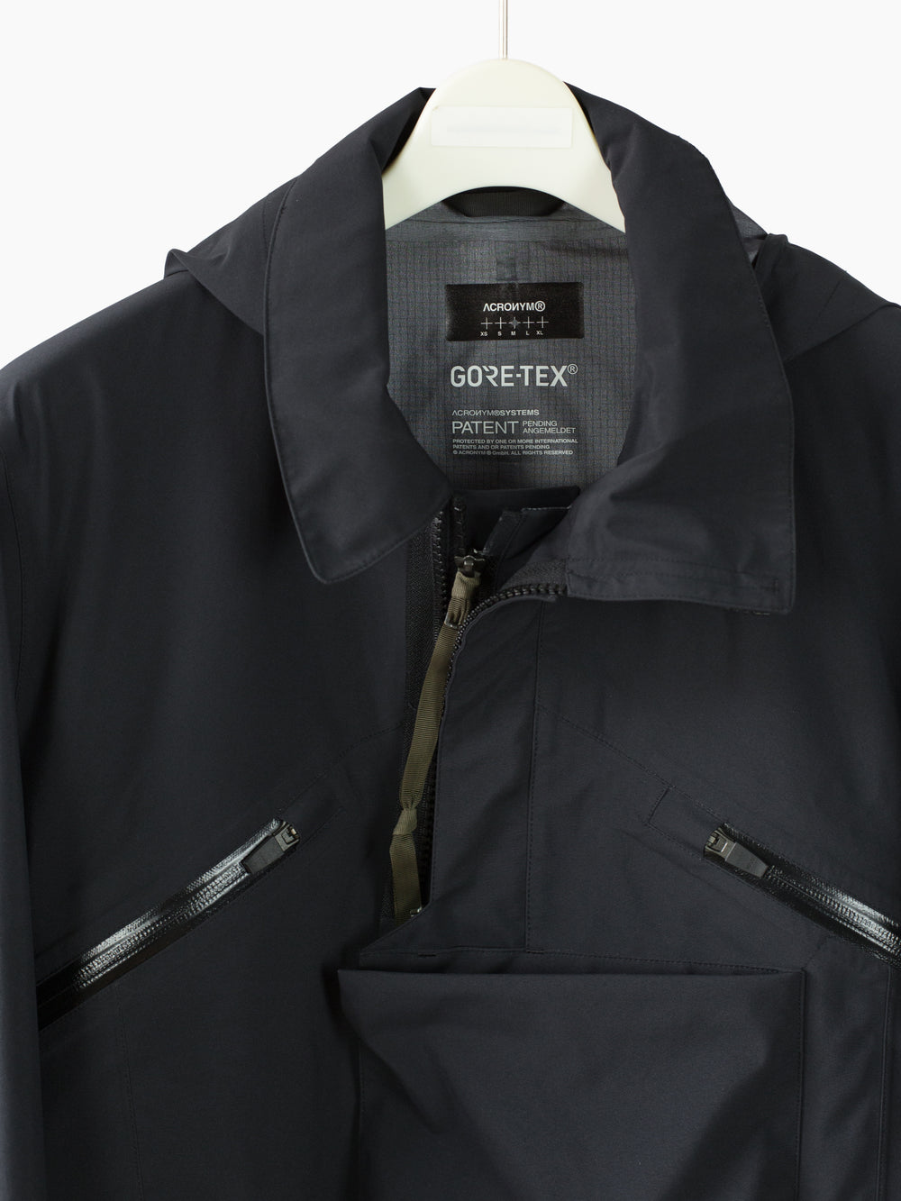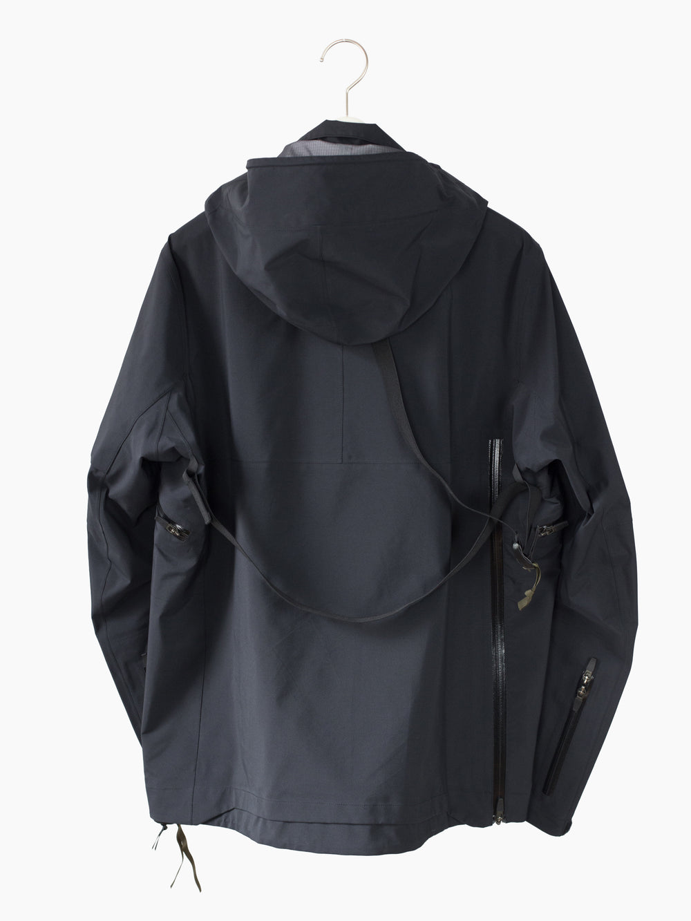 Flagship Acronym jacket that has stayed with the brand since day 1. The J1A-GT exemplifies the brand's ethos in crafting garments that are not so much clothing as they are interfaces between the body and surrounding contemporary urban environment. Deriving from the military, performance sportswear, and martial arts worlds, materials and features coalesce to serve the city dweller in their daily life. The J1A acts as an extension of body, with features that are ergonomic and swiftly operable (gravity pockets, one-handed shockcord adjusts, and escape zip) and zero-resistance pattern-cutting expertise that lets the garment all but disappear in motion. The jacket acts as an extension of life as well, with storage options that range in size, access, and security (watertight chest zippered compartments that are asymmetrically segmented, dual-layered front chest flak pocket with both top and napoleon mezzanine entry, bilateral storage waist pockets and covert sleeve pocket) that the wearer can utilize to store the tools that their life necessitates. In essence, the J1A, and most Acronym jackets are operable systems to be learned and for the wearer to adapt to, that facilitate everyday life in an ever more chaotic world.