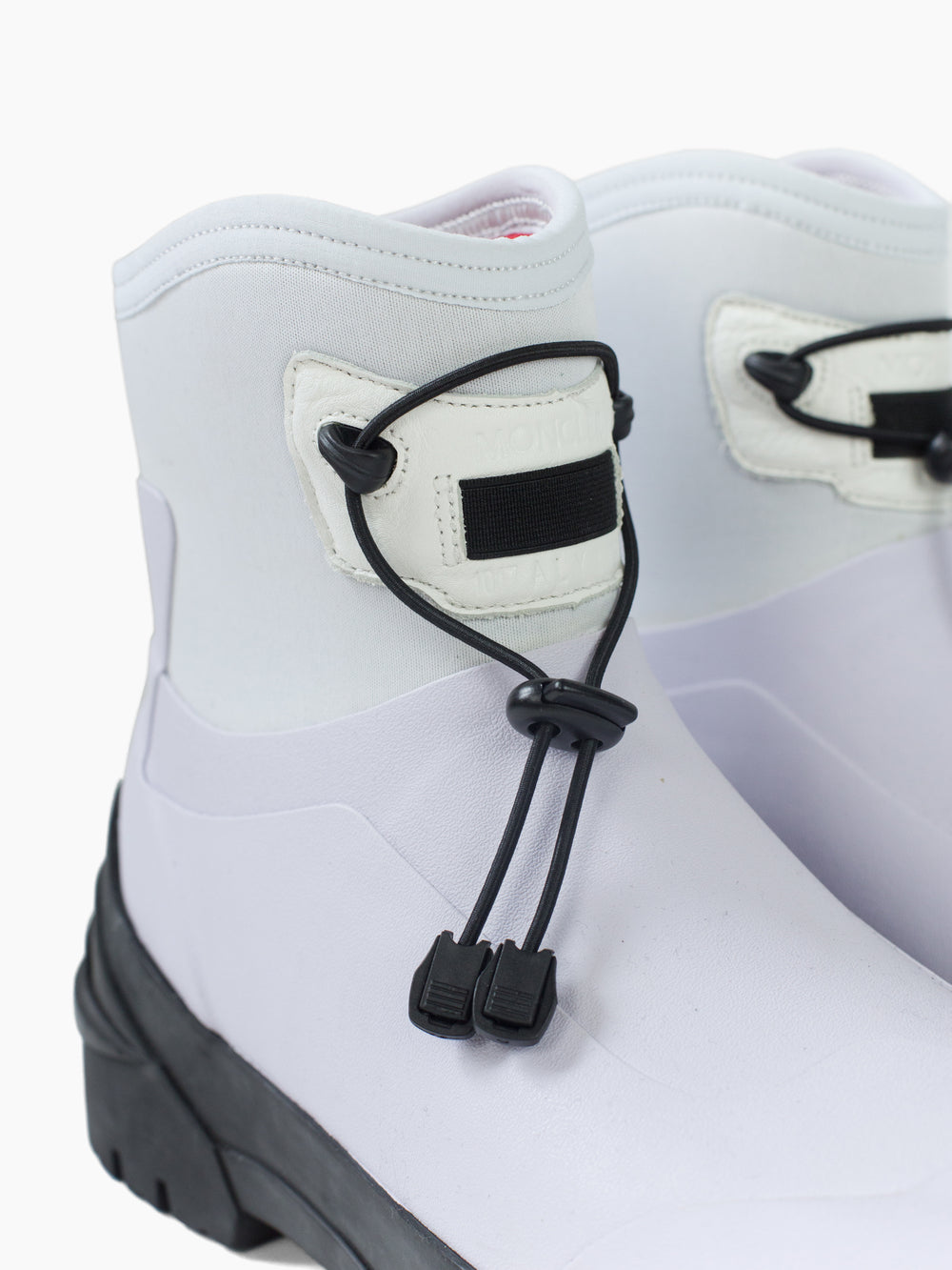 Finished with inner nylon webbing pull tab at back ankle collar. Alyx and Moncler collaboration branding throughout.