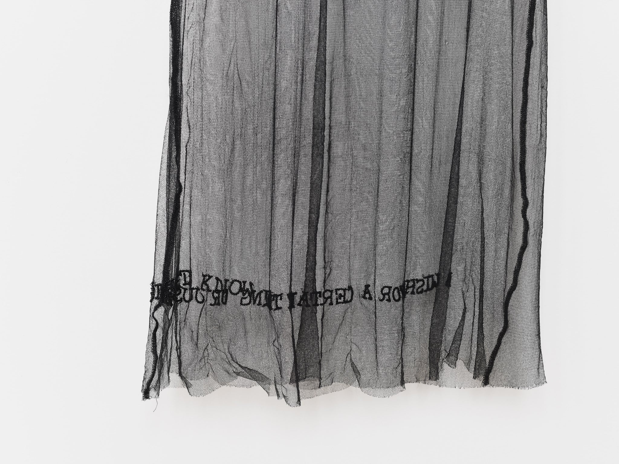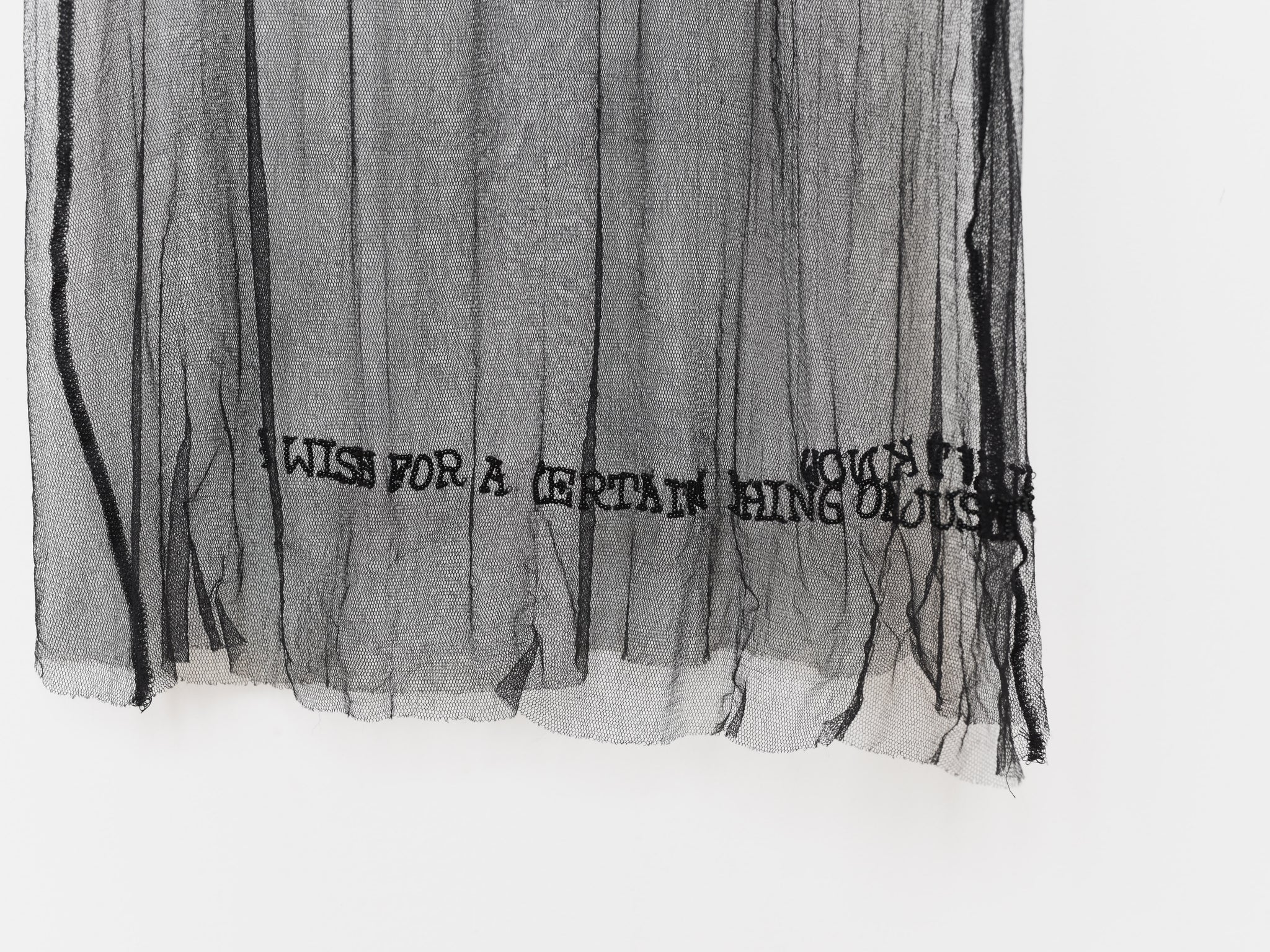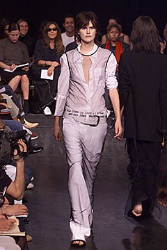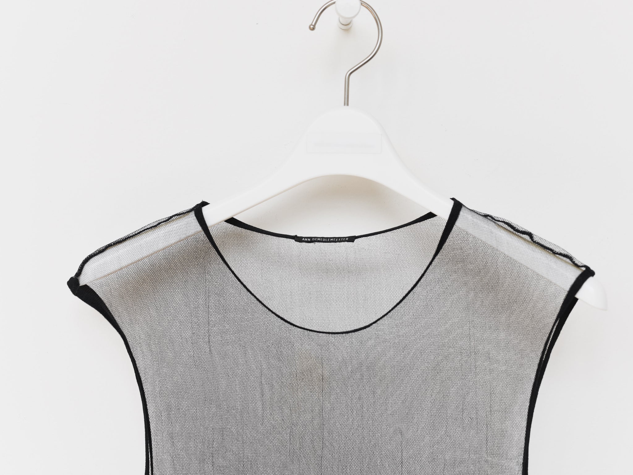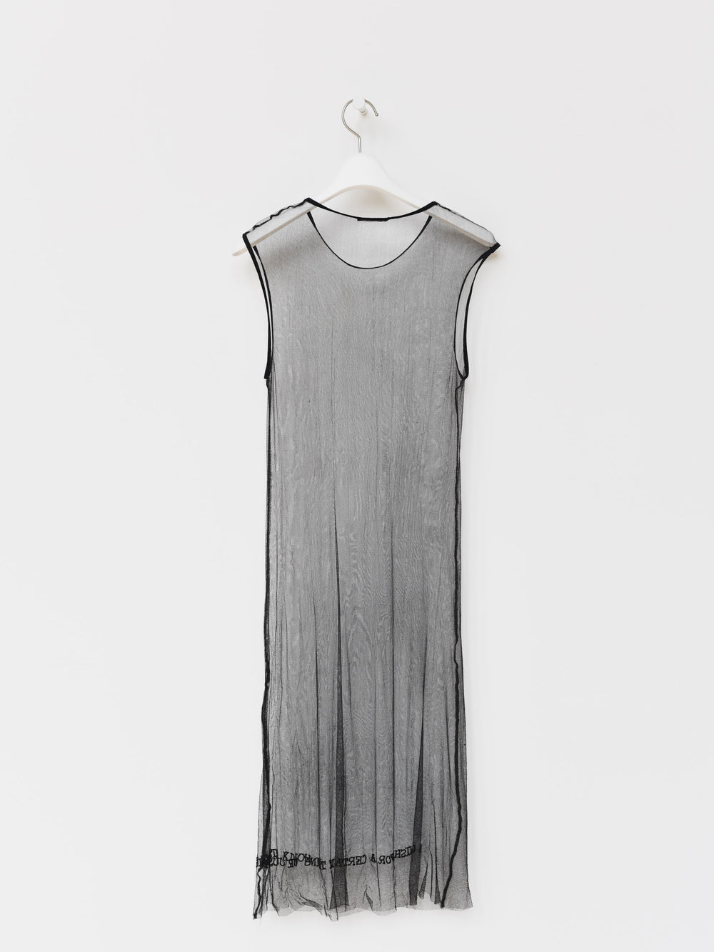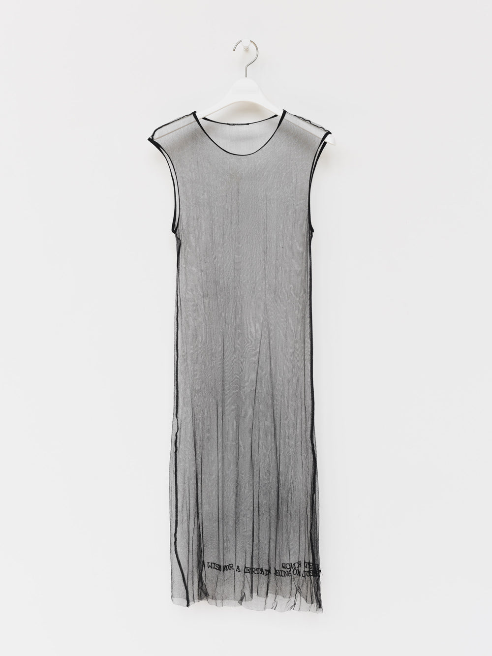 Representative piece heavily used throughout the SS00 runway. Details include a beaded quote by Patti Smith and a delicate thread woven throughout. Can be worn as a layering piece or as a lightweight top.