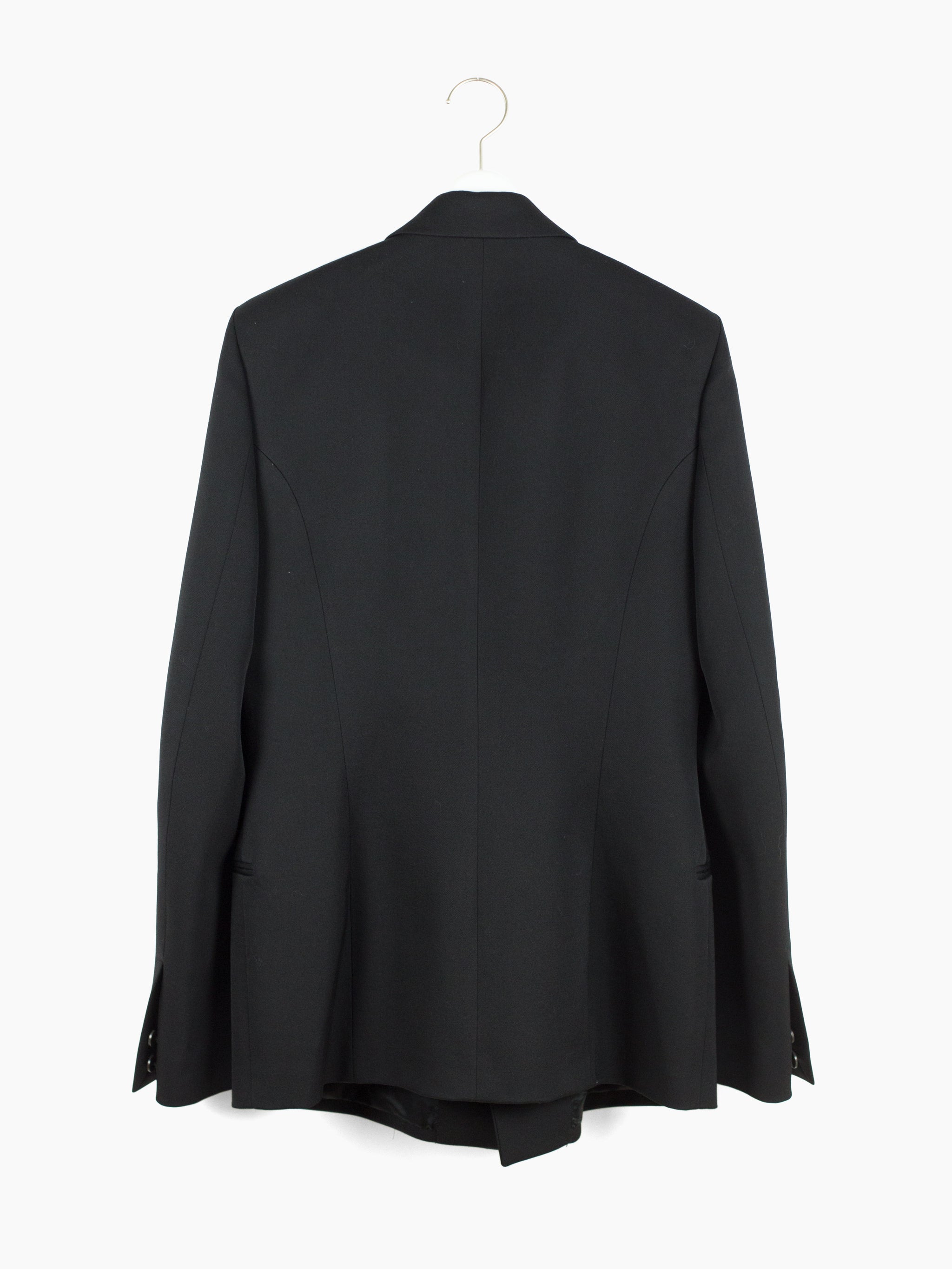The quality found in these SS17/Pre-Fall '17 suit jackets matched a couture/bespoke tailoring standard, with hand-stitched lining and armholes. The detailing is impeccable as well, with hidden placket closures at the front and cuff closures that feature trompe l'oeil buttonholes stitched atop the real, covered ones. This jacket in particular is cut in a rare technical wool/poly/elastane blend gabardine. It has a thick, plush, substantial hand and drapes beautifully with a slight technical bounce to it.