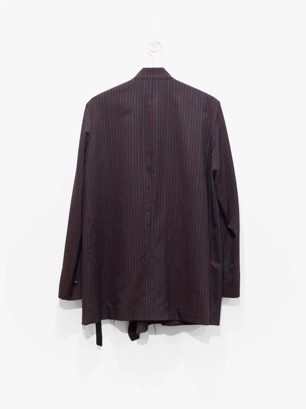 -Jacket front is extended on the bottom half of the body, and when left to hang, creates a draped effect