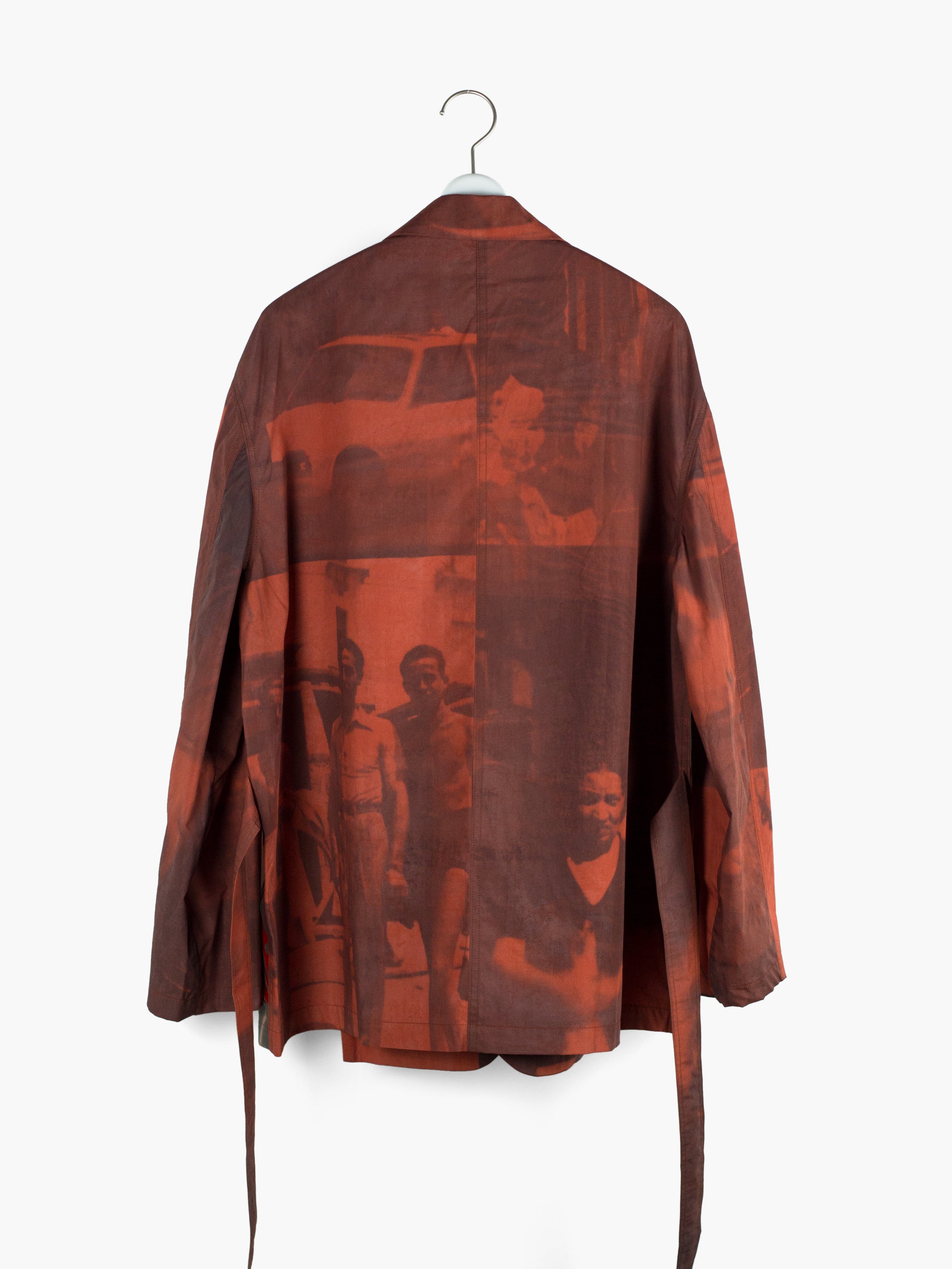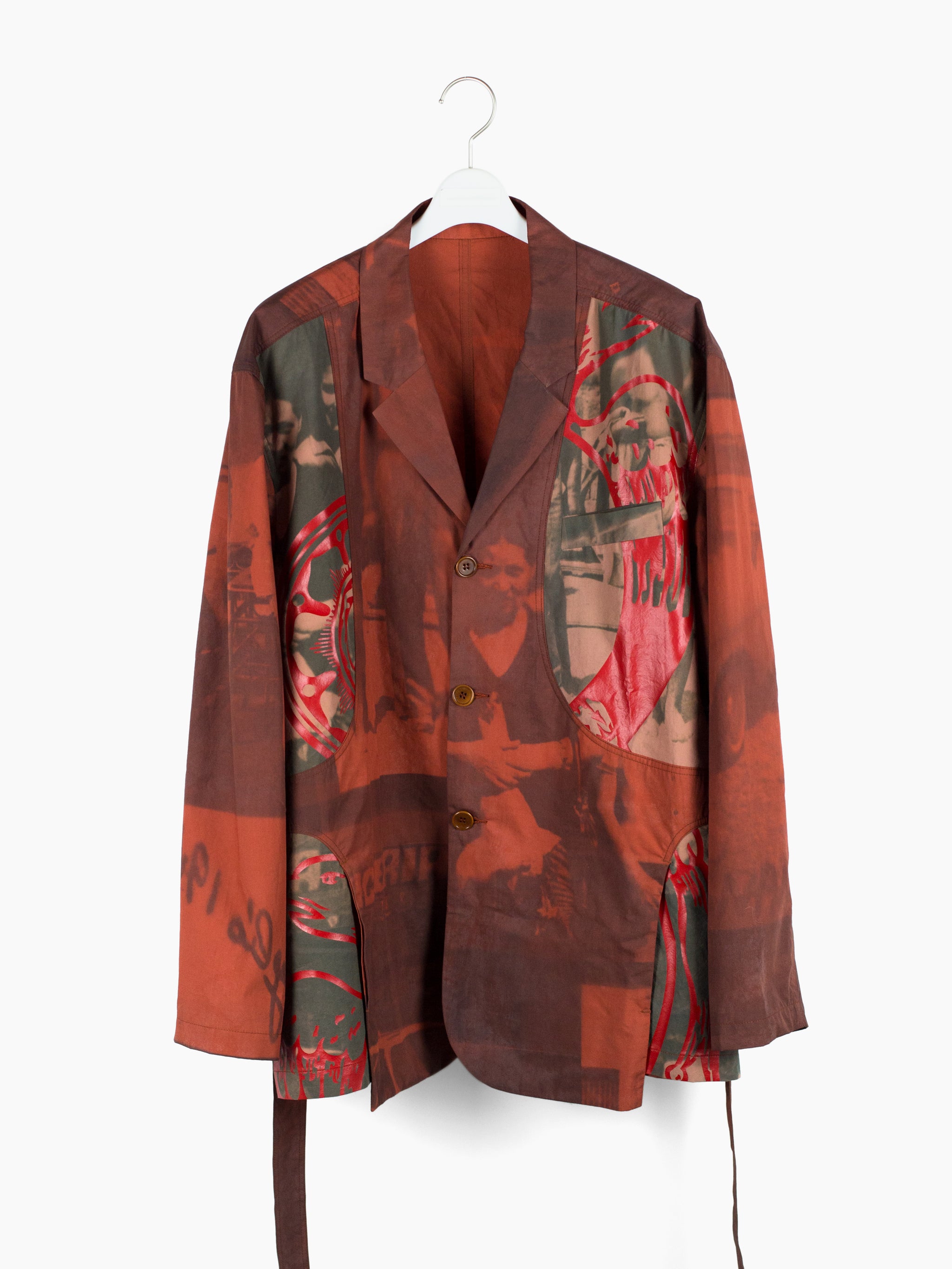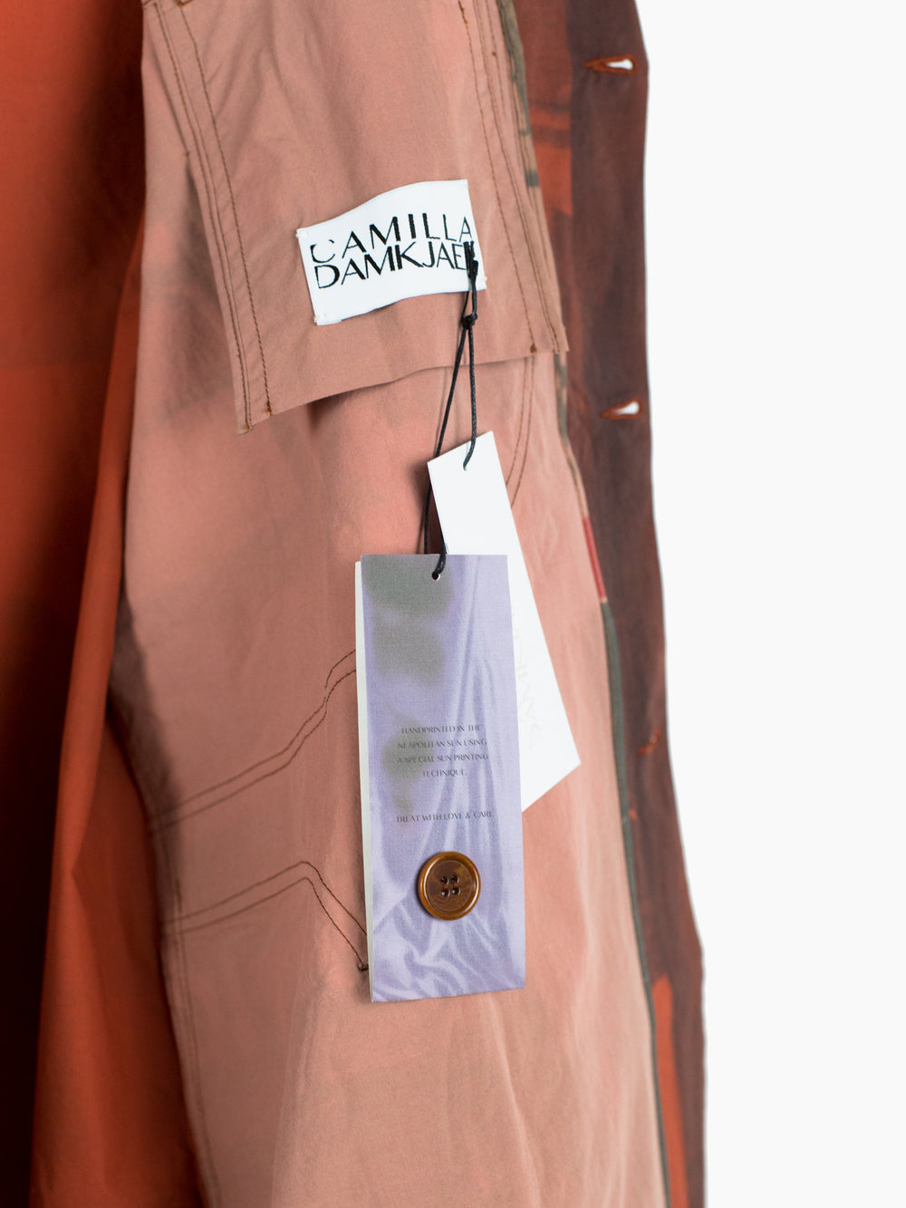 A garment-as-collage that brings together Camilla Damkjaer’s explorations of print textile, including a deep red cotton printed using sun exposure and a brown cotton layered with digital/silkscreen prints.