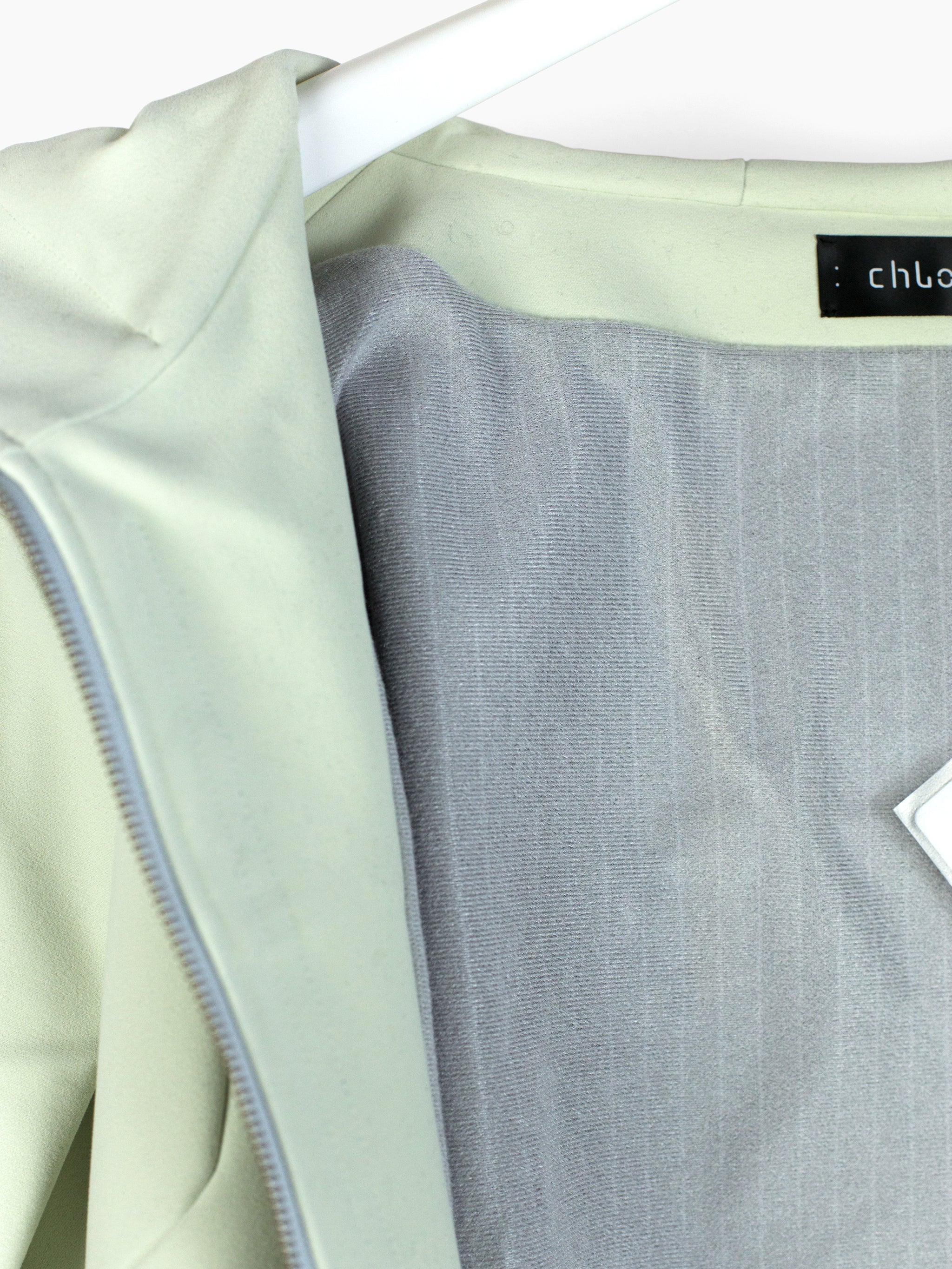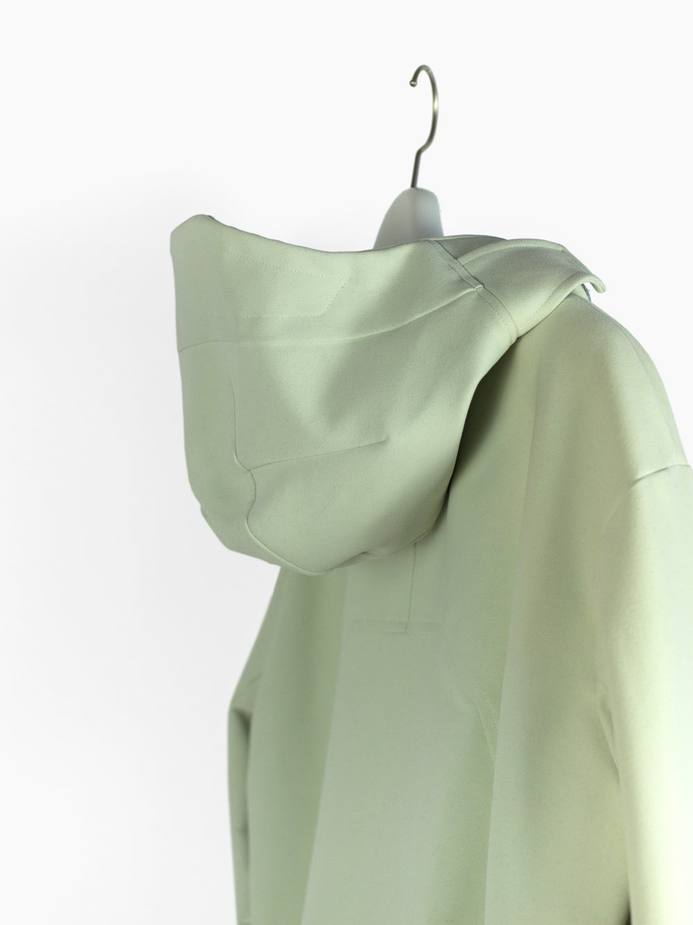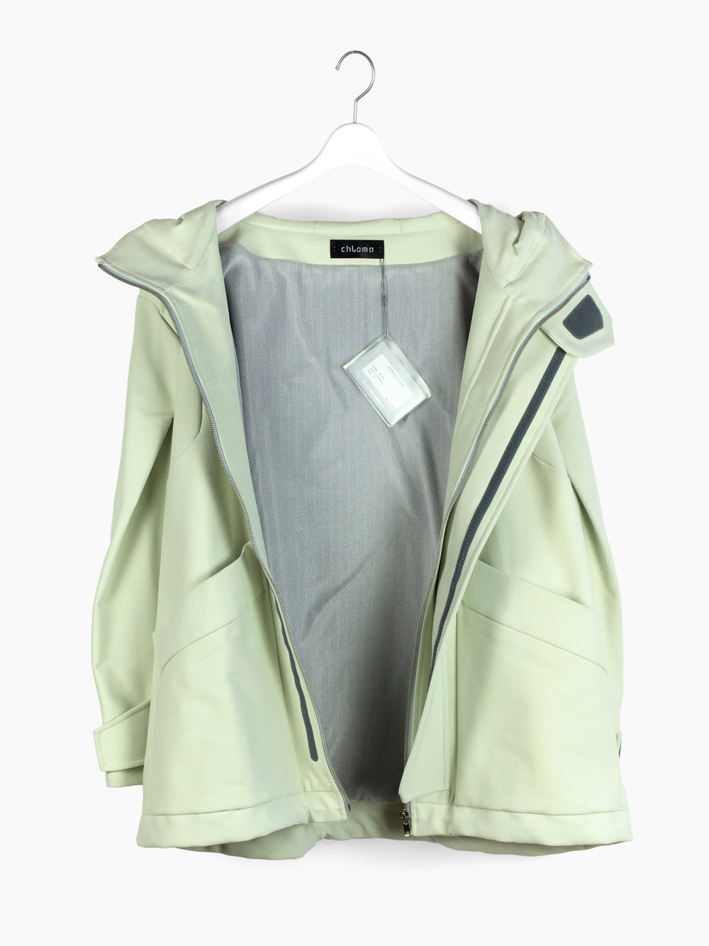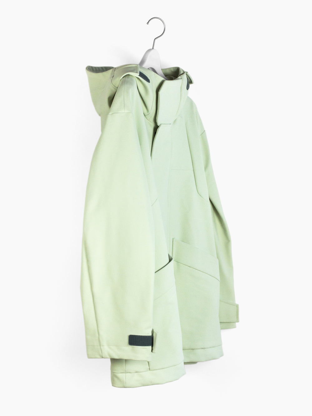 The Chloma Dystopia Coat takes inspiration from the US military ECWCS Gen I Parka in its proportions and shape, with subtle twists that abstract the utilitarian staple into a digitized, futuristic coat of armor. Style lines are all artistically rendered (at plackets, shoulderlines, hood panels, even the velcro patches) to create an alternative, futuristic impression. Sleeves feature statement downwards facing pleat at the inner bicep which creates a unique a-line impression and added dimension.