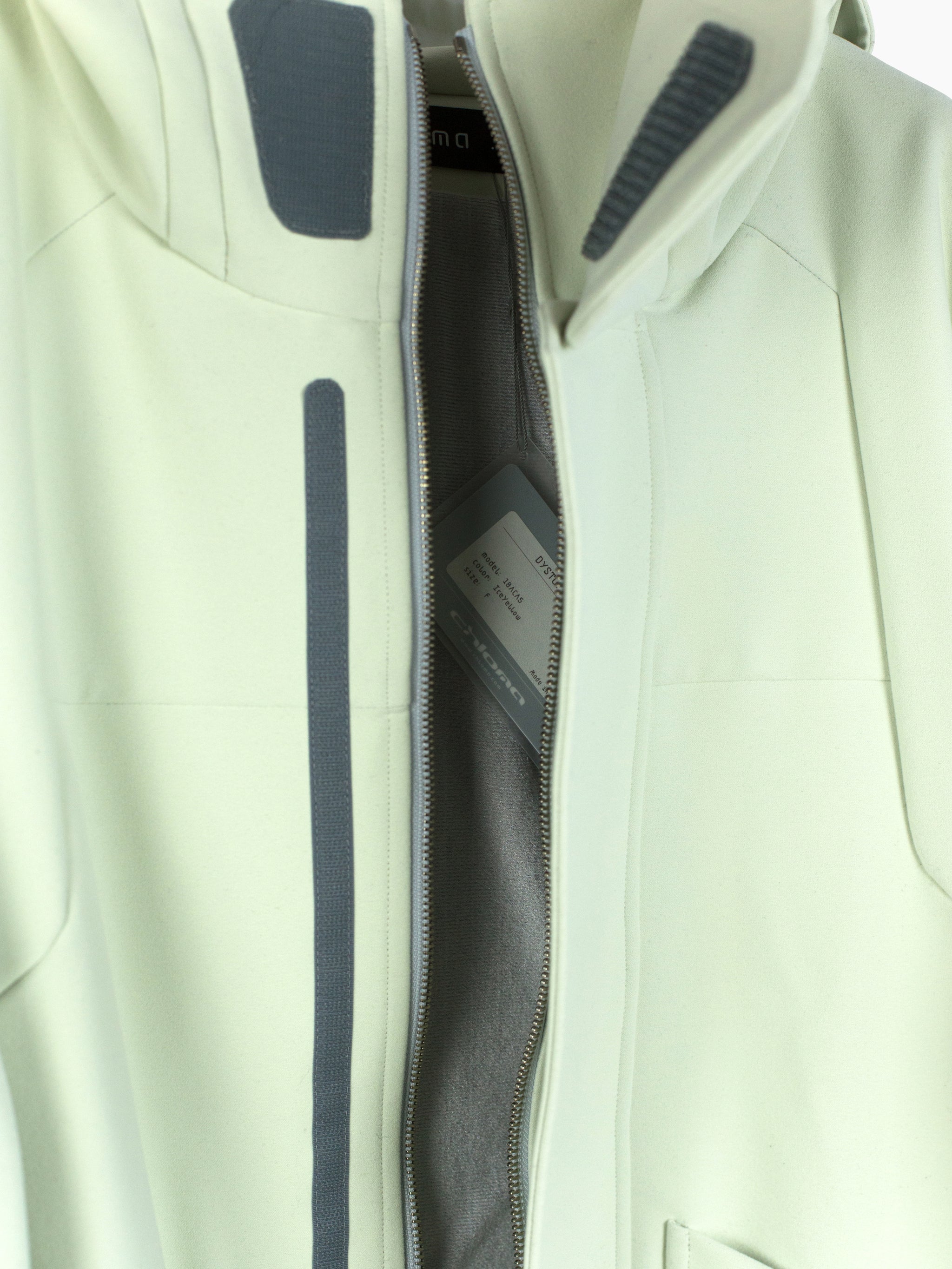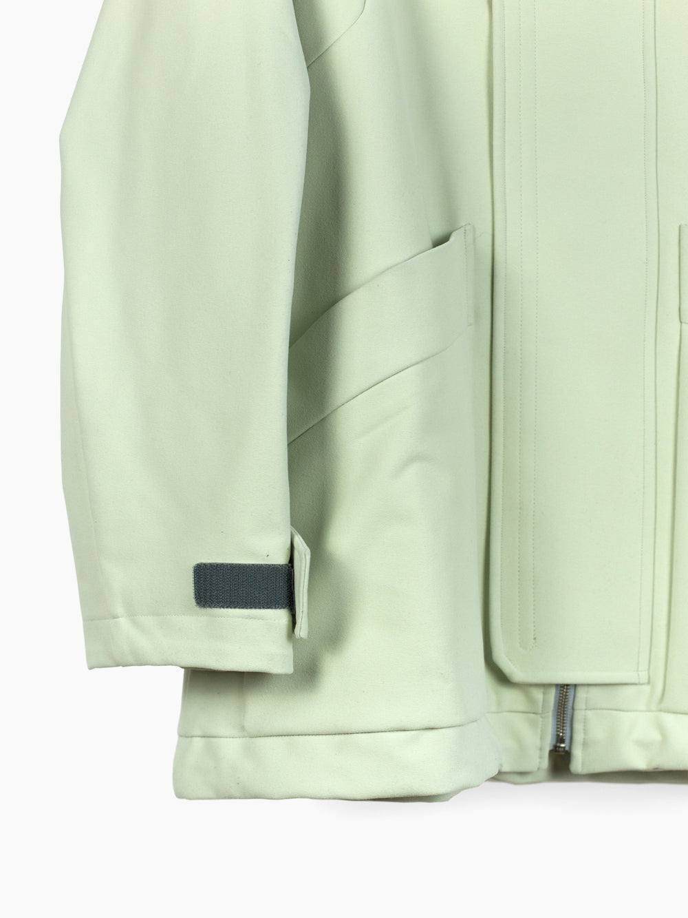 Finished with Excella front zipper closure concealed with a split 2-part front placket, 3-point velcro adjustable brimmed hood, and polyester microfiber lining for next-to-skin comfort