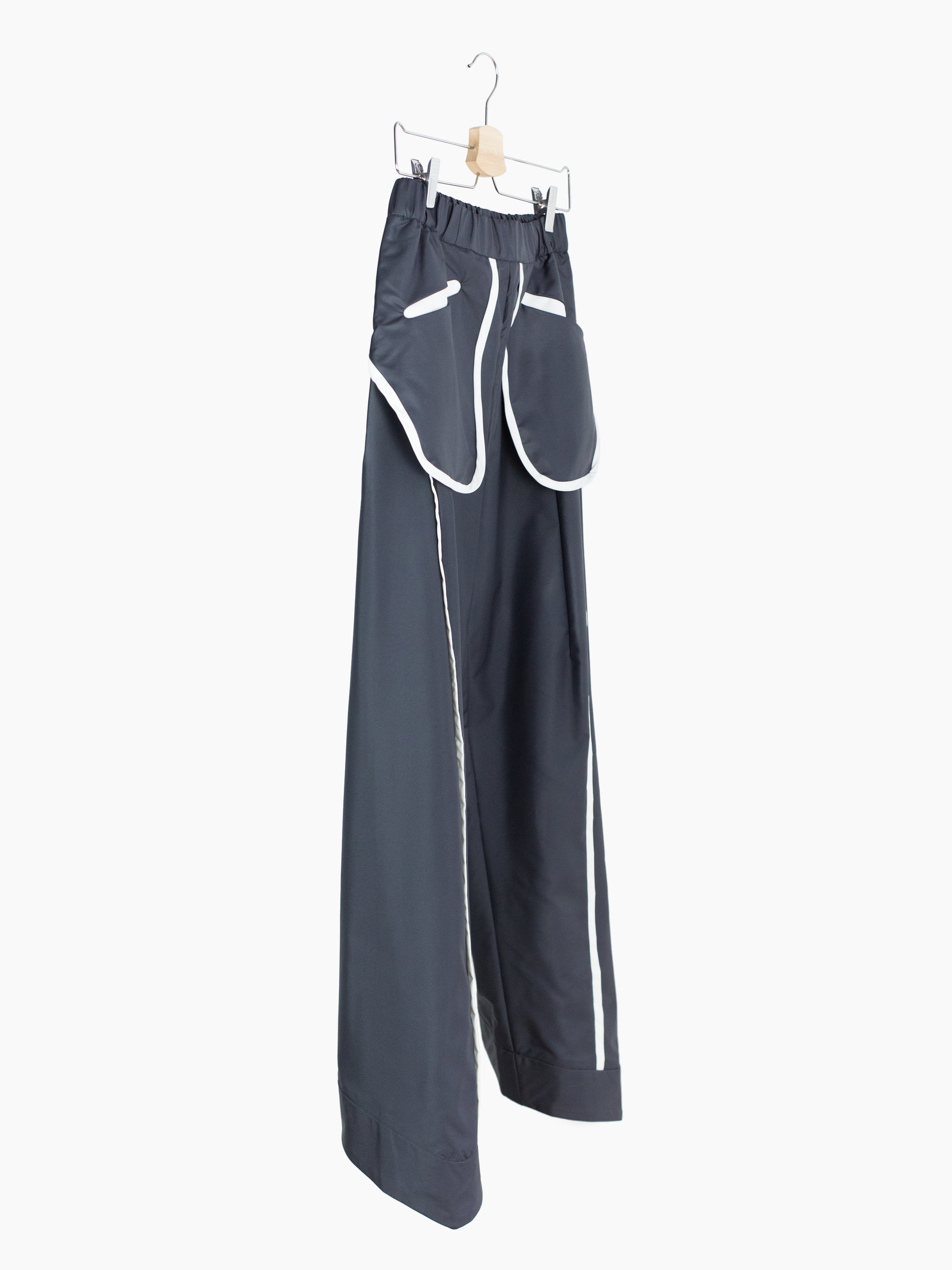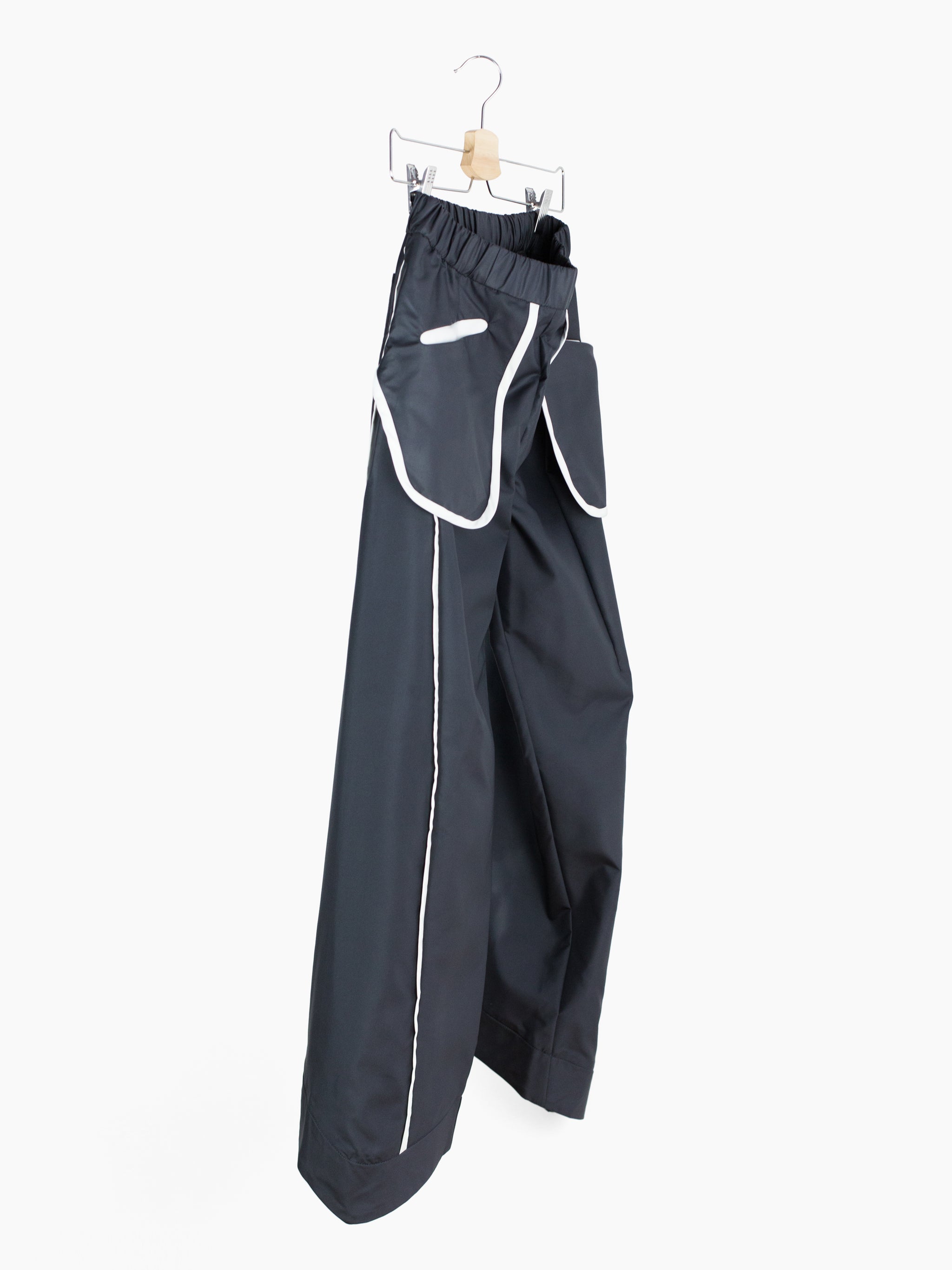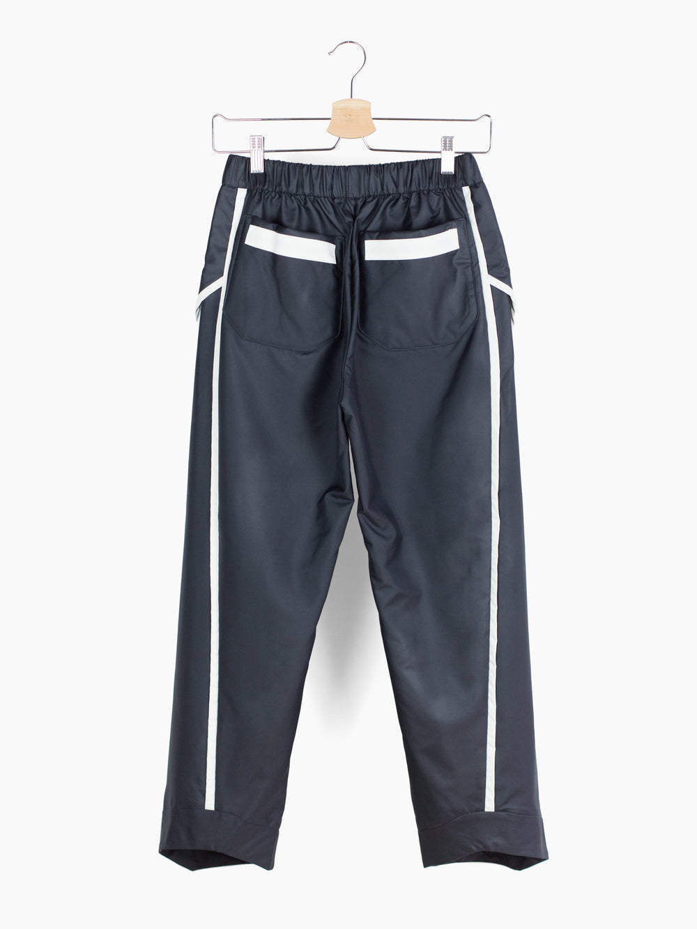 Elasticated waist easy pants from Chloma, cut in a smooth, soft-touch technical fabric with 'inside-out' style exposed bag waist pockets. Features curved 3-panel construction down the leg with subtle vertical knee dart for shaping and a canted curved hem that's interfaced for shape and structure. Contrast white piped seam finish throughout.