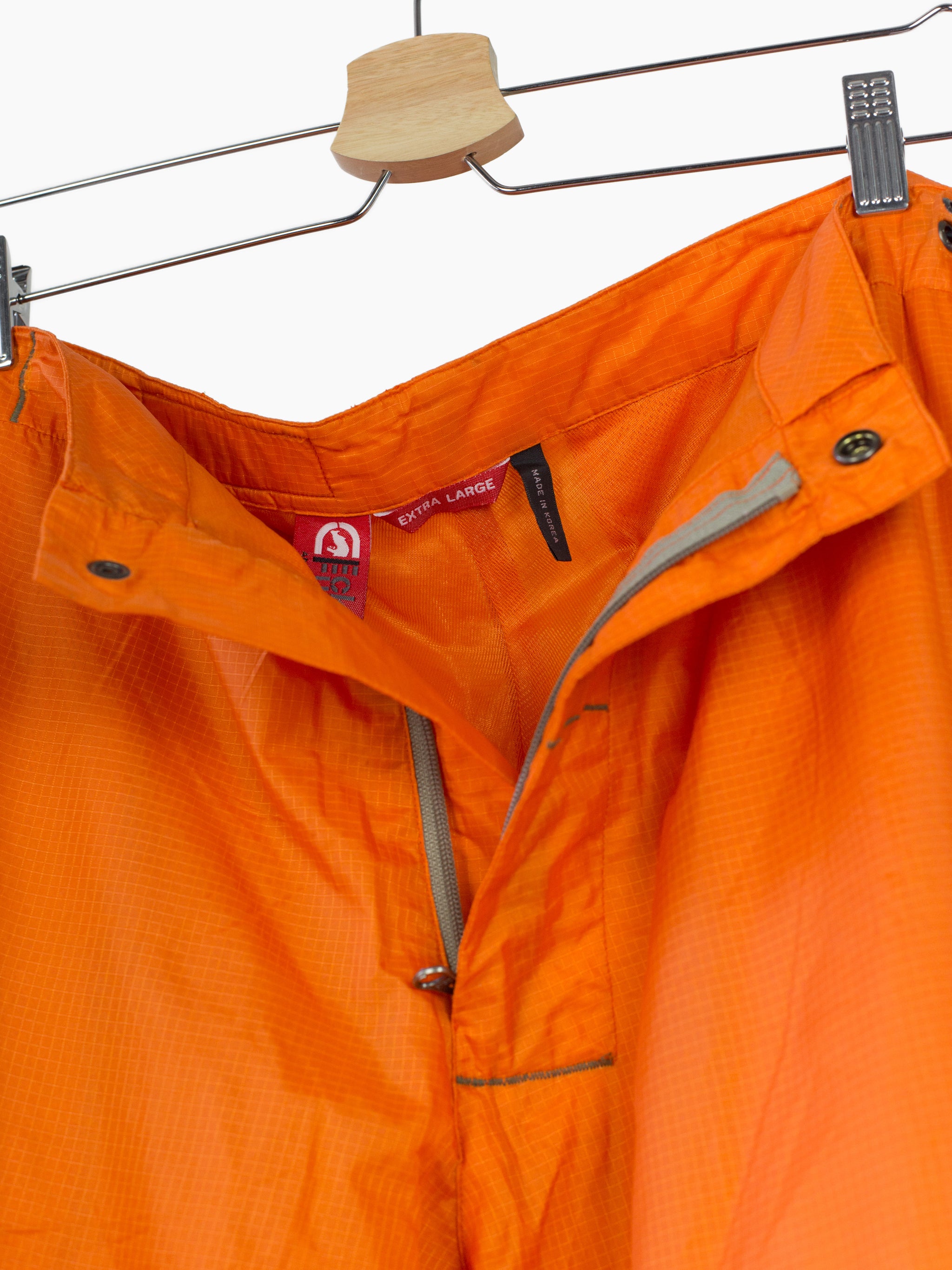 Made in Korea 7/10 Condition, with no dramatic rips or tears. Pants hems have been worn and have some small holes. See pictures for details. Inner waterproof coating has started flaking but face fabric is structurally sound and the set remains wearable. Some fraying at red branded zipper pull tabs.