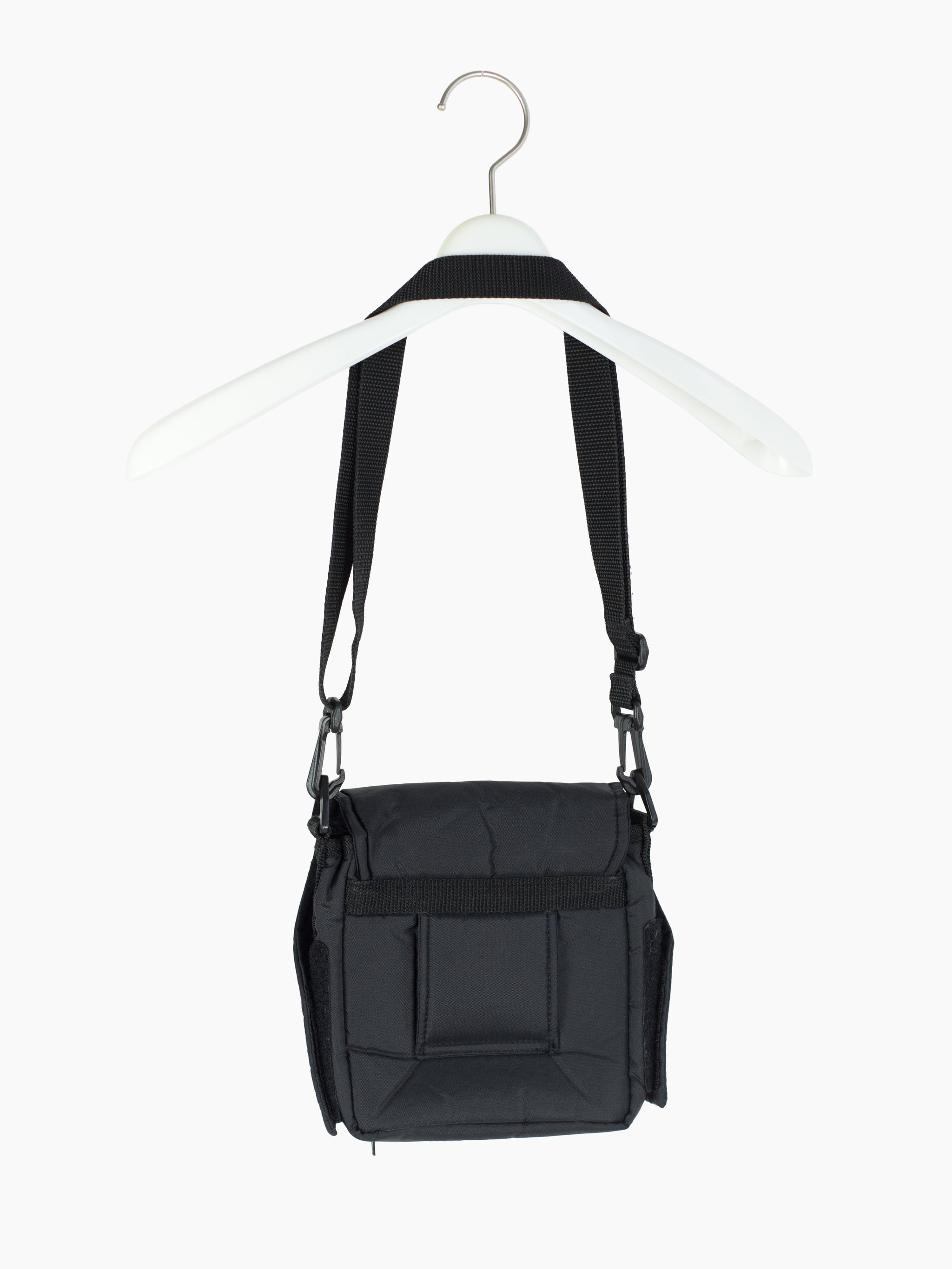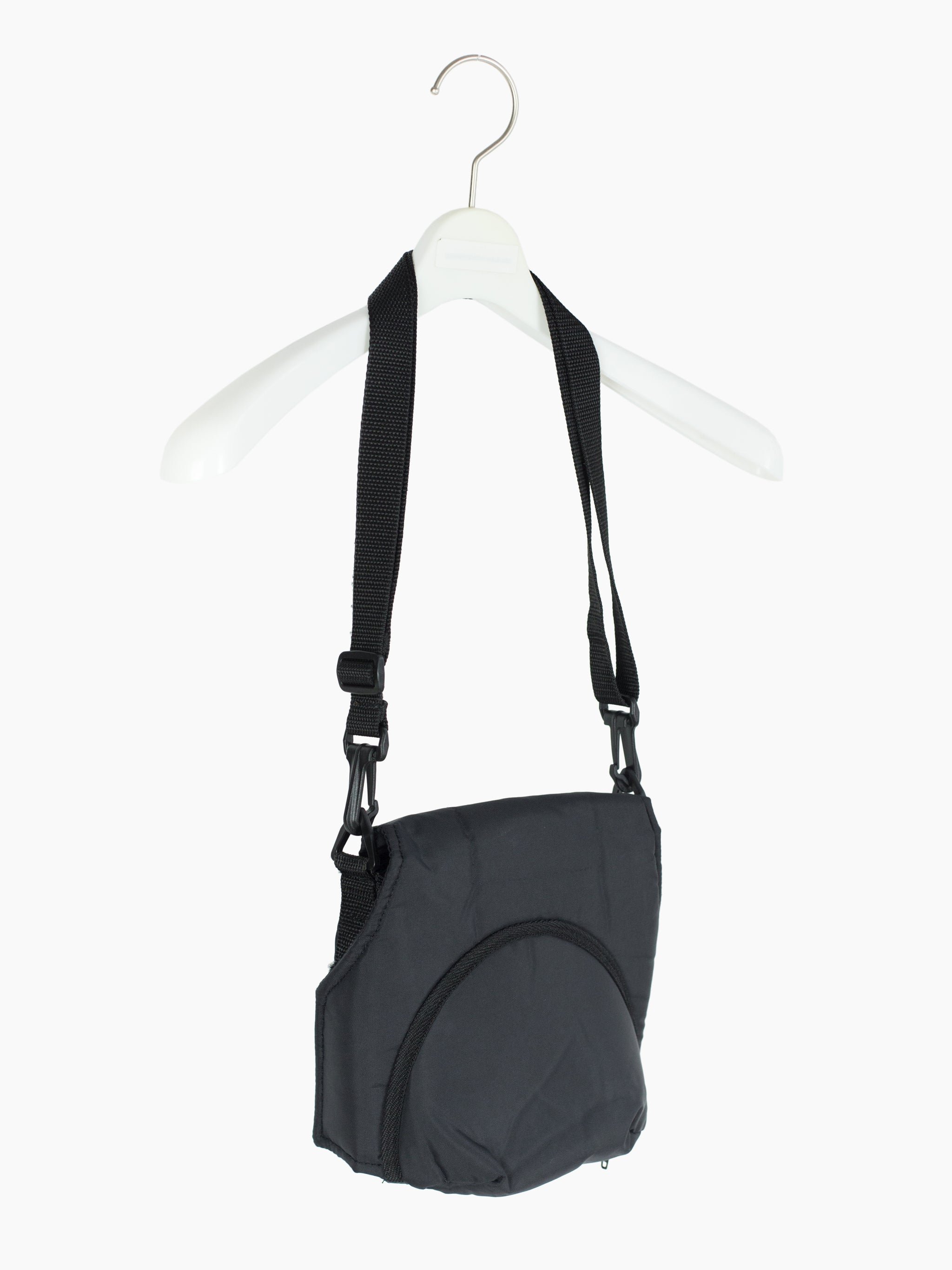 3 Compartment padded nylon sling from Final Home. Features unique 3D pocket construction at the front with a novel bottom zipped closure that becomes accessible when flipped upwards. Velcro-side-closure creates flexible attachment points to expand carrying capacity. Adjustable strap lets the bag be worn cross body or at the waist (or, a loop stitched onto the back threads a belt through easily).