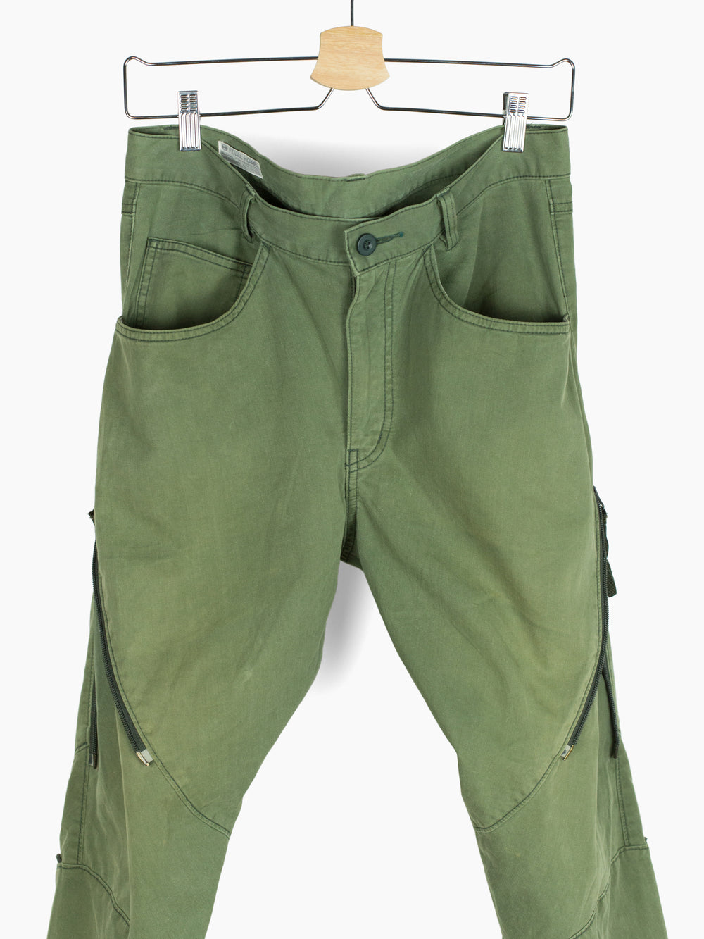Fit Notes: Tagged a size S, fits W30-31. Fully unzipped, the trousers fit with an elegantly cut straight leg. Using the zippers, the fit becomes slimmer and creates an articulated fit with volume at the knees in the style of a moto pant. Can be adjusted to suit the wearer's preference.