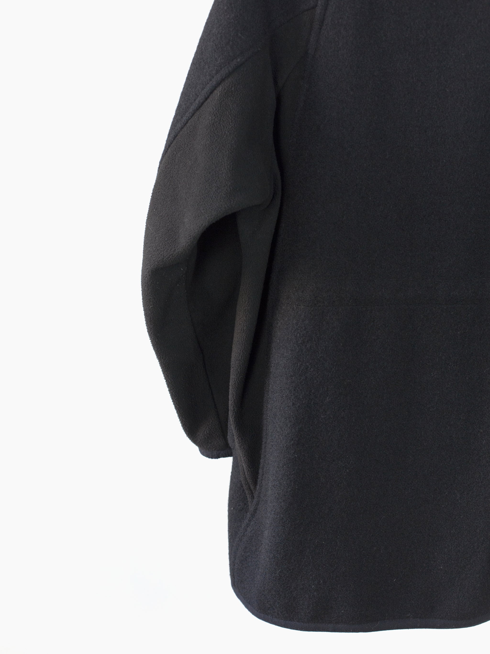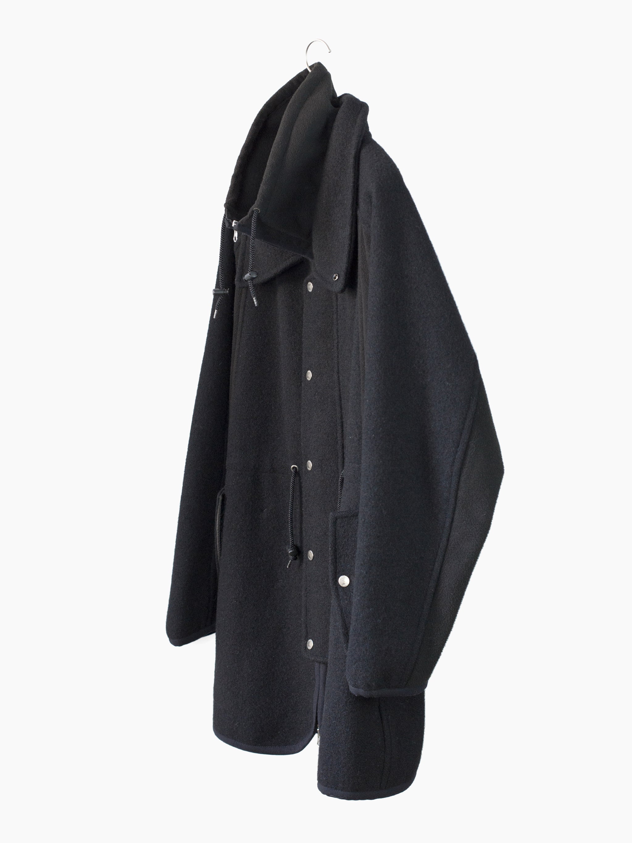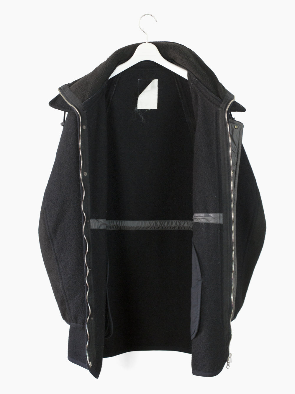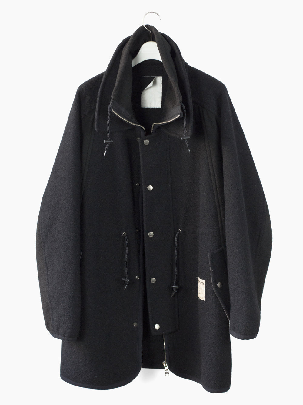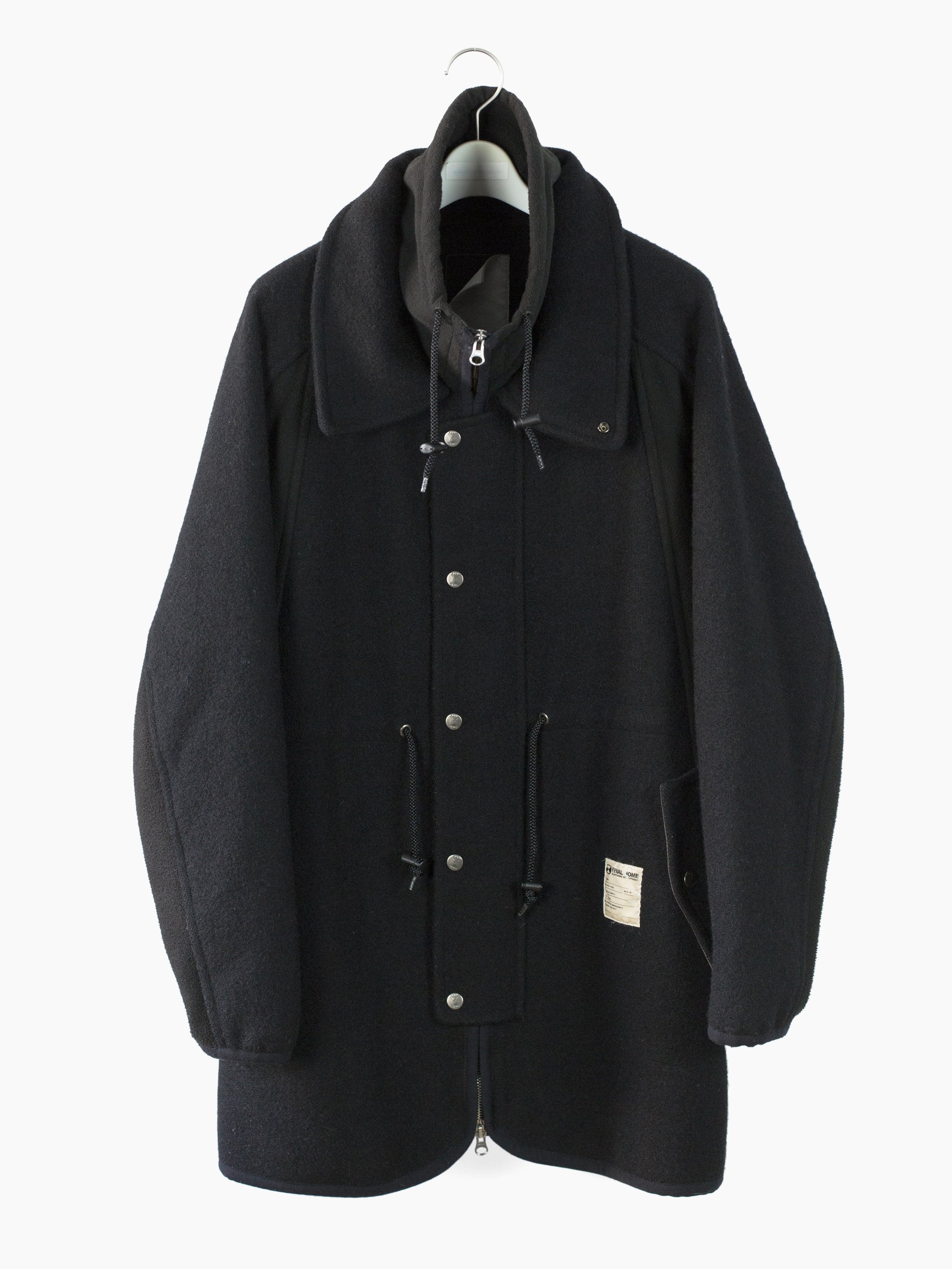 Long, protective, and cozy, this Final Home coat is a versatile and functional piece of cold weather armor, featuring composite material construction with lighter, more breathable fleece under the arms and lateral body and a double layered collar to optimize coverage and styling. Styling draws from fishtail parkas and coach jackets, with the snap front placket covering a double-zippered front closure. Features two flap-closed waist pockets and cord adjust at the waist and inner fleece collar.