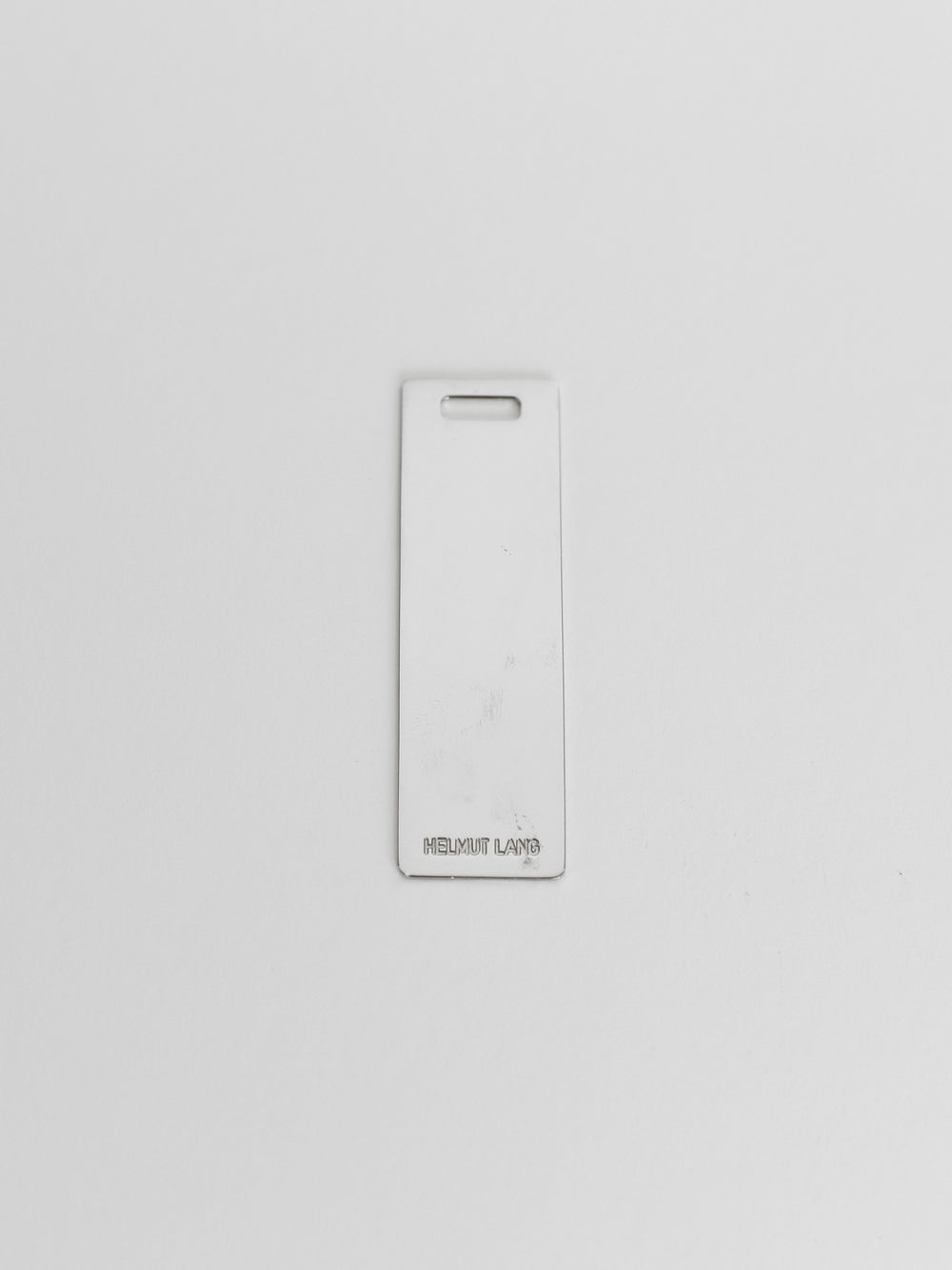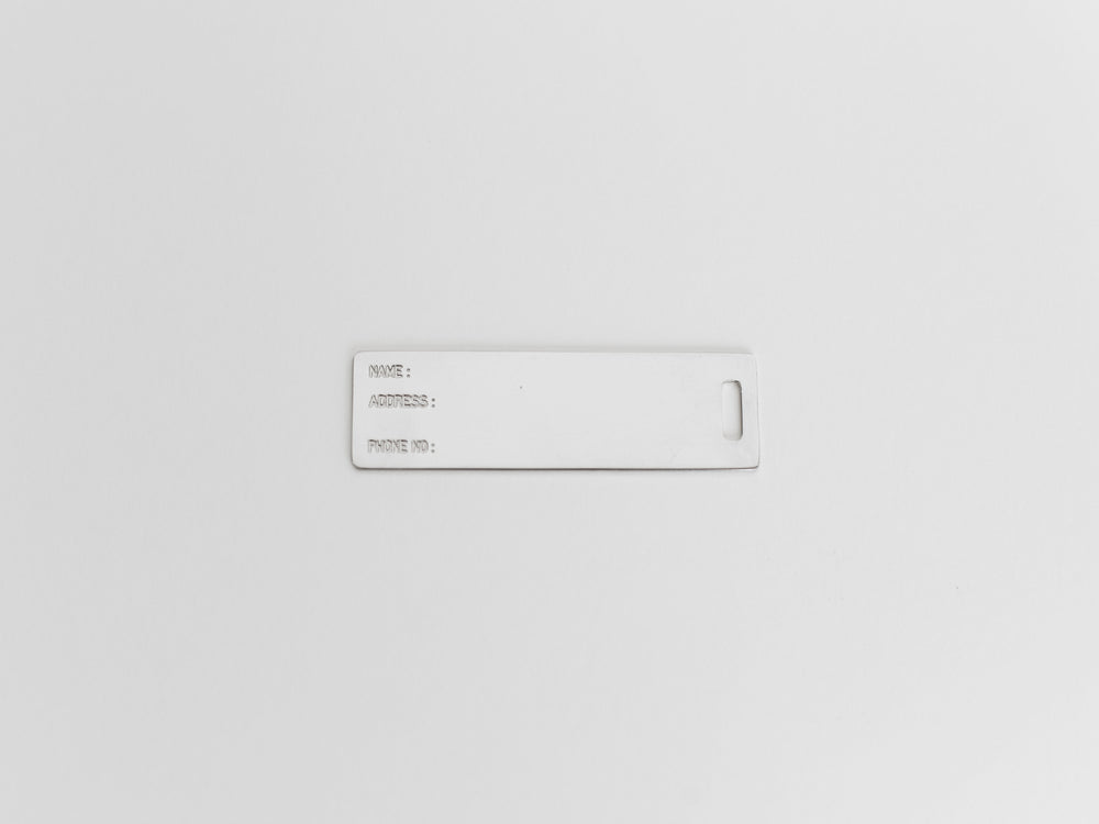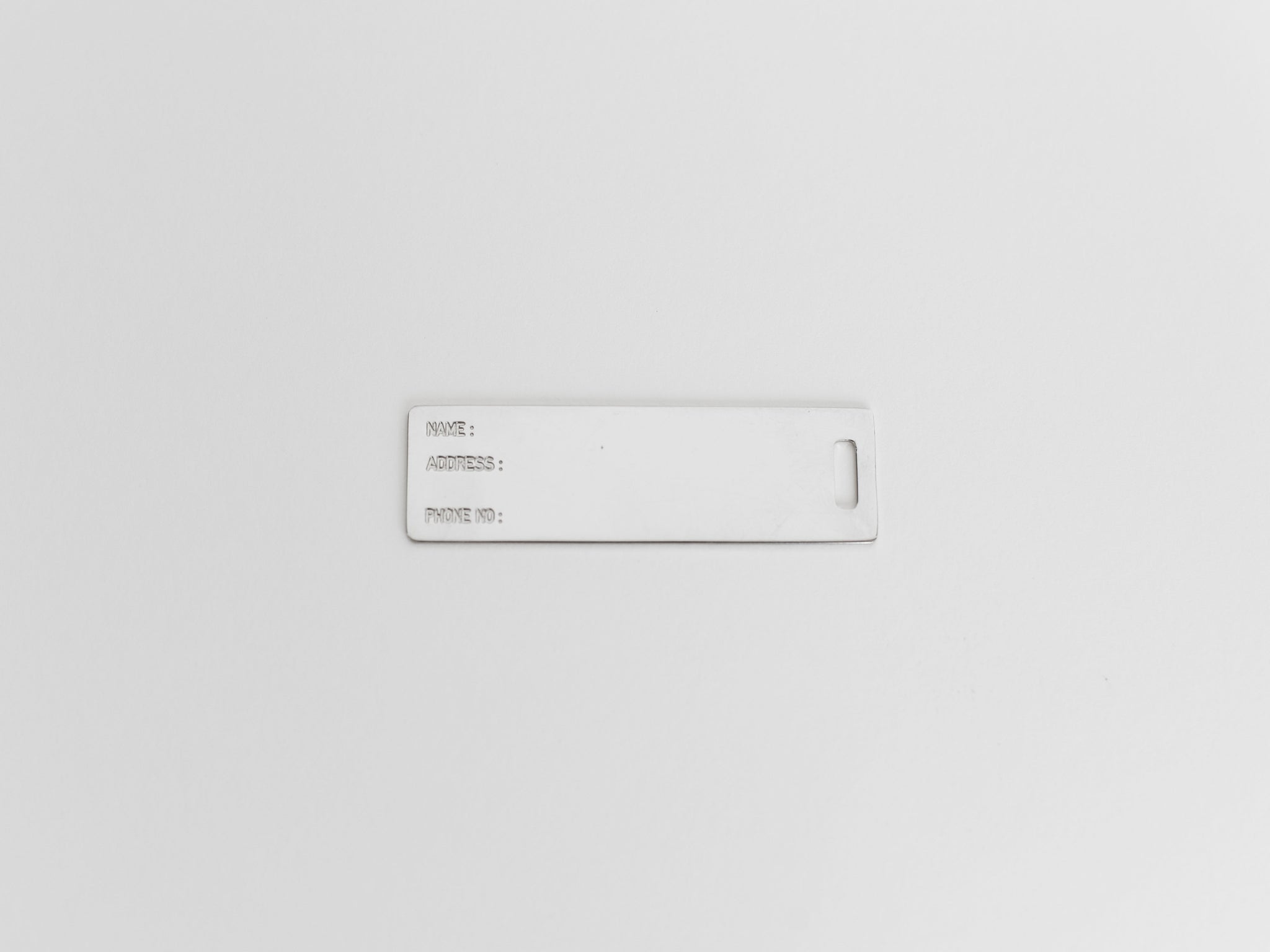 Mirror polished chrome keychain with engravings for use as a bag tag.