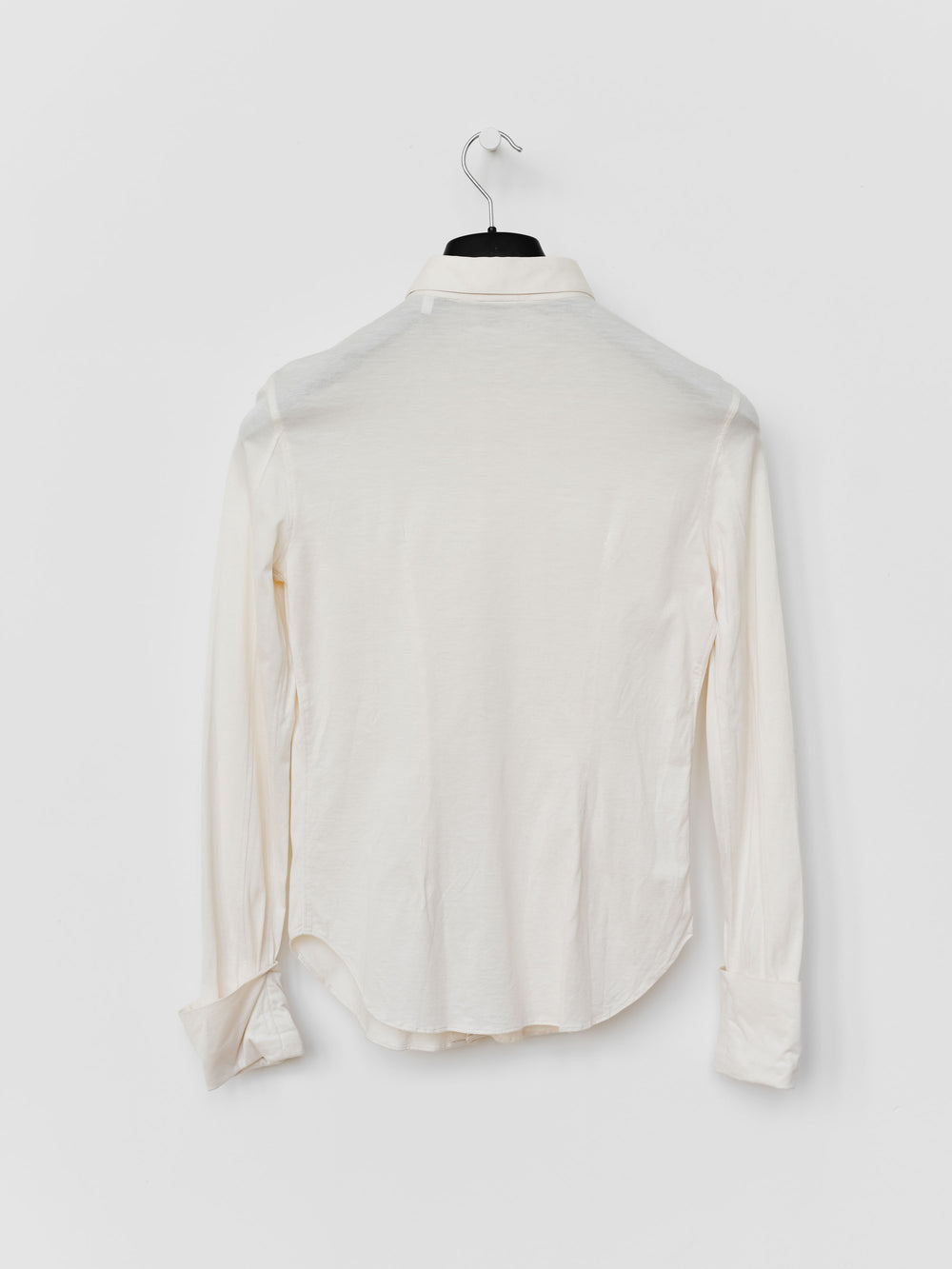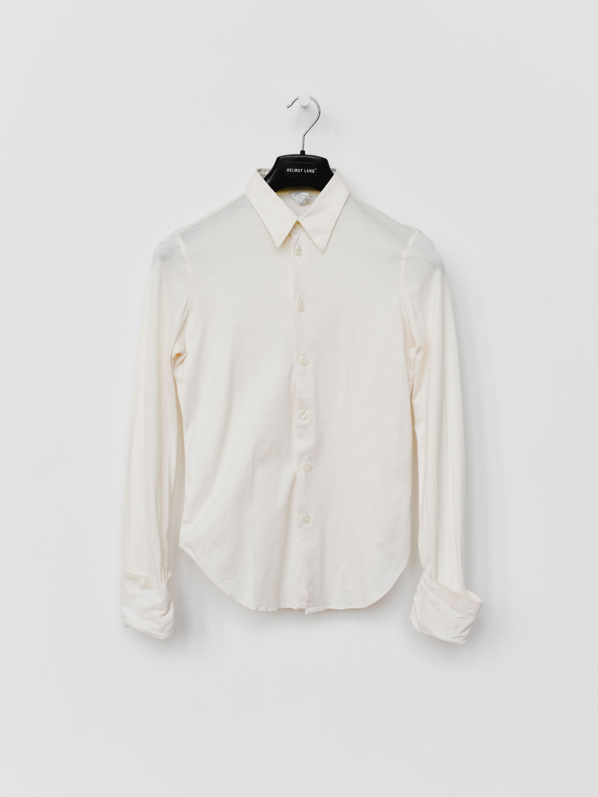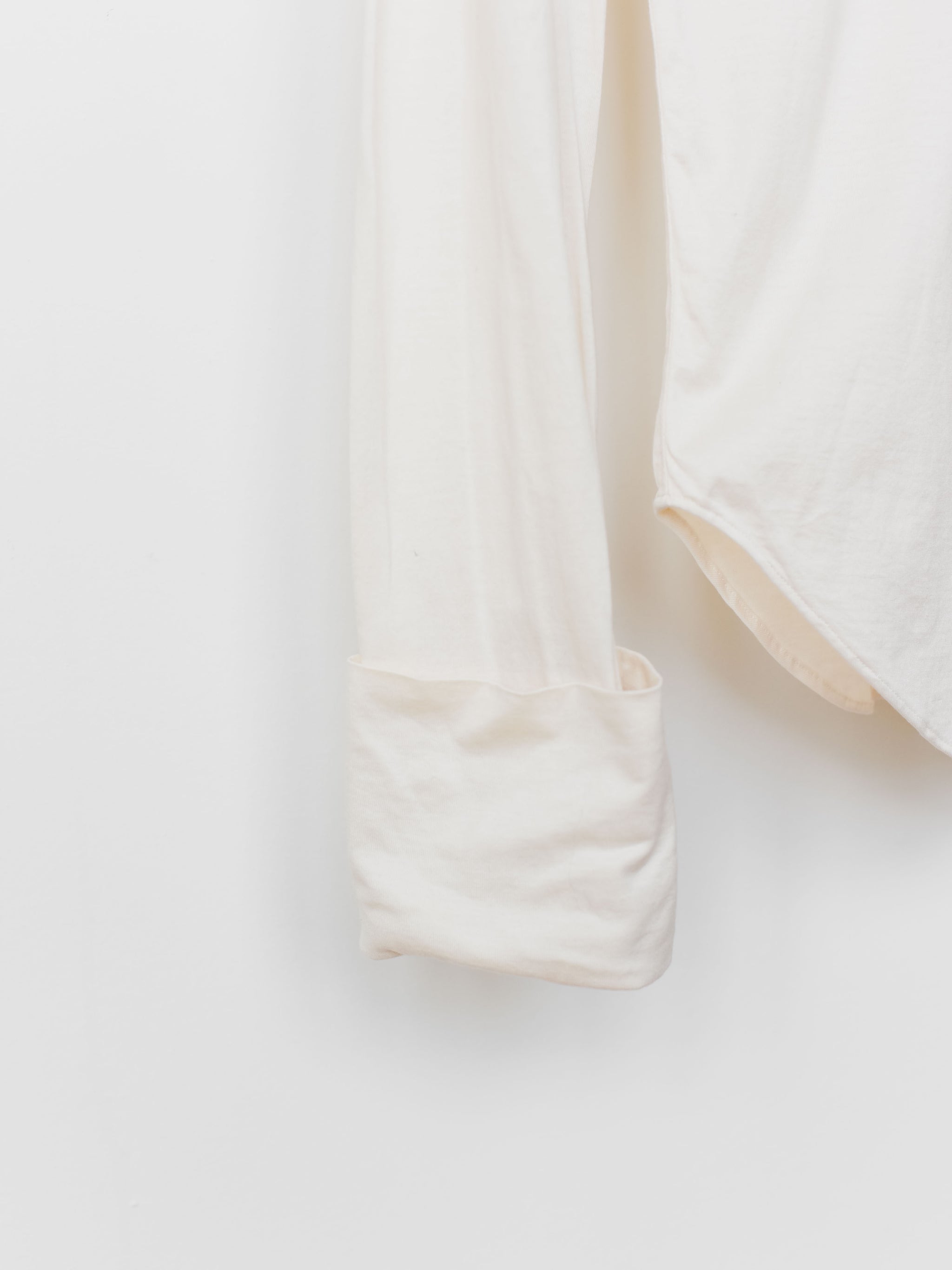 A beautiful example of Helmut Lang's minimalism with a unique detail of foldover cuffs, all brilliantly constructed with a luxuriously smooth stretch cotton jersey typical of Helmut in the 00s, yet surpassing any comparable fabric today.