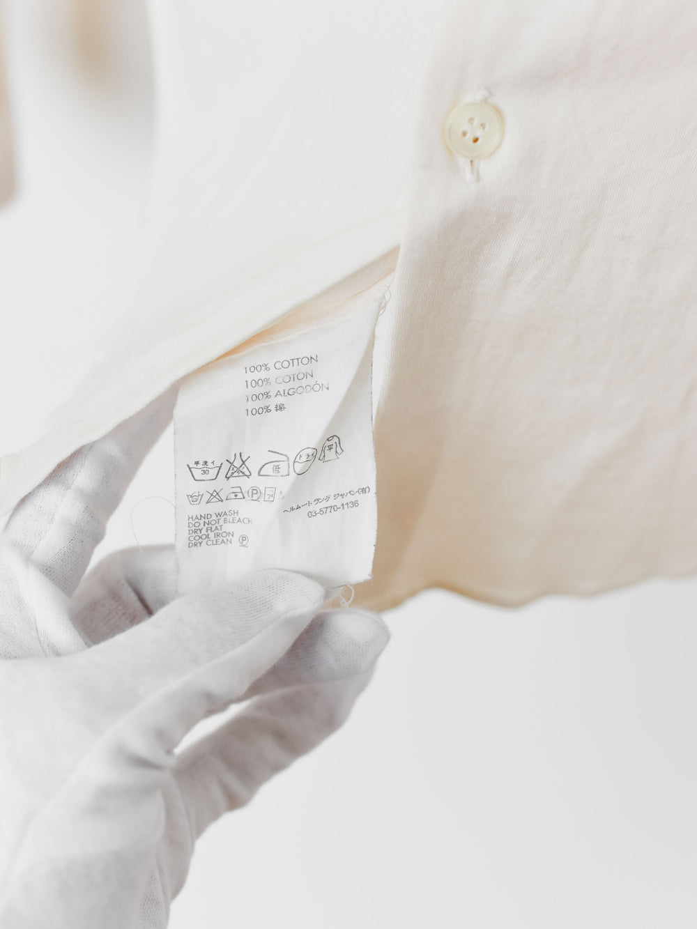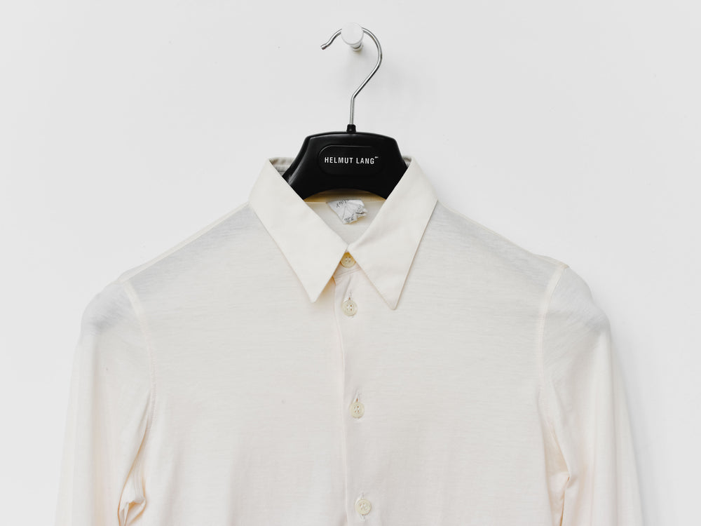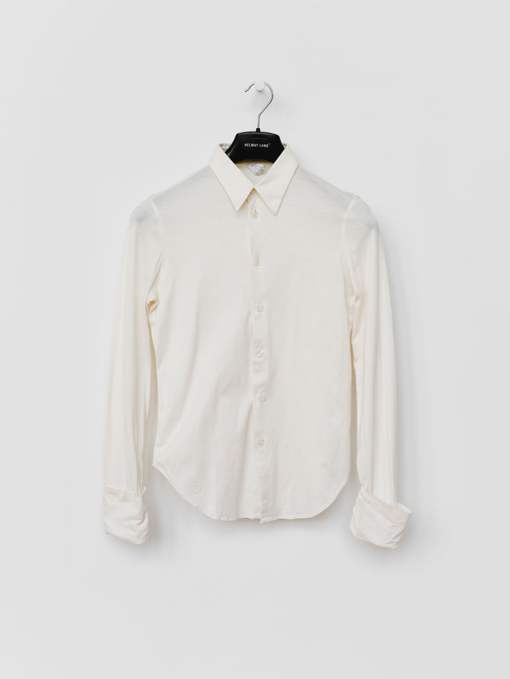 A beautiful example of Helmut Lang's minimalism with a unique detail of foldover cuffs, all brilliantly constructed with a luxuriously smooth stretch cotton jersey typical of Helmut in the 00s, yet surpassing any comparable fabric today.