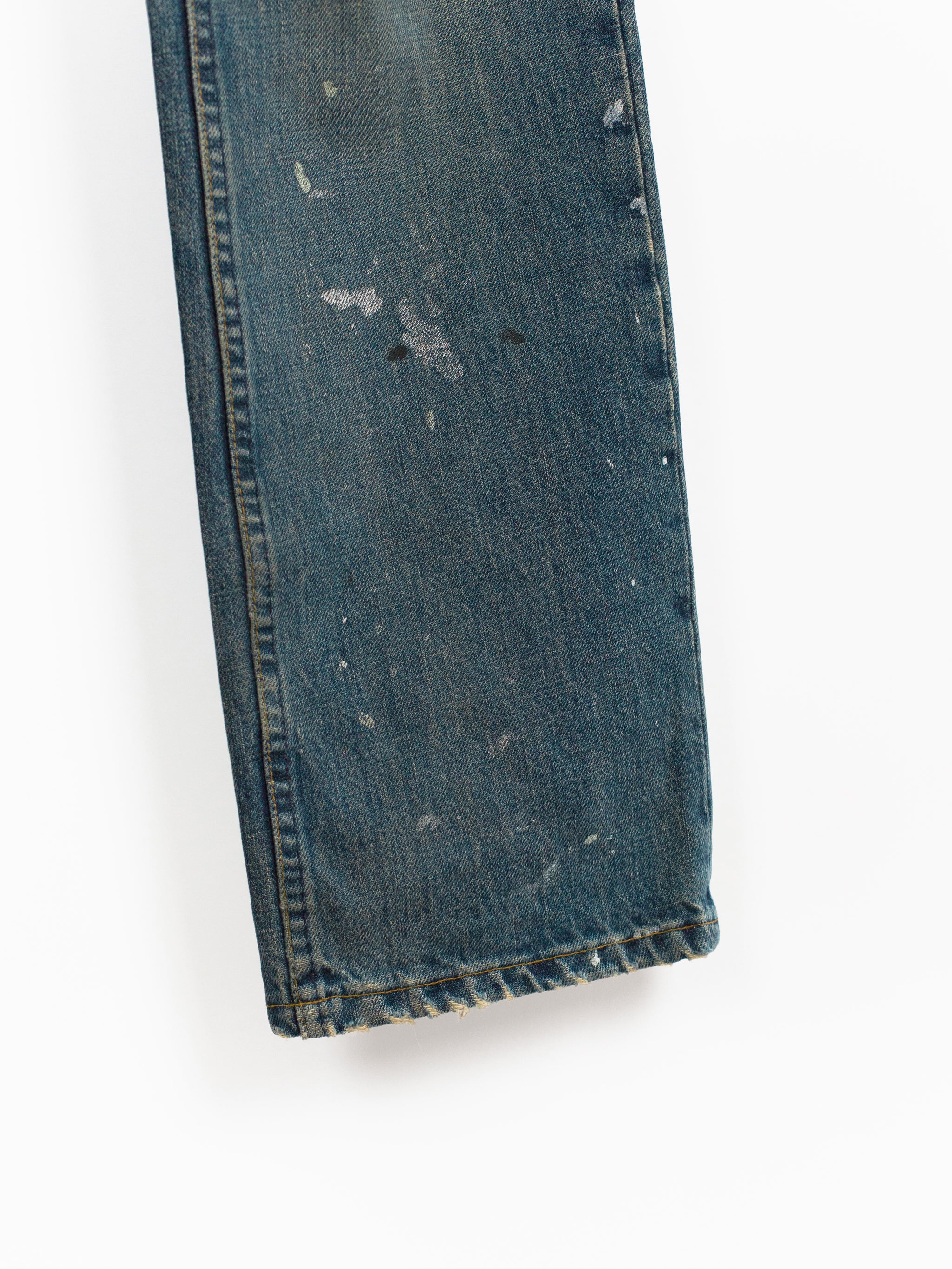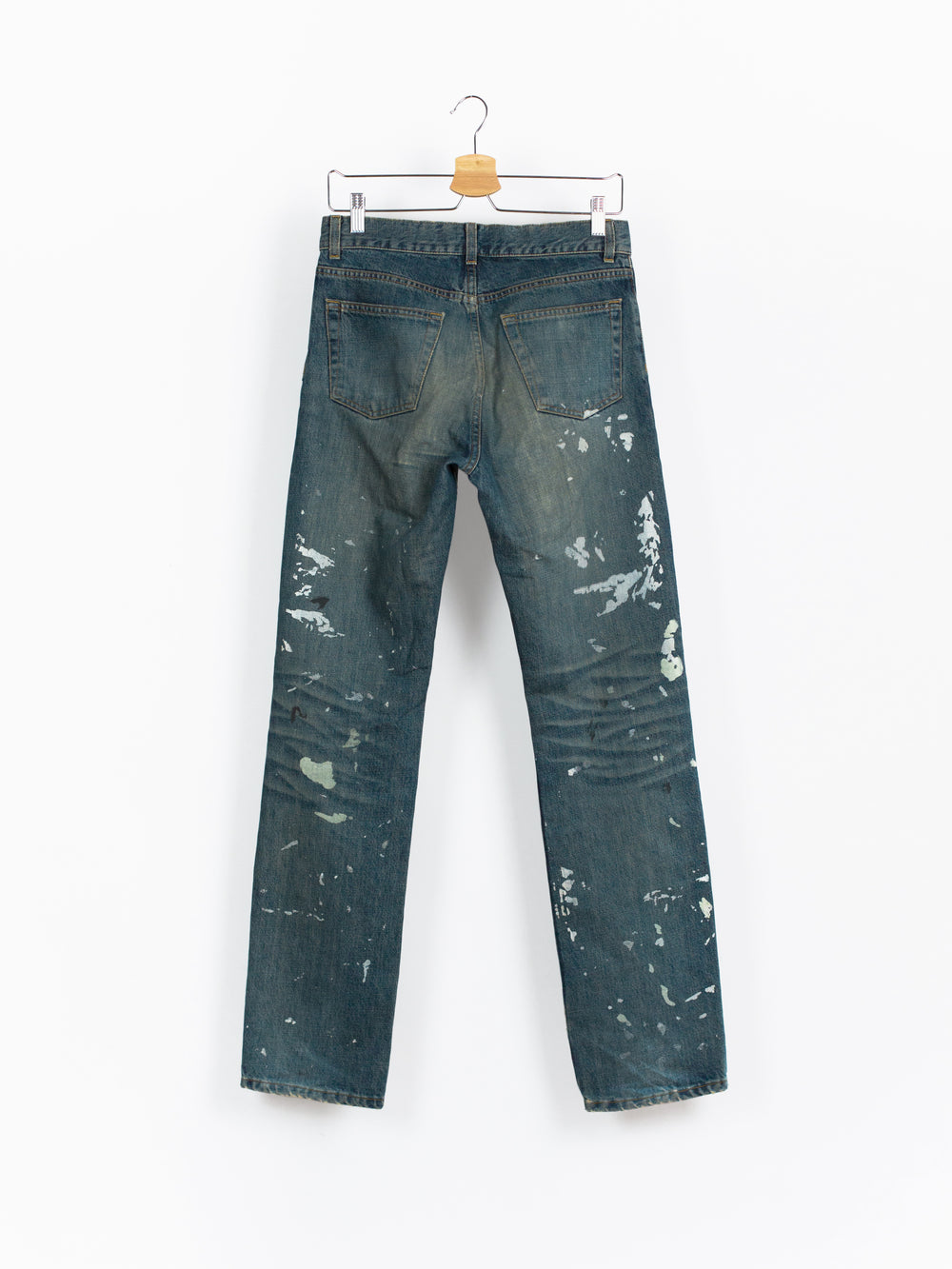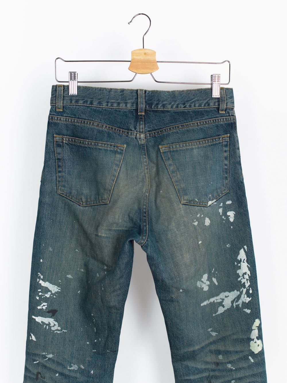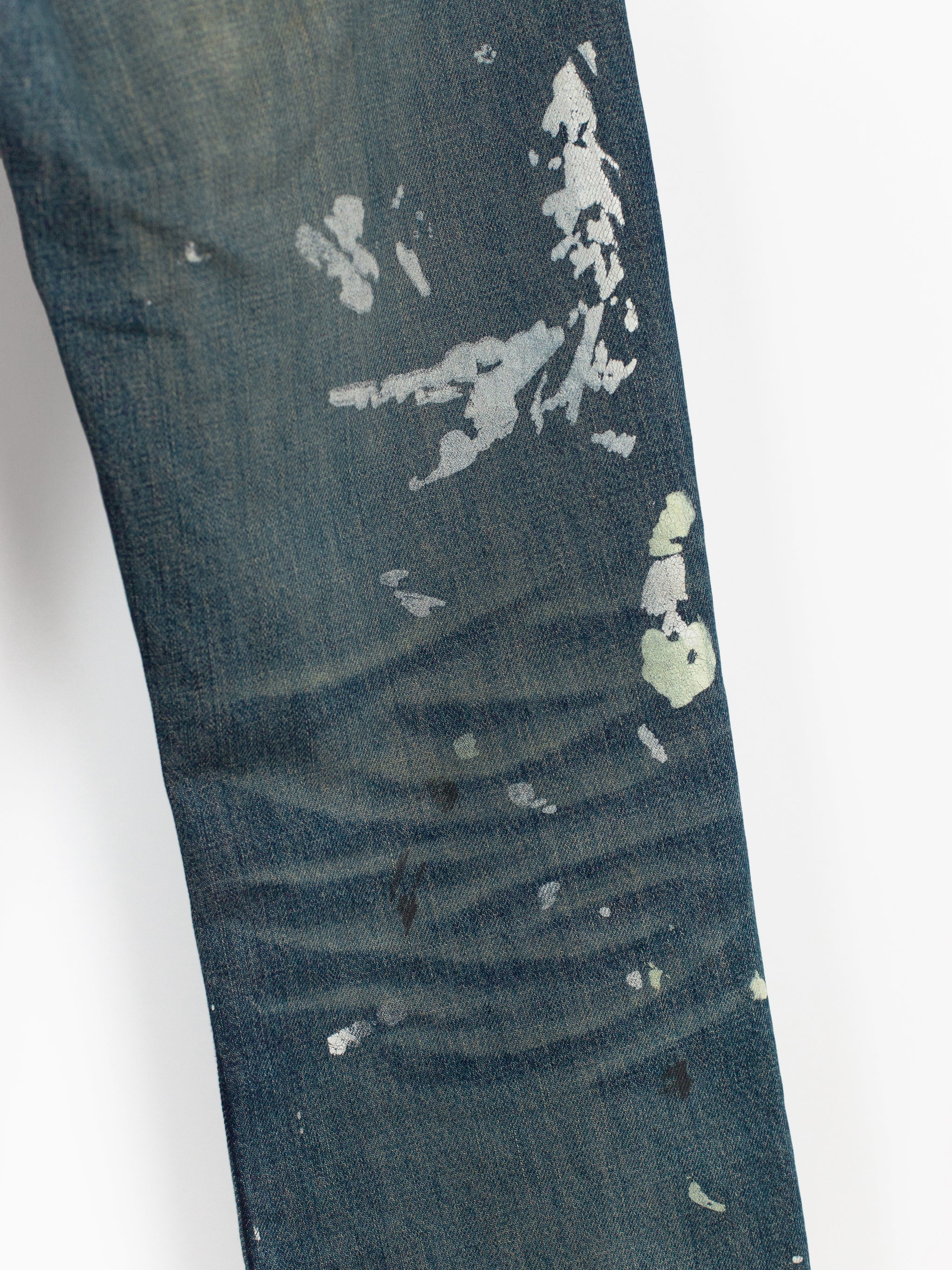 Iconic painter denim from 1998. These have not been altered as far as we can tell and they are in impeccable condition. No rips or tears in the fabric besides some fraying at the hem and pocket openings. Seat and knees have softened with wear, could use some reinforcing but there is no damage yet. Amazing warm beige tones with the addition of natural fading through wear. The screenprinted paint marks are all present and have faded slightly to be more subdued and natural looking.