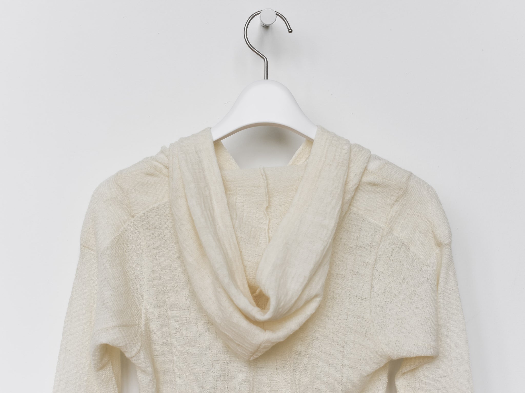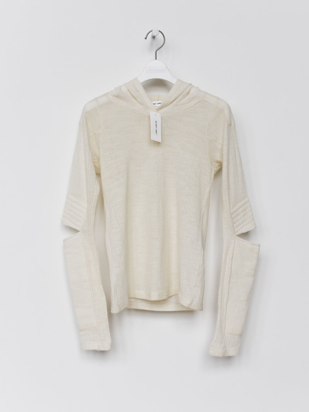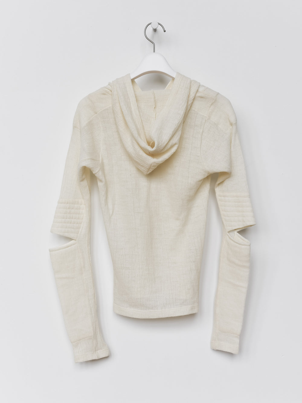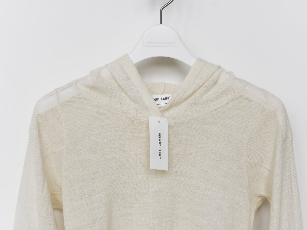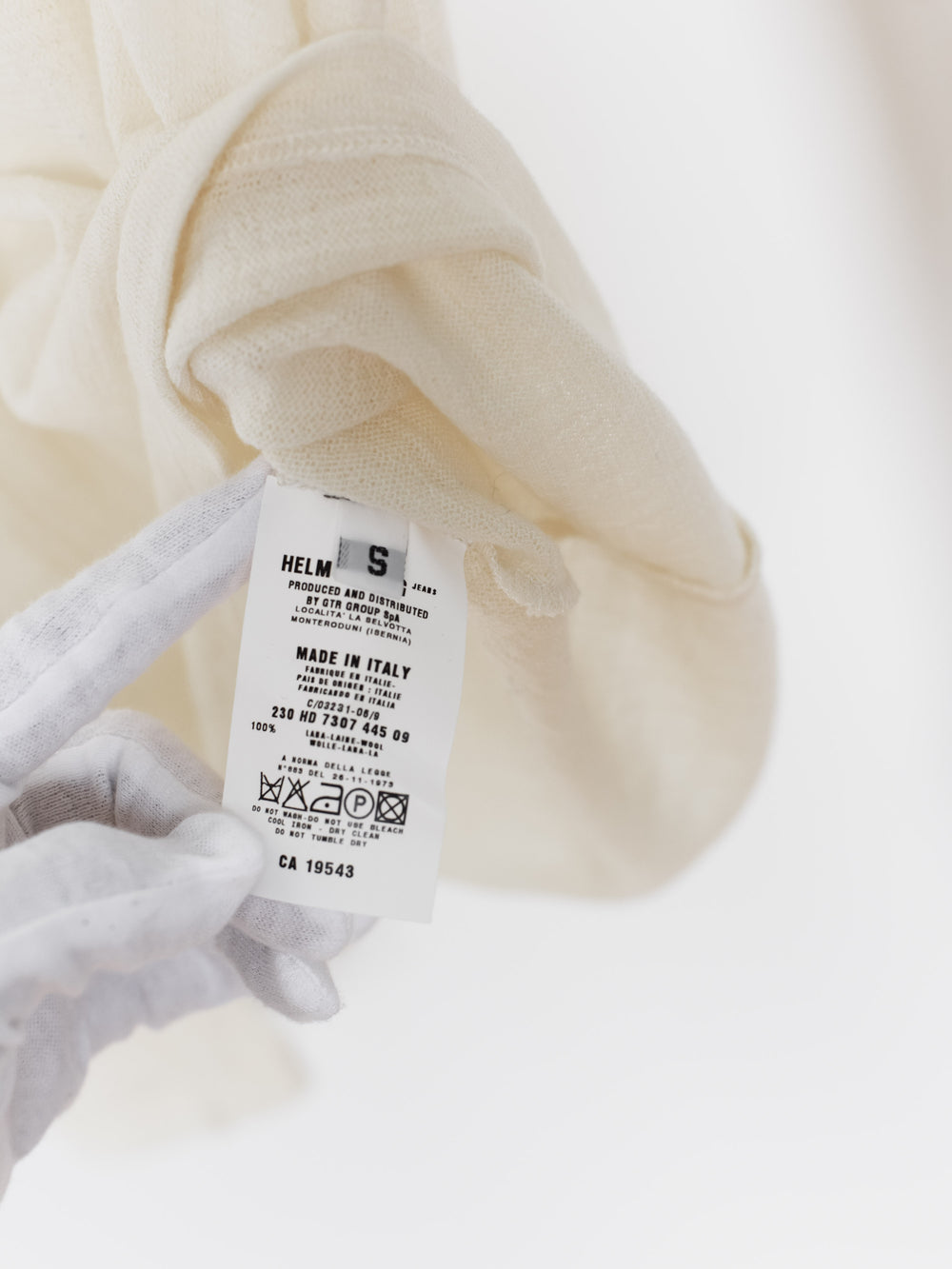 Incredible piece featuring the iconic motifs of late 90s Helmut. The sleeves combine both the astro biker sleeve details as well as the elbow cutouts, and the shoulders feature intricate panelling over the silhouetted seams of a tank top body all in a beautiful sheer wool, creating a lightweight and accessible yet structured and detailed piece of outerwear.