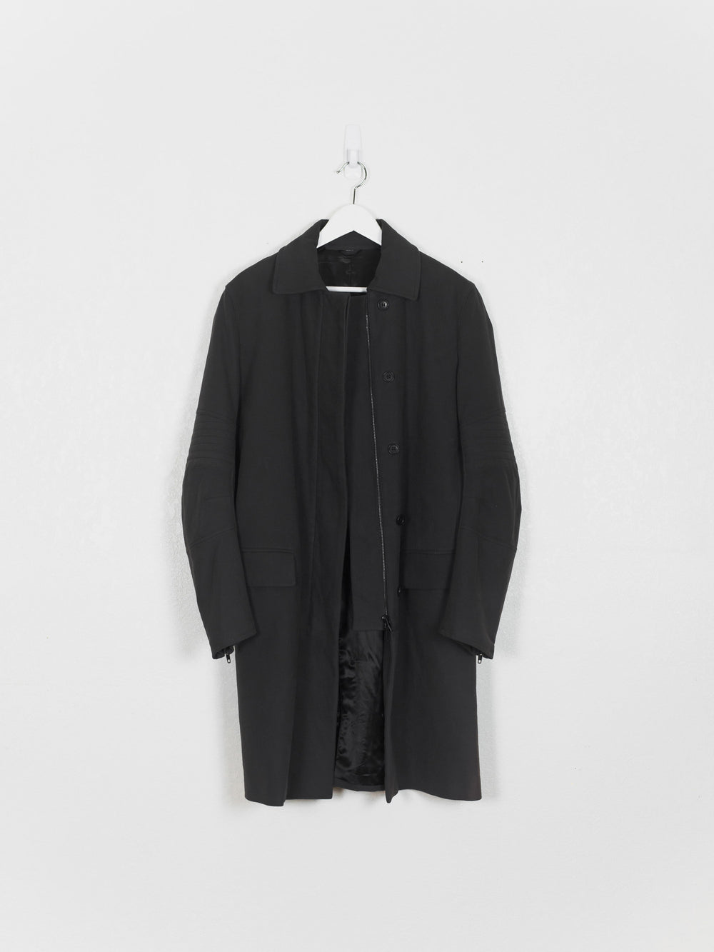 Amazing OG coat in a dark chocolate brown with all the characteristic Helmut details such as the astro biker sleeves, bondage carry straps, moleskin cotton outer, cupro inner liner, double zips, and front flap pockets. Please note the back of the left arm sleeve and back collar are very sun faded from storage as pictured. No flaws otherwise. Rock it as is or get it redyed professionally for ~$100.